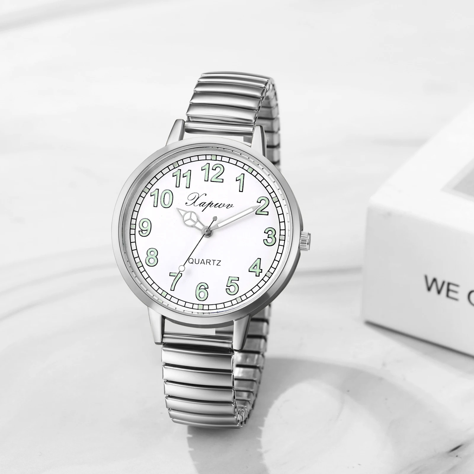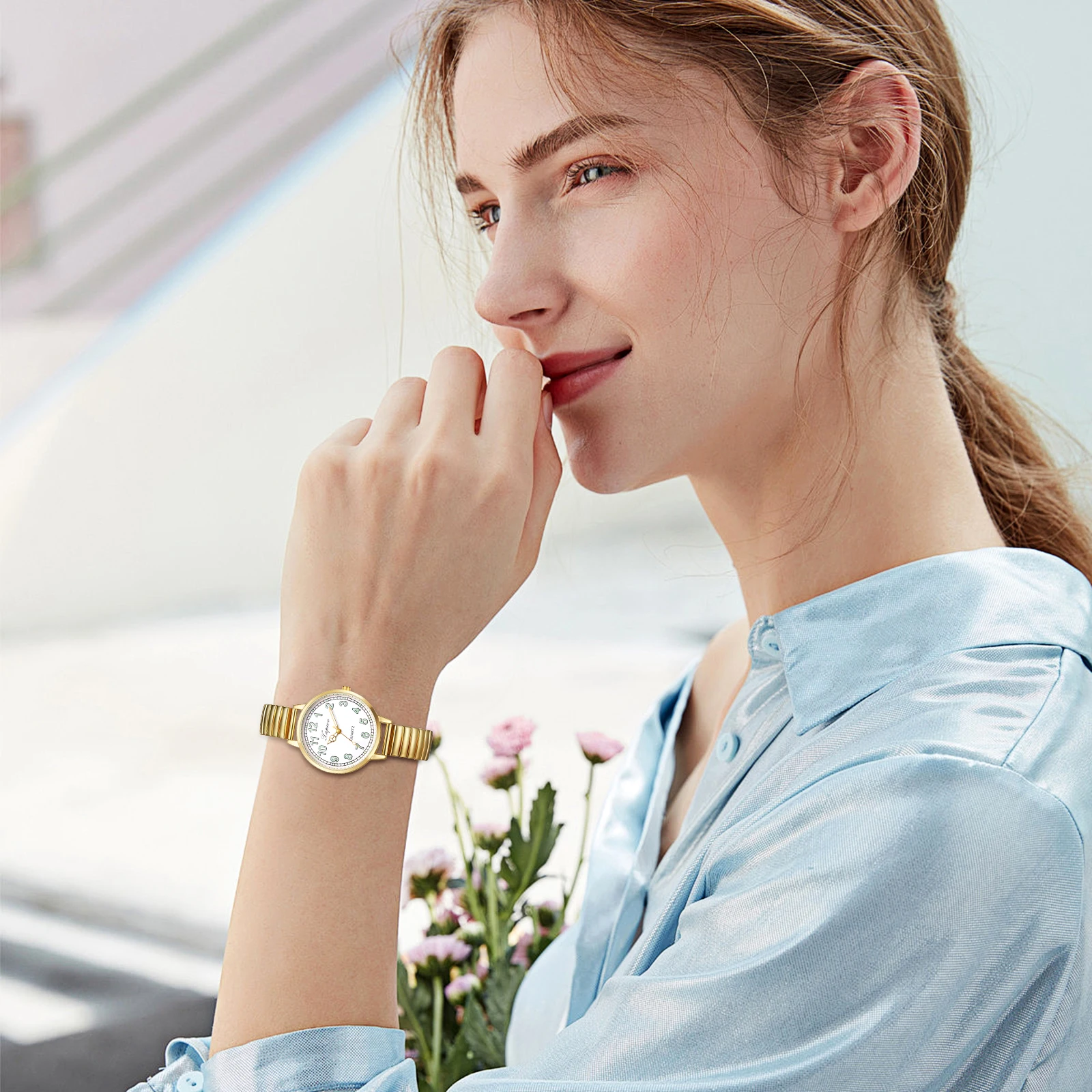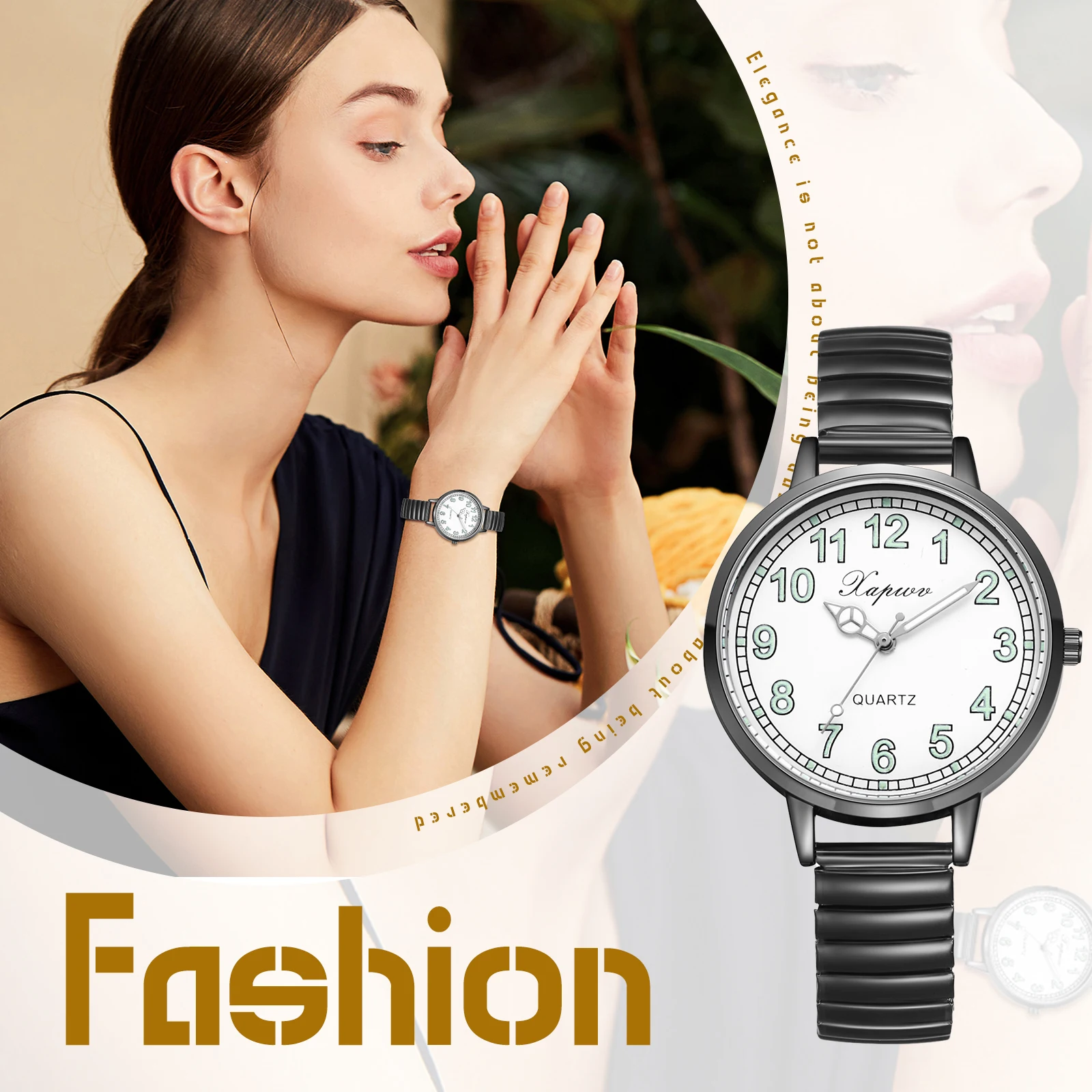 LANCARDO Elastic Women Watch Waterproof Luminous Scale and Hand Hard Steel Bracelet Elastic Strap Watch Simulates Quartz