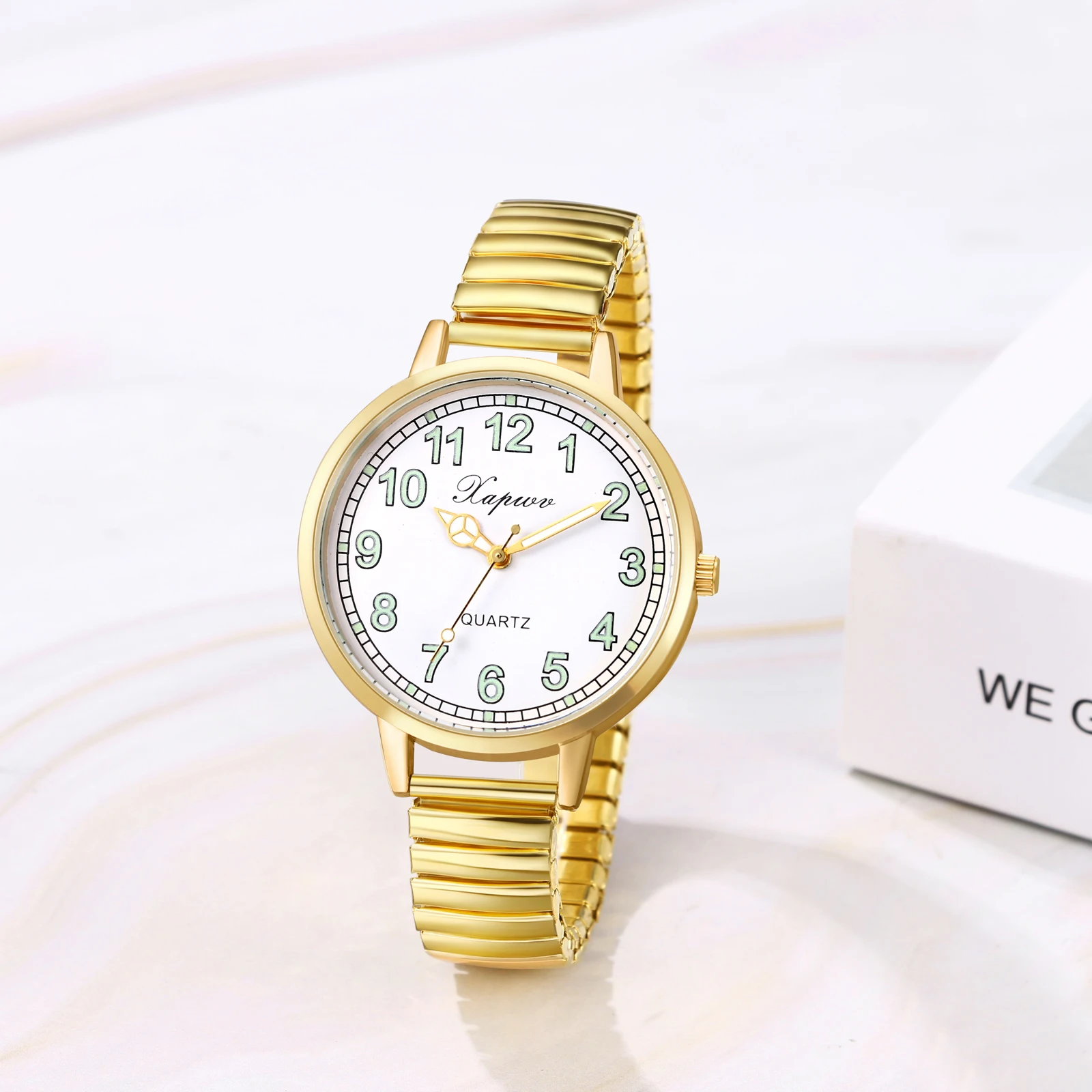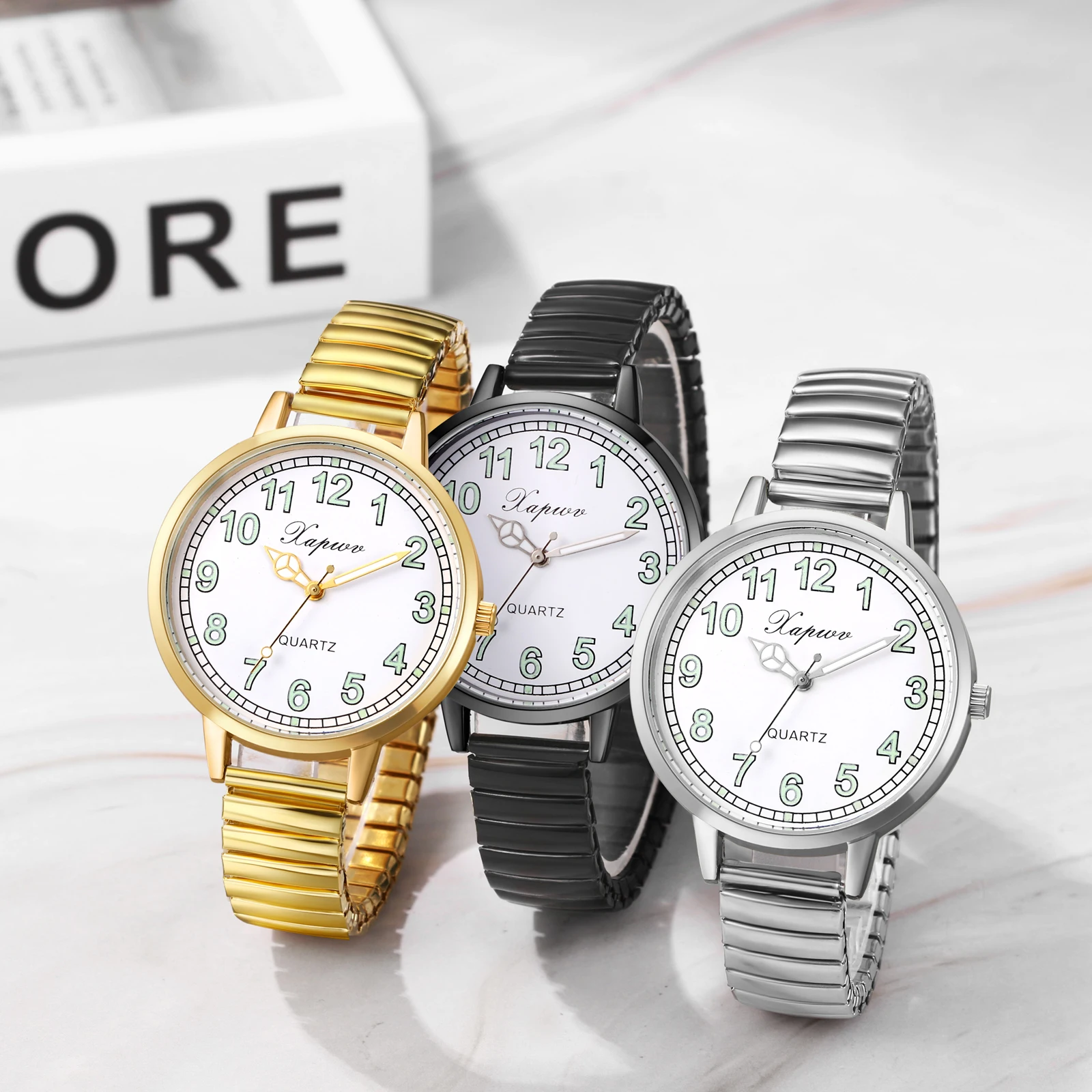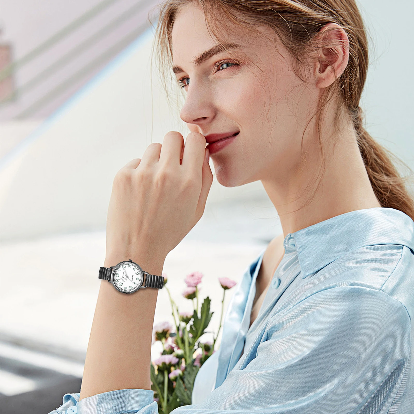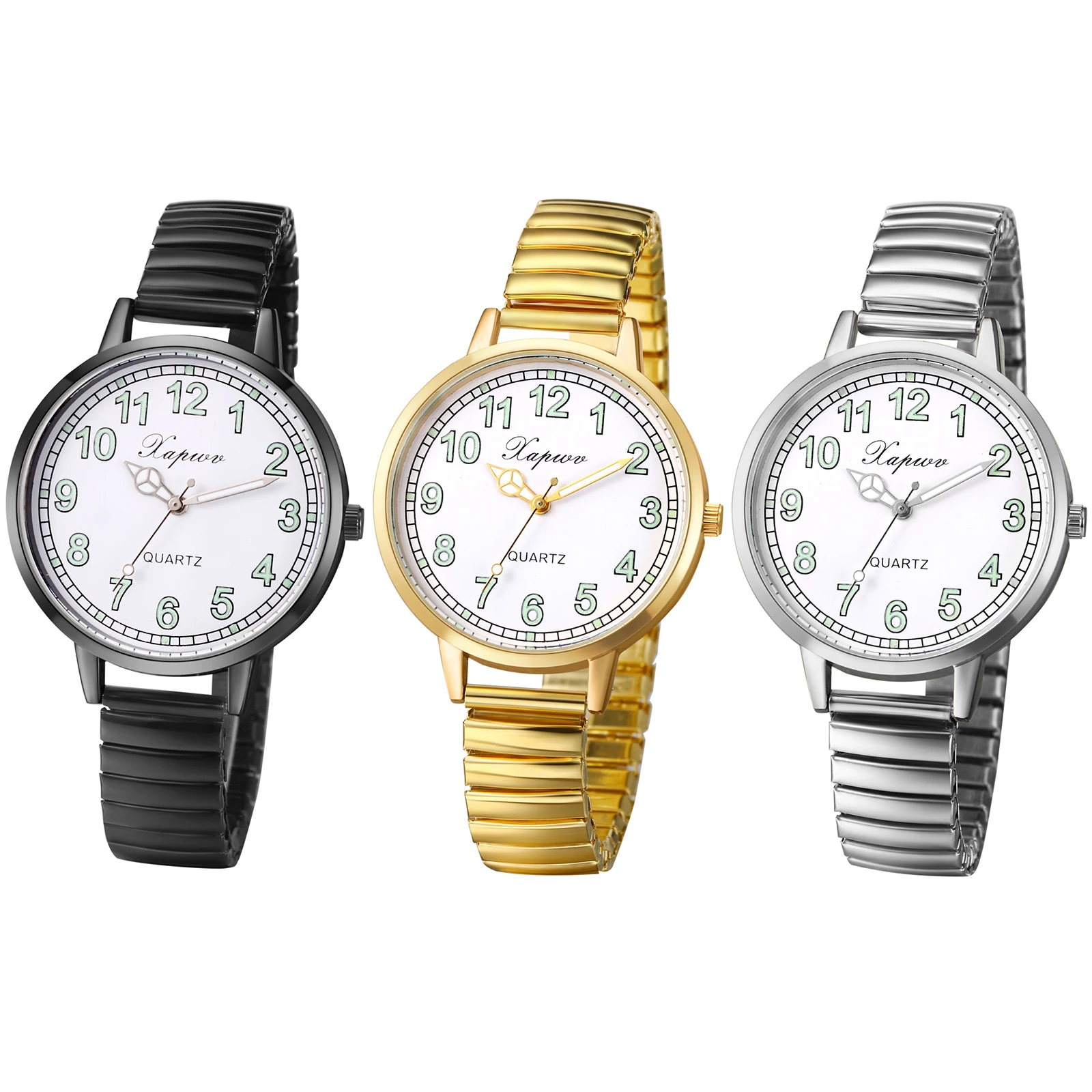LANCARDO Elastic Women Watch Waterproof Luminous Scale and Hand Hard Steel Bracelet Elastic Strap Watch Simulates Quartz