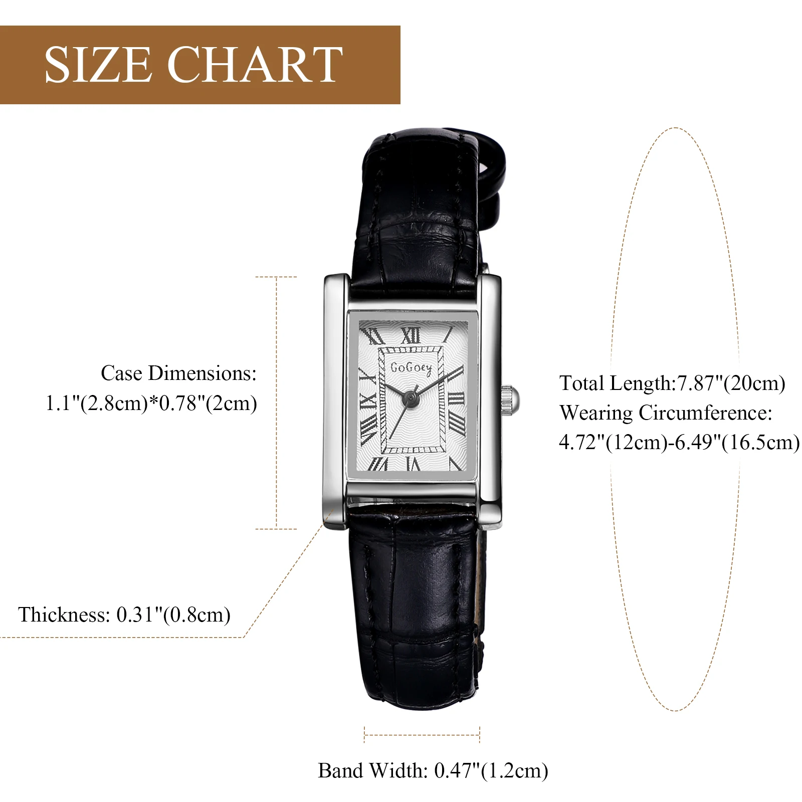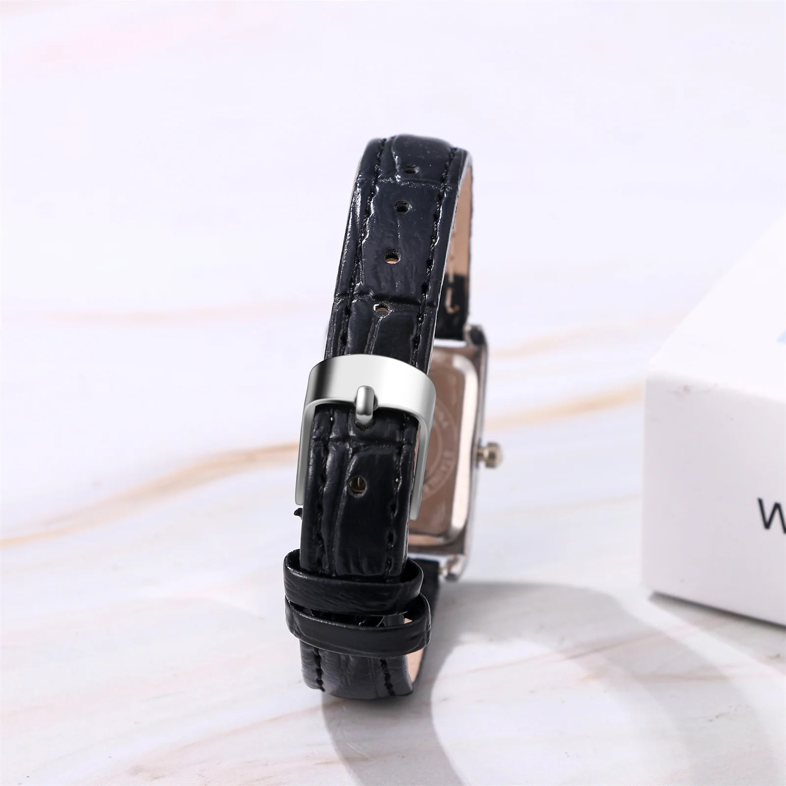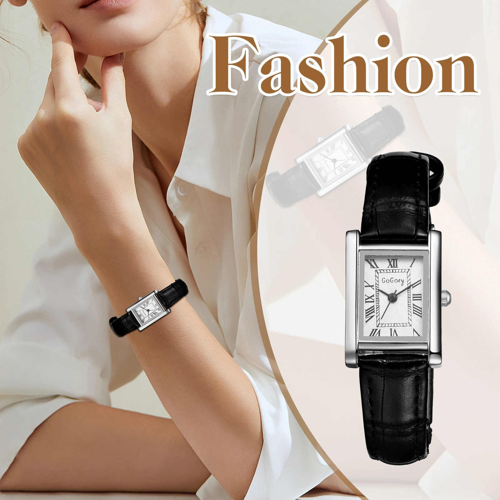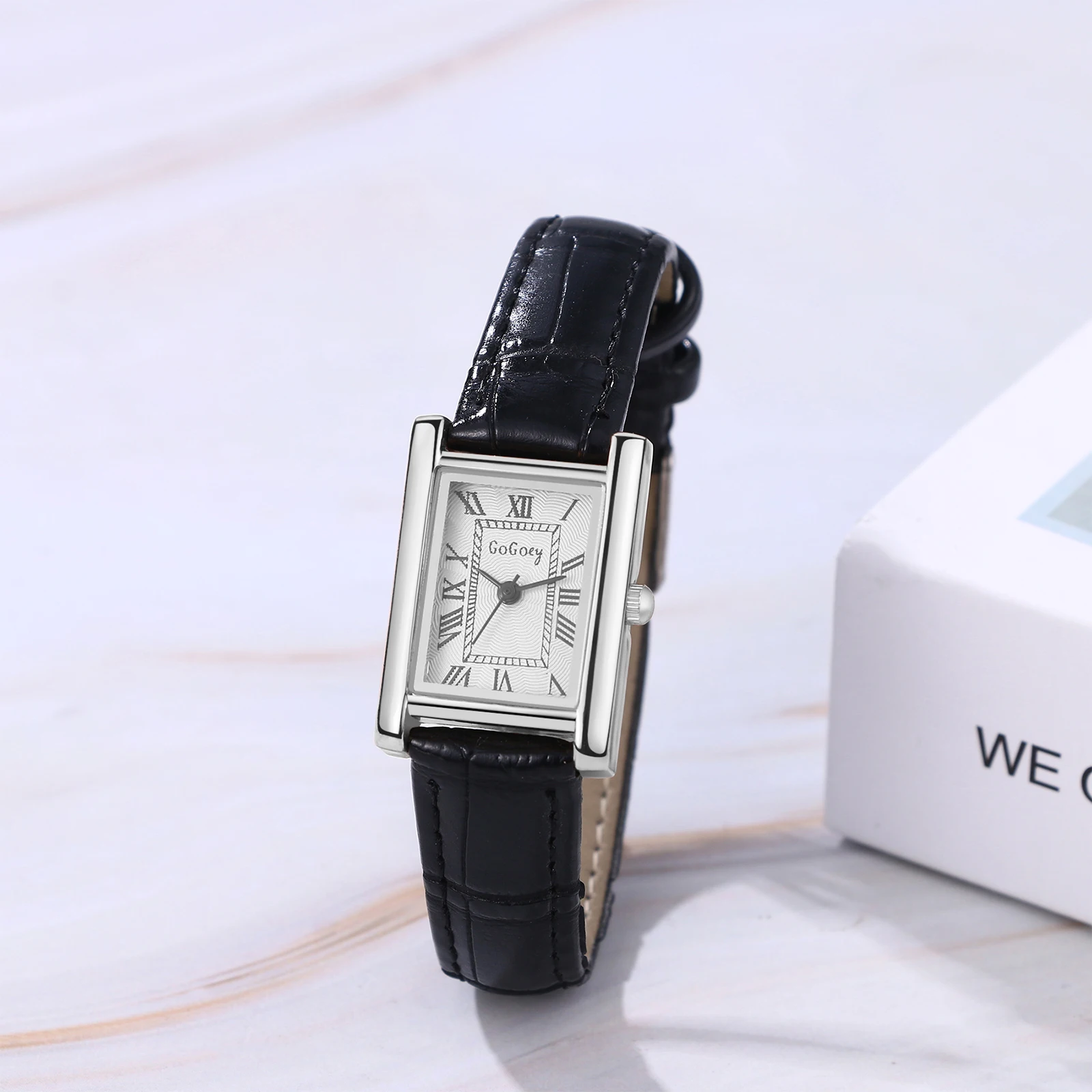 Lancardo Leather Rectangular Women Small Watch Silver Rectangular Roman Numerals Premium PU Strap Black Women's Exquisite Watch