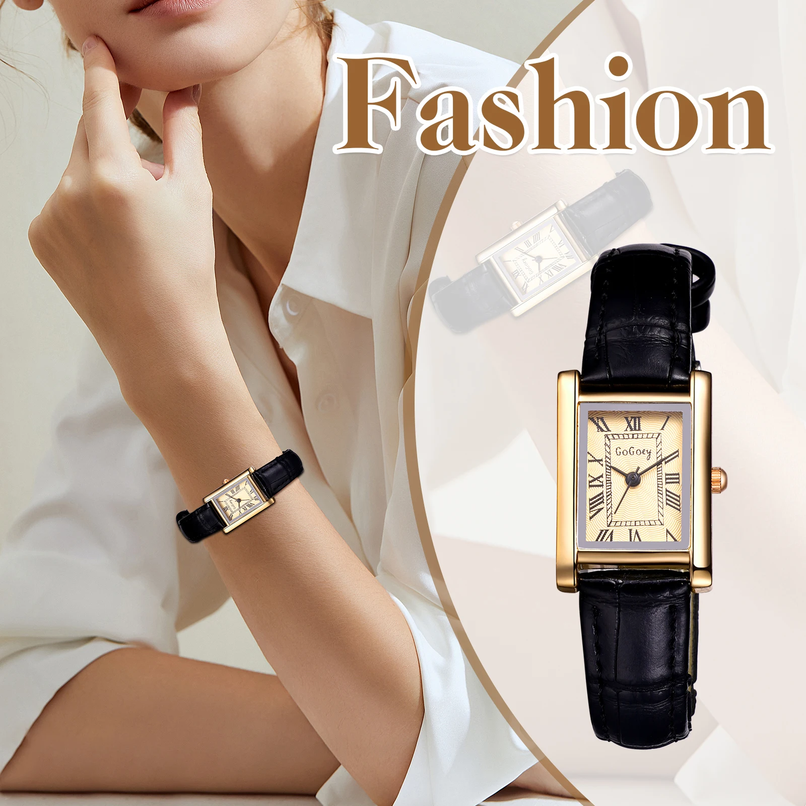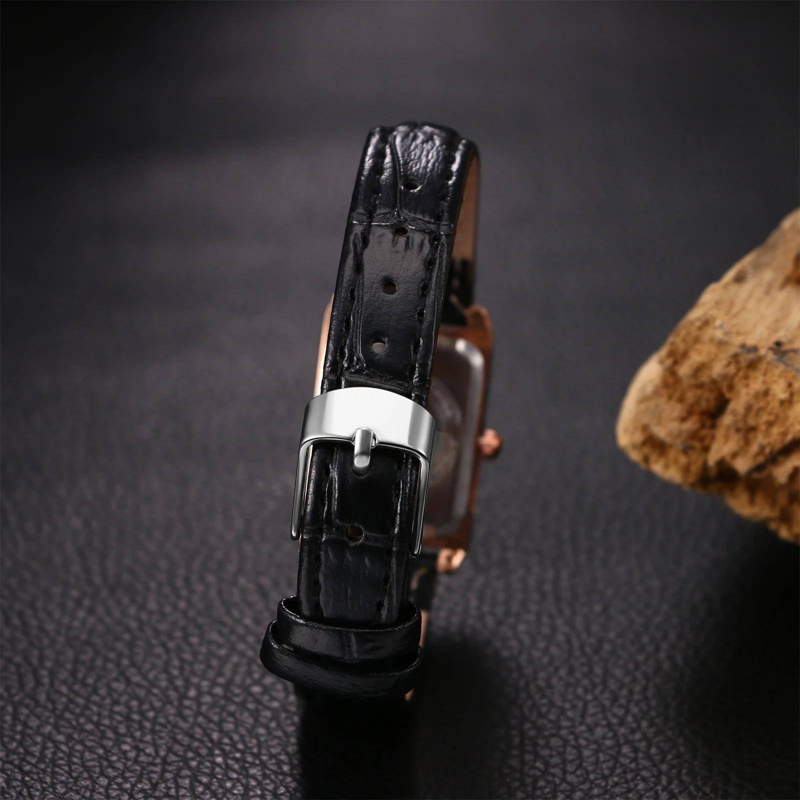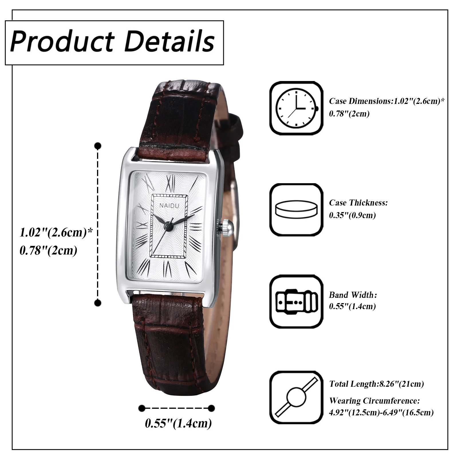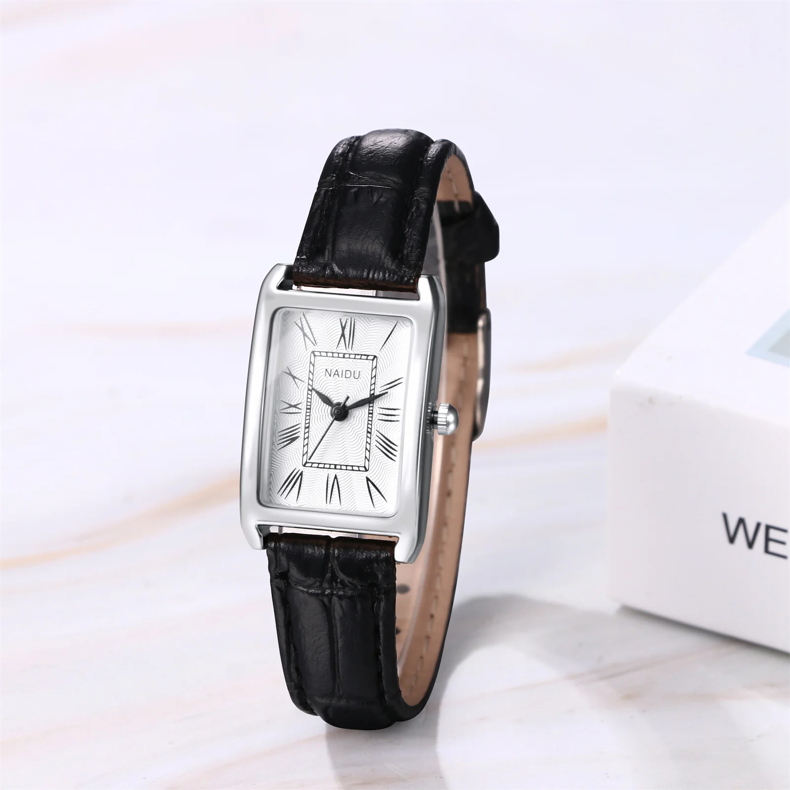 Lancardo Leather Rectangular Women Small Watch Silver Rectangular Roman Numerals Premium PU Strap Black Women's Exquisite Watch