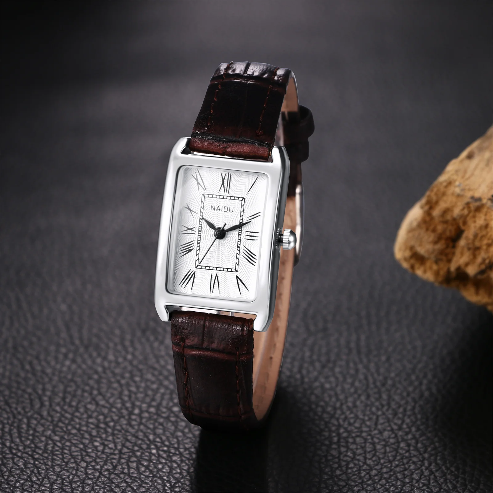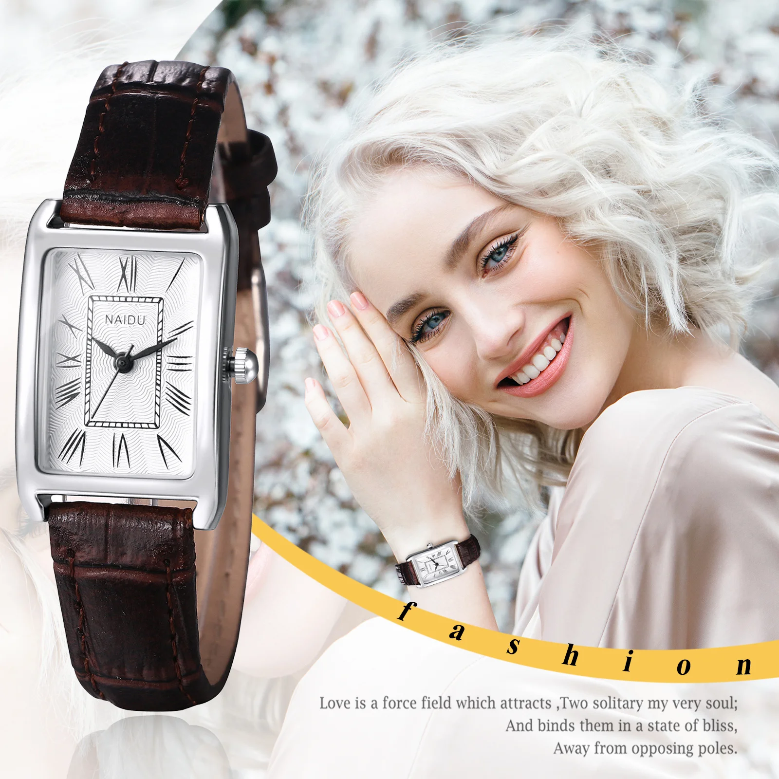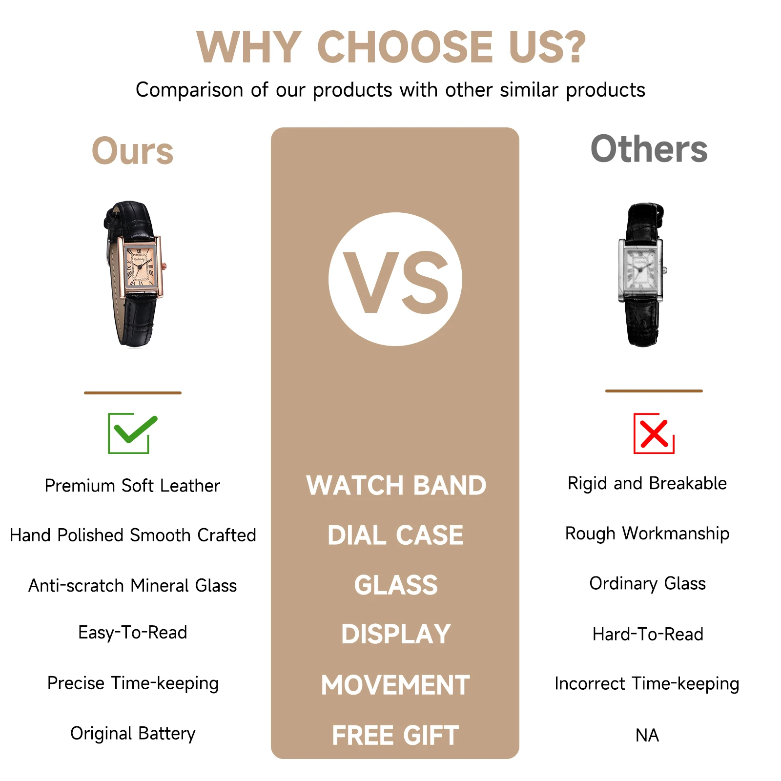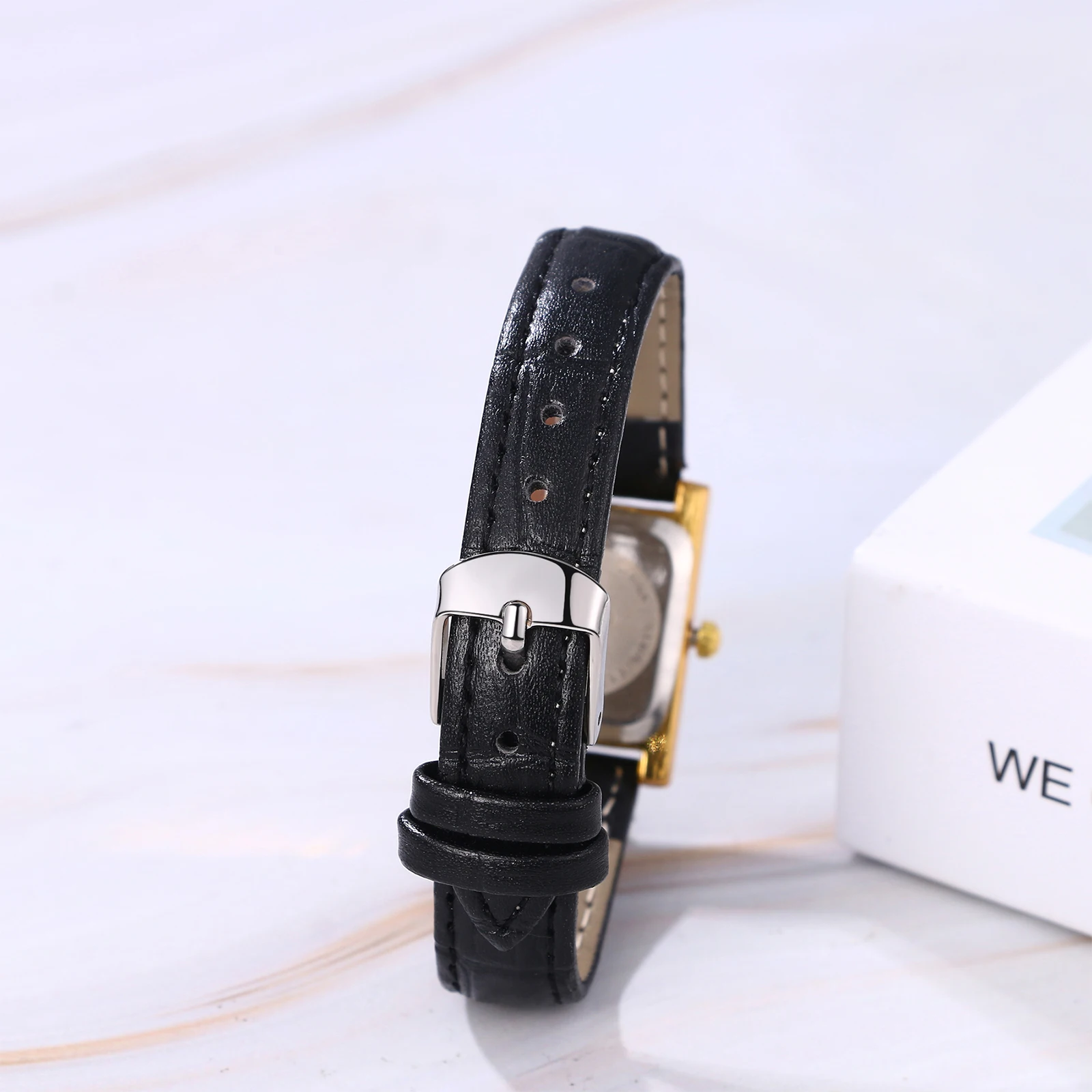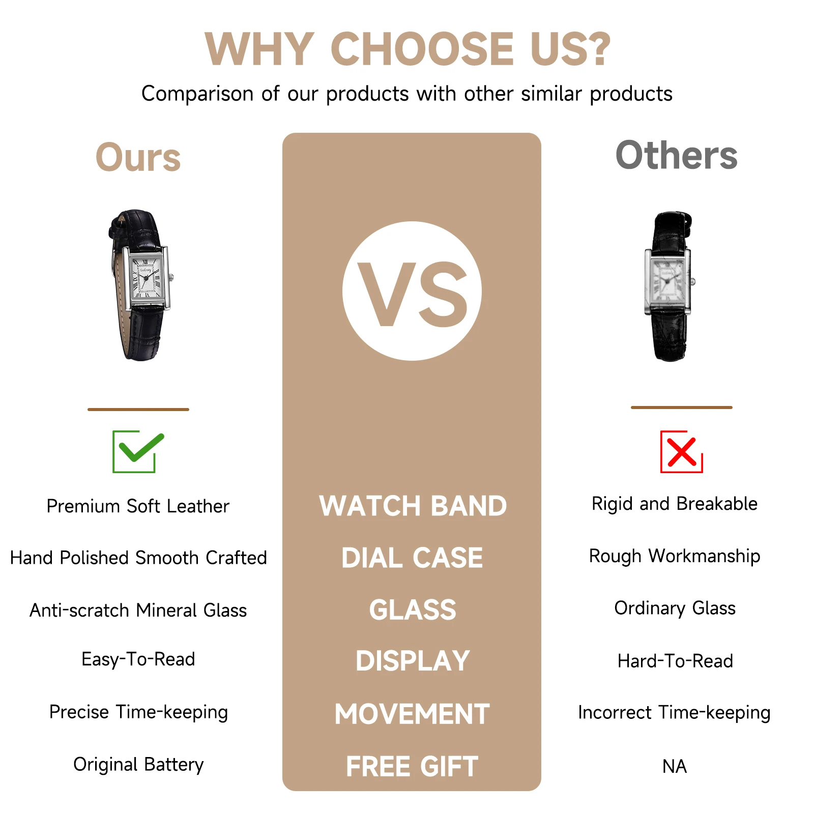 Lancardo Leather Rectangular Women Small Watch Silver Rectangular Roman Numerals Premium PU Strap Black Women's Exquisite Watch