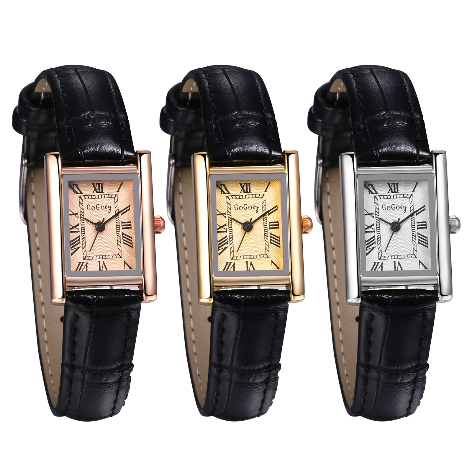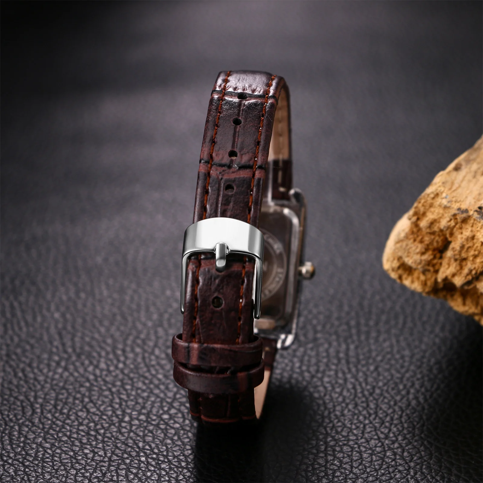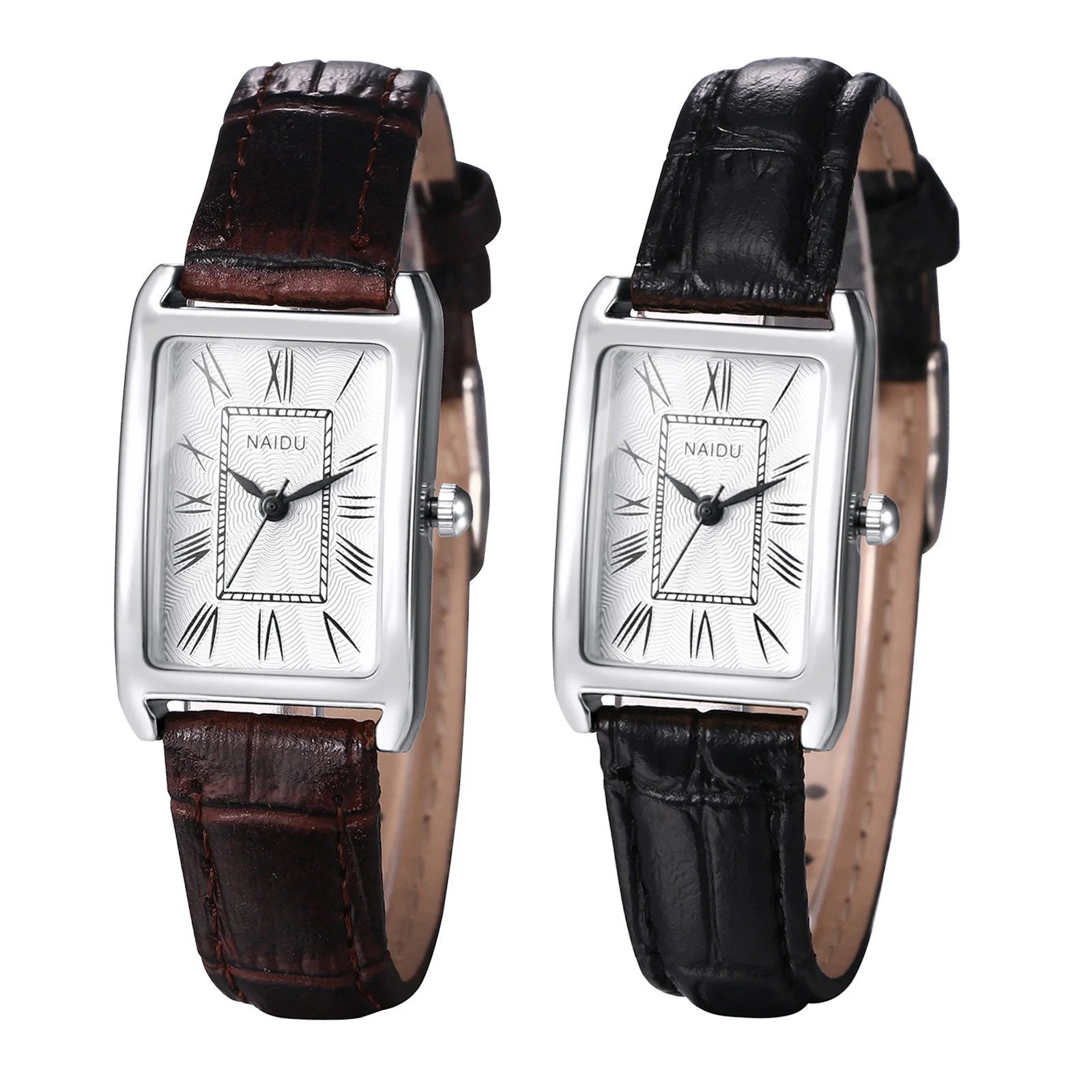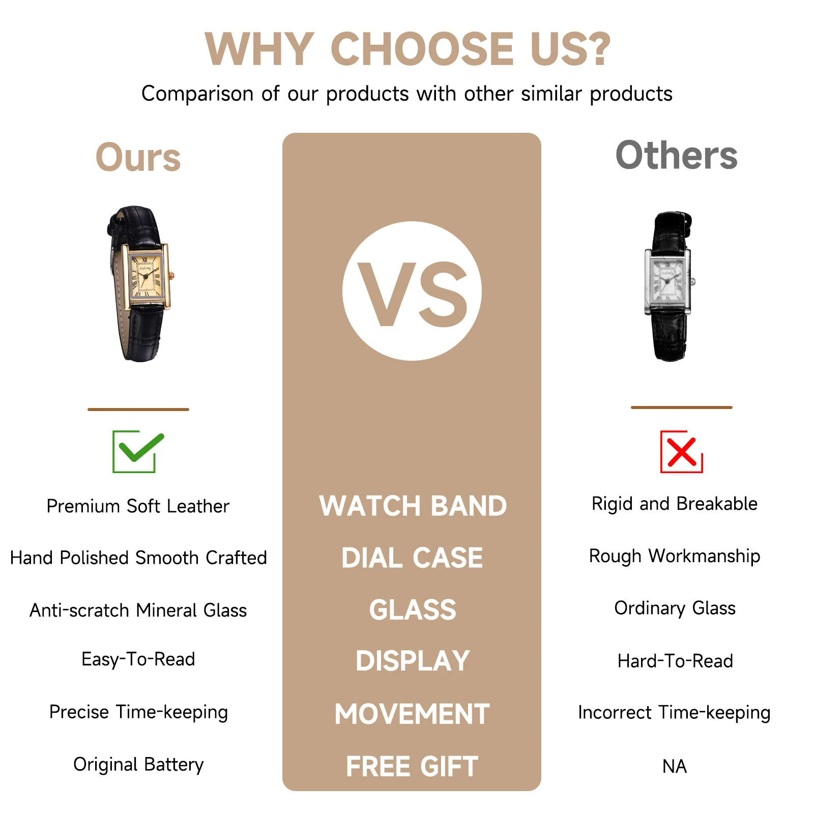 Lancardo Leather Rectangular Women Small Watch Silver Rectangular Roman Numerals Premium PU Strap Black Women's Exquisite Watch