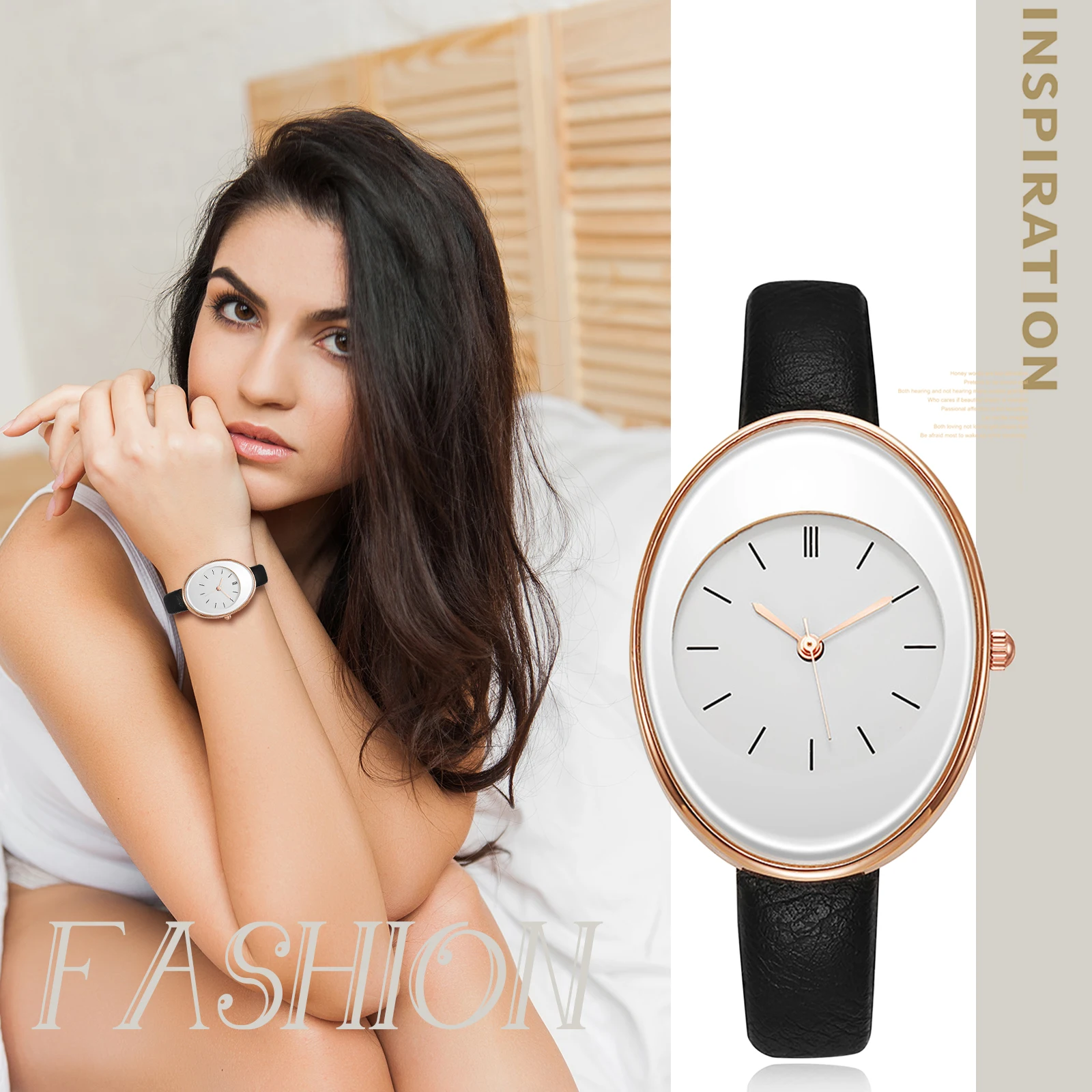 LANCARDO Women Quartz Oval Leather Ultra-thin Watch Strip Scale Women's Exquisite Fashion Watch Anniversary Valentine's Day Gift