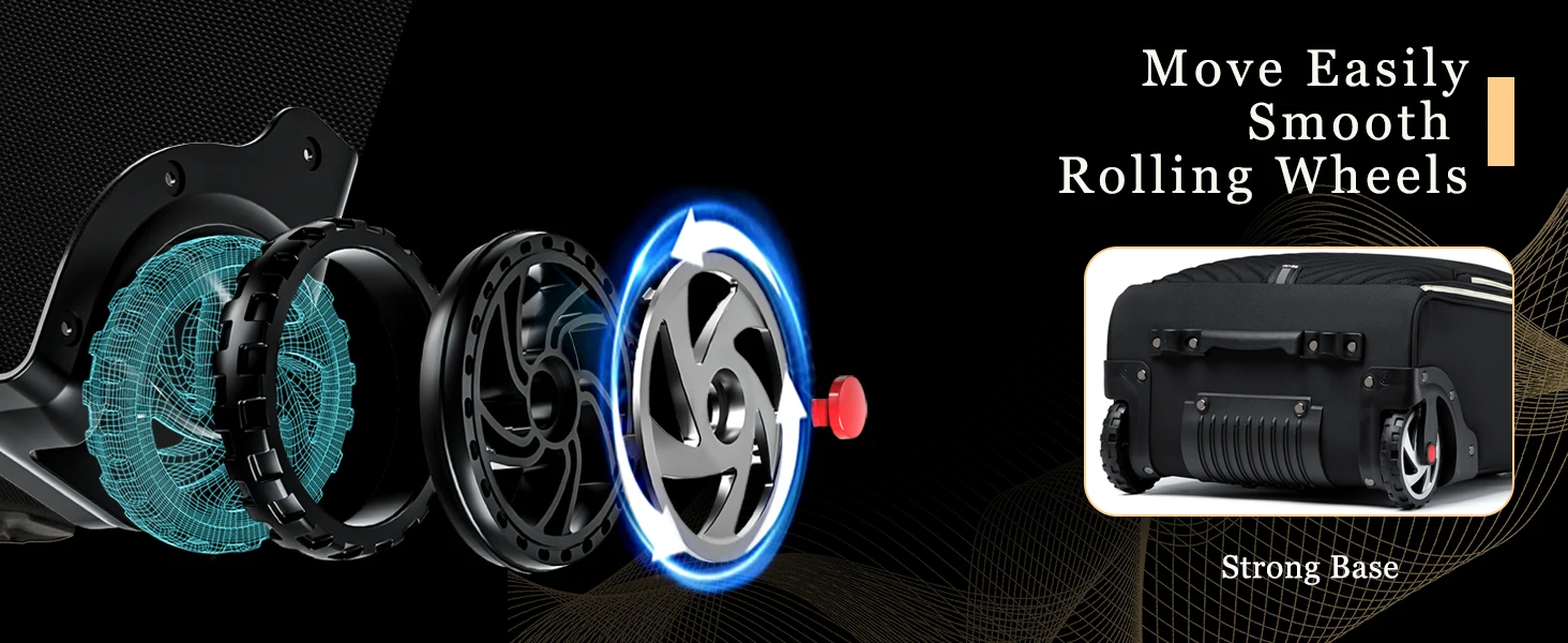 Solid rubber wheels: Retractable aluminum push-button handle and 2 silent rubber wheels make the briefcase roll effortlessly and more maneuverable.4 inch rollers can easily pass through a variety of complex roads.Equipped with trolley strap on its back which consolidates the luggage on your roller bag.