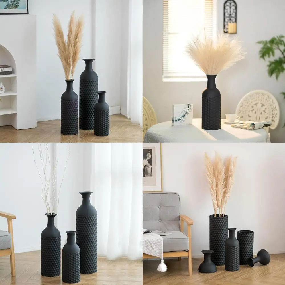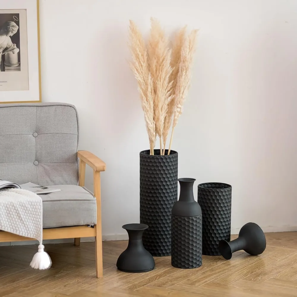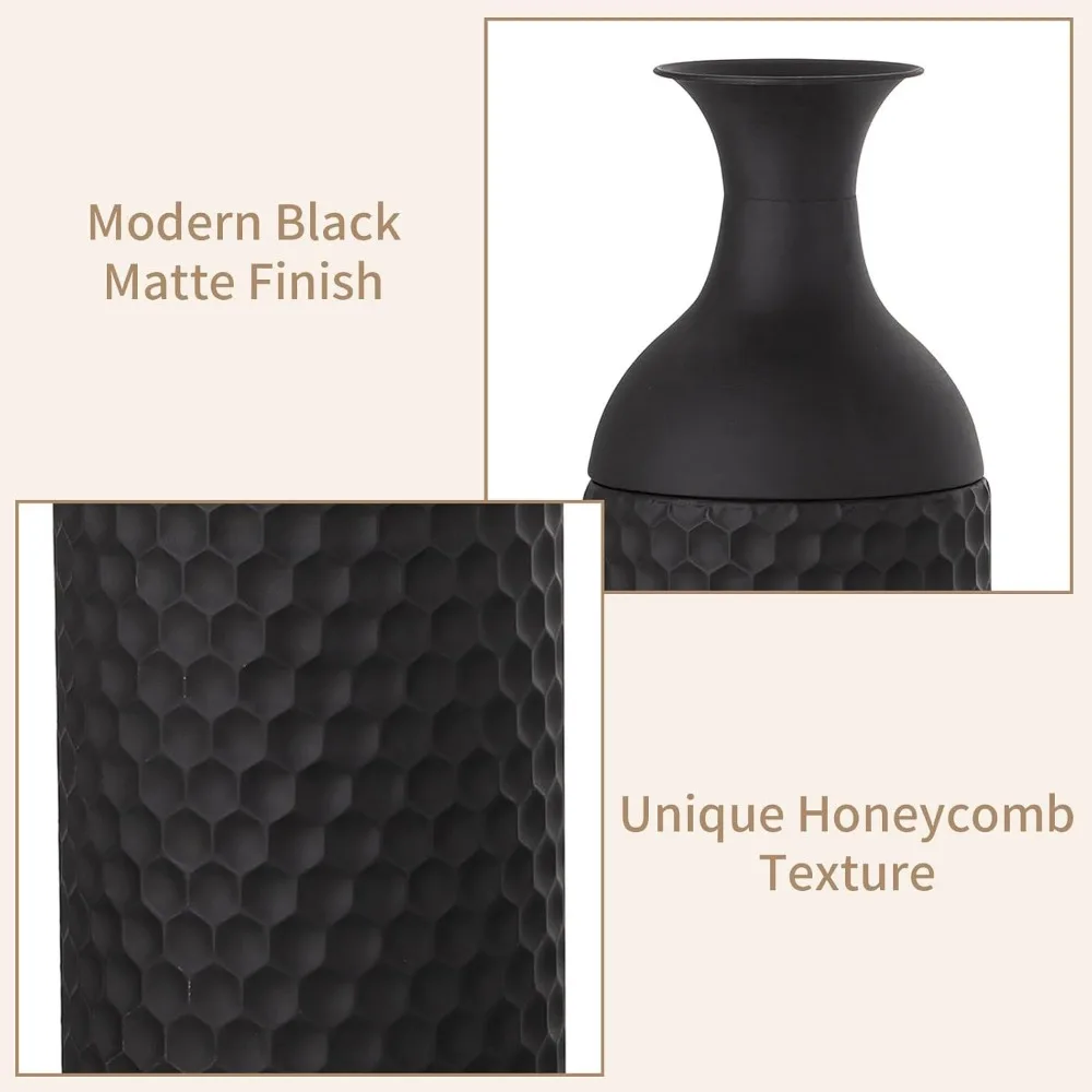 Large Black Tall Vases - Set of 3 Modern Metal Floor Standing Vase with Honeycomb Texture for Living Room Decor