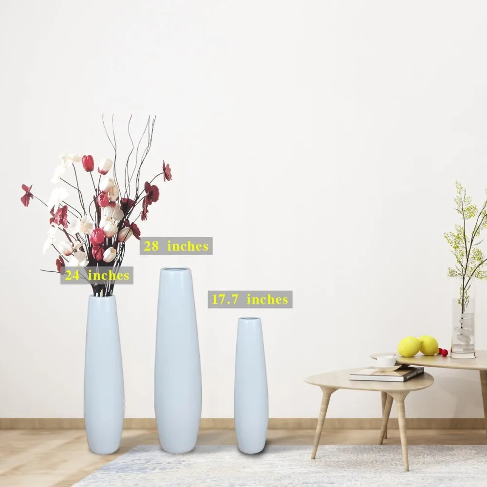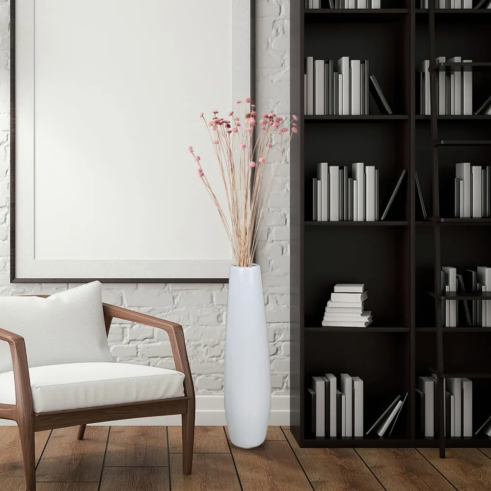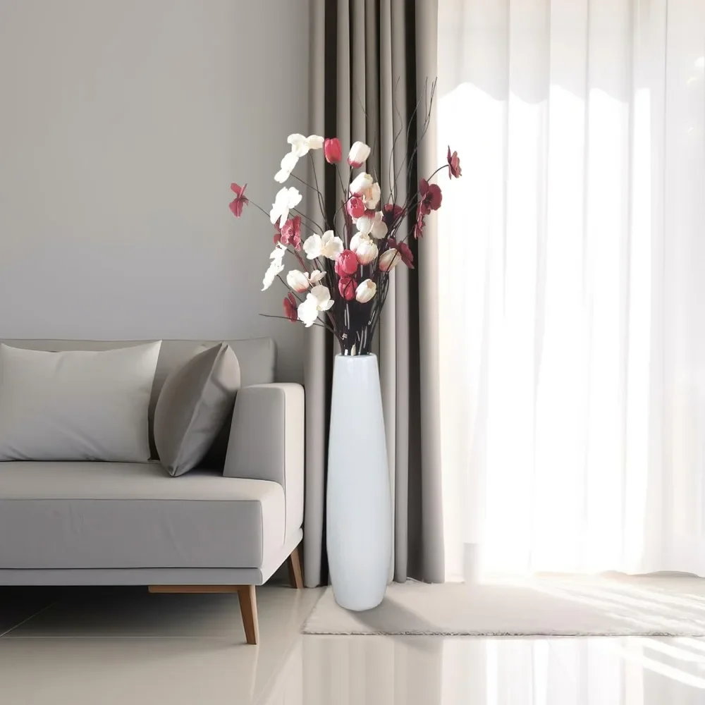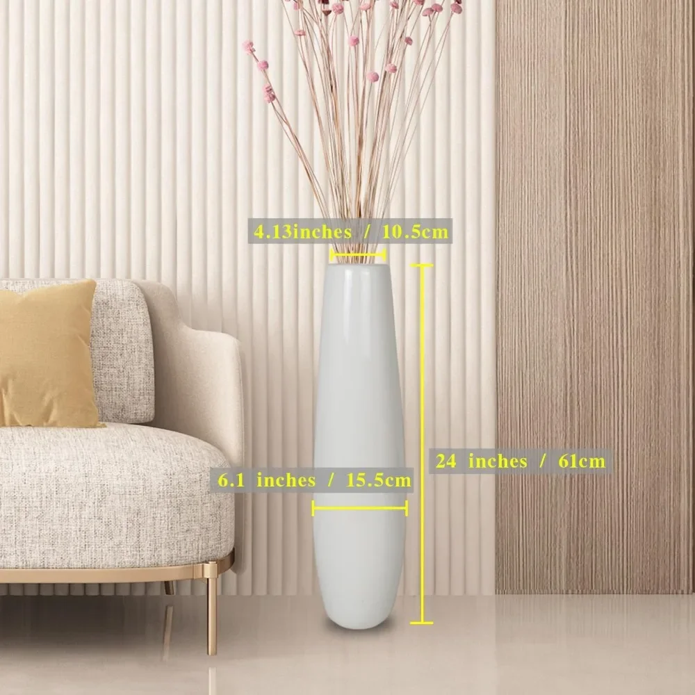 Large Decorative White Ceramic Floor Vase 24 Inches Tall for Flower Arrangements, Table Centerpieces, and Home Living Room Decor