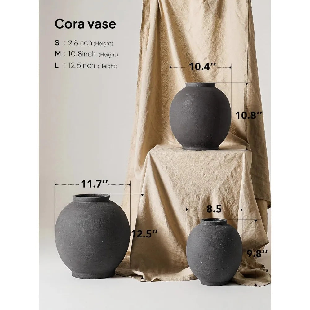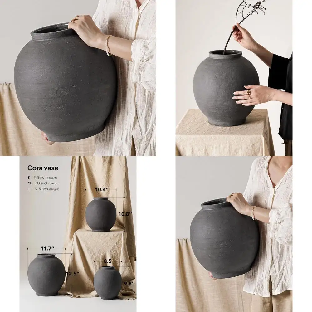 This large ceramic vase, featuring a 5.79-inch diameter at the mouth and a height of 12.5 inches, is perfect for enhancing your space with its decorative appeal. Whether adorned with colorful flowers like lilies, roses, or tulips, or simply displaying dried branches and leaves, it infuses any room with a vibrant and fresh ambiance. Crafted from natural clay, this rustic-style vase embodies the essence of nature and the warmth of handcrafted artistry. It showcases a simple yet lively aesthetic. Please be aware that, due to the handmade nature of the vase, minor variations in detail and color may occur. We offer after-sales support for any items received with damage, defects, or quality issues. Made from high-quality ceramic material, this terracotta vase provides a natural texture and excellent air permeability, which helps maintain optimal humidity for plant roots and extends the life of your flowers. The thick walls ensure stability and durability, making it suitable for both indoor and outdoor settings. With its rustic charm and simple, natural design, this black vase serves as an excellent centerpiece for any room or occasion. It's perfect for everyday use on mantels, fireplaces, bookshelves, windowsills, nightstands, and living rooms. Additionally, it can be used as a table centerpiece for weddings, graduations, parties, or restaurants. The timeless simplicity of this vase makes it a versatile gift that complements various home styles. It's an elegant present for family and friends, suitable for housewarming events, birthdays, weddings, Christmas, or Valentine's Day, bringing a touch of spring and nature to any home.