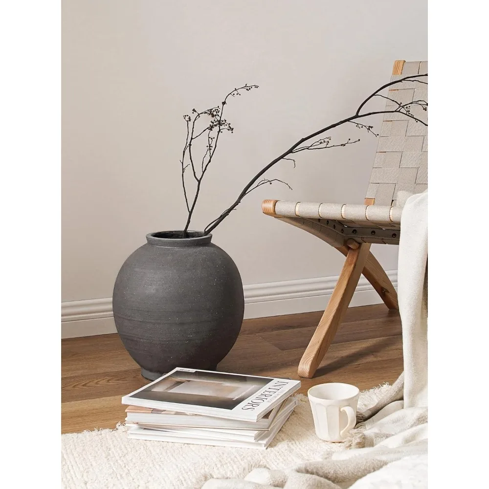 Large Round Black Ceramic Floor Vase, 12.5 Inch Tall, Ideal for Centerpieces and Rustic Minimalist Home Decor, Farmhouse Style A