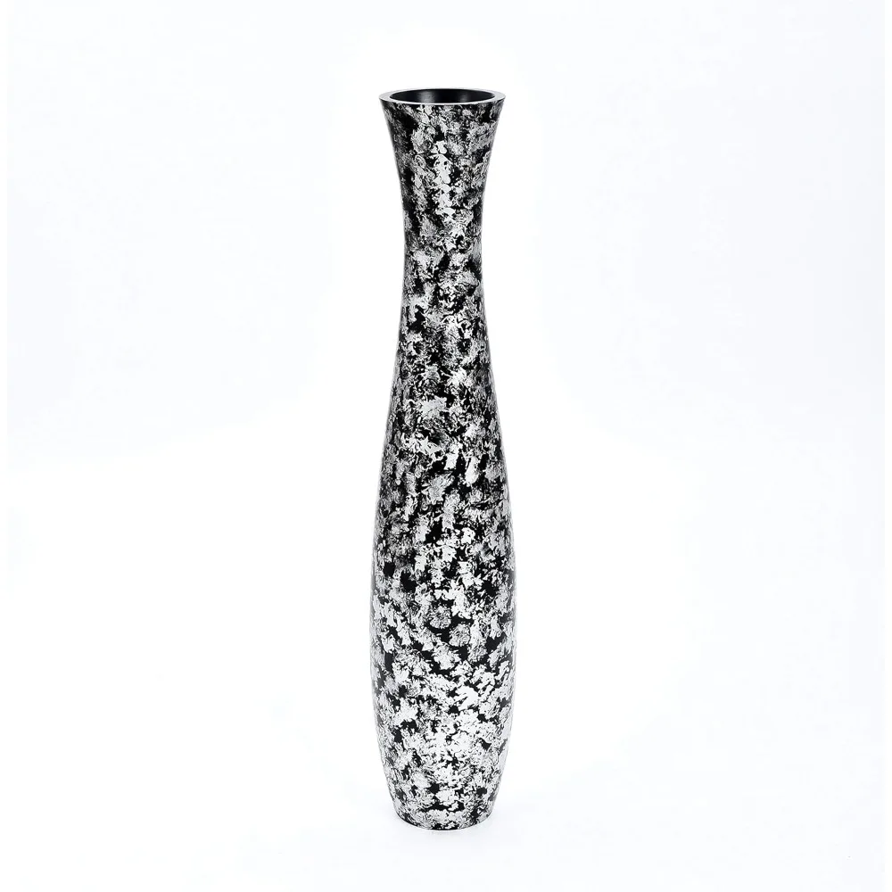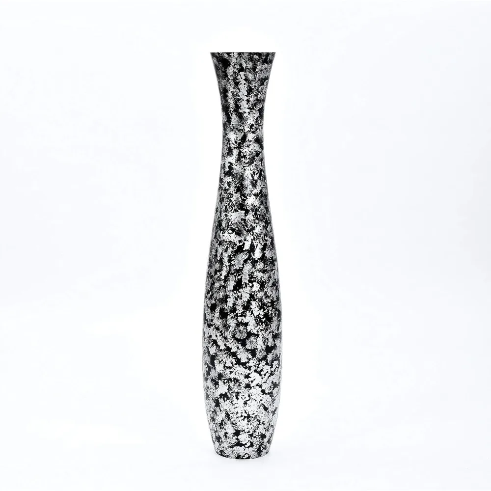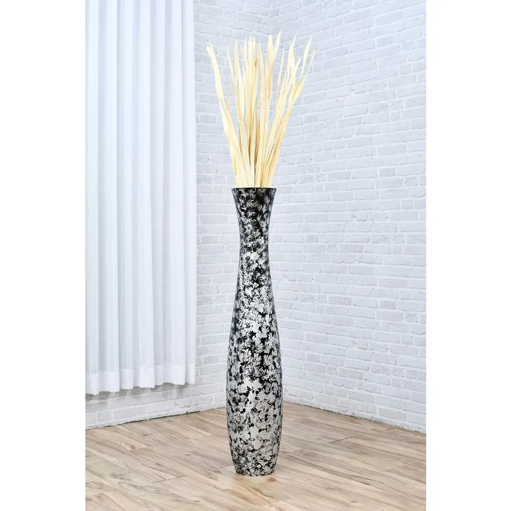 Large Silver Wooden Floor Vase - 41 Tall Decorative Holder for Artificial Plants & Pampas Grass
