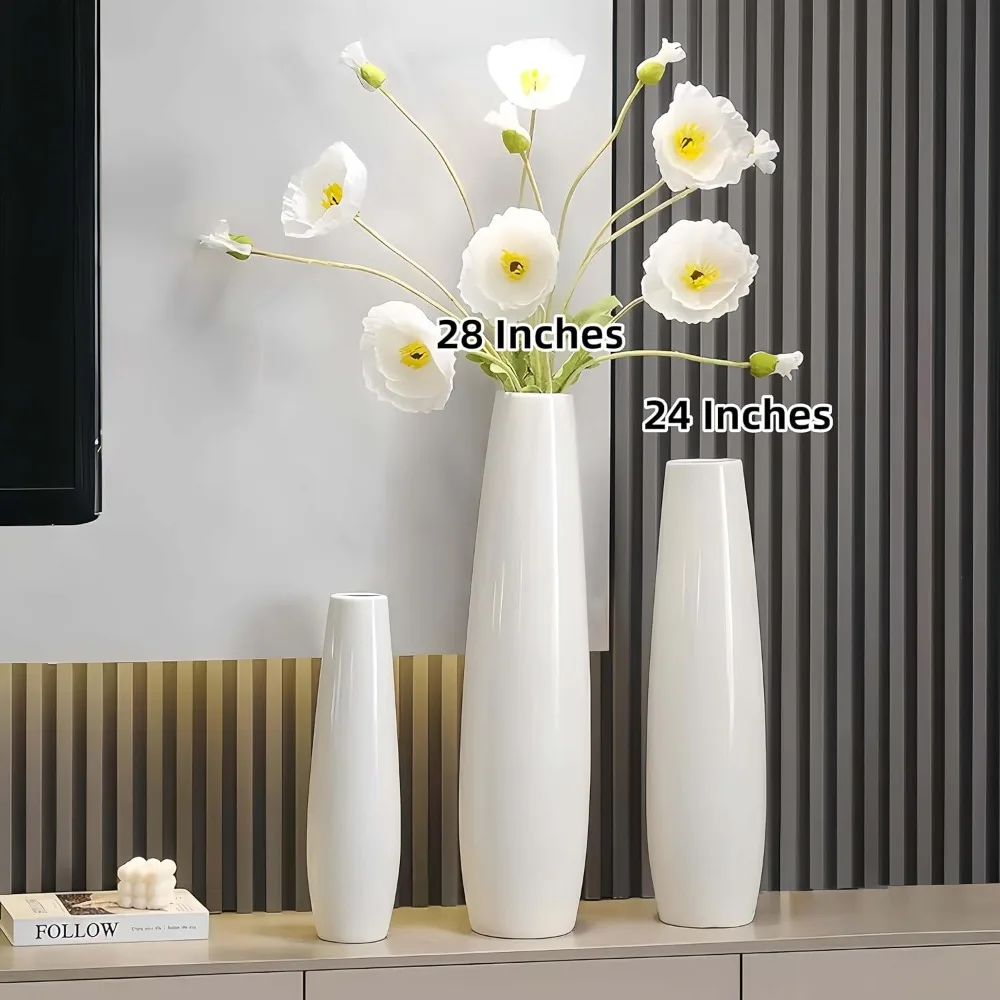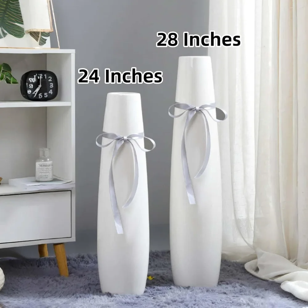 Large White Ceramic Floor Vase for Modern Home, Living Room Decor, Minimalist Style
