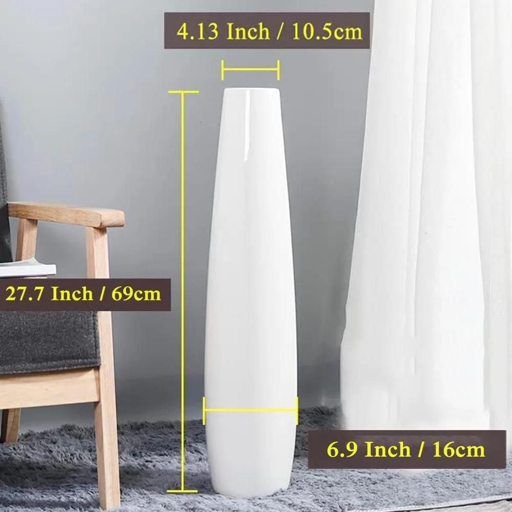 This exquisite white ceramic vase features a stylish white glaze and intricate line design, crafted through a meticulous glazing process to achieve a smooth and shiny finish. It is perfect for holding water, fresh flowers, or dried arrangements. With a height of 27.7 inches (69 cm) and a diameter of 6.9 inches (16 cm), the vase has a wide mouth diameter of approximately 4.13 inches (10.5 cm), making it suitable for placement in various rooms throughout your home. Made from high-quality ceramic material, this durable and crack-resistant vase is designed for long-lasting display, ensuring your home décor remains fresh and contemporary. The elegant white large vase is versatile, fitting into various settings such as living rooms, bathrooms, hallways, dining rooms, kitchens, and offices. This decorative ceramic vase is not only suitable for all styles and occasions but also makes a perfect gift for loved ones, parents, friends, or anyone who enjoys home decoration. It serves as an ideal present for housewarming events, weddings, holidays, Christmas, Thanksgiving, and New Year celebrations.