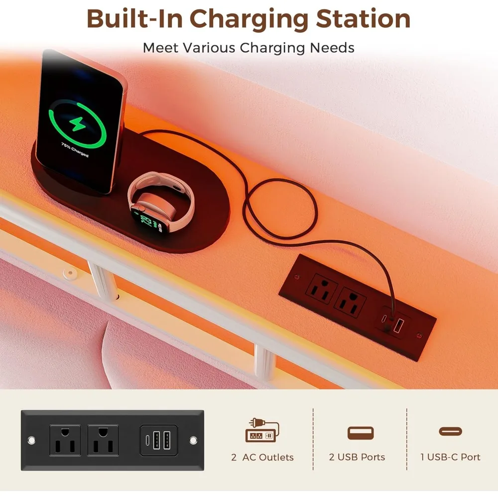 Special Feature Charging Station LED Lighting No Box Spring Needed Remote