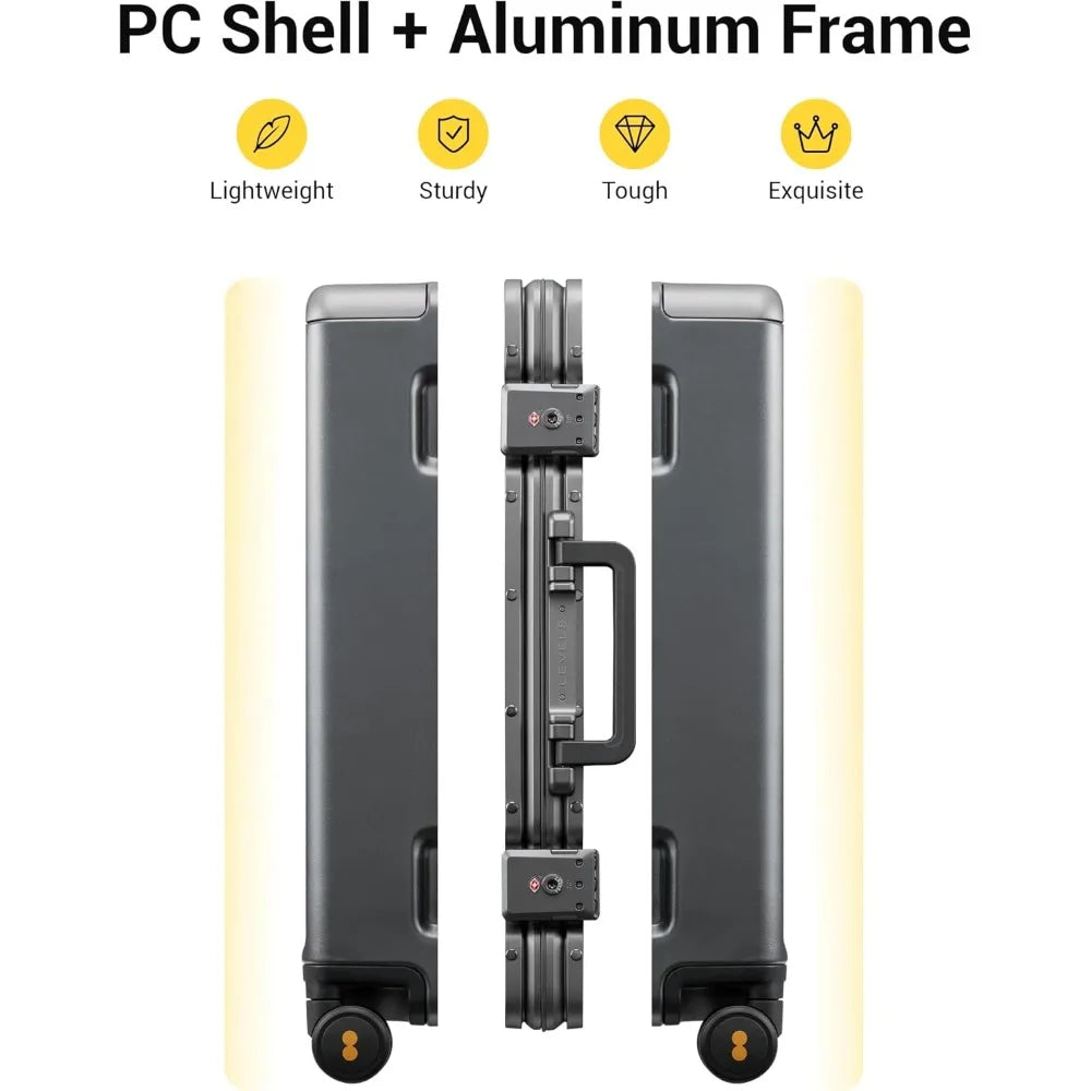 LEVEL8 Zipperless Carry On Luggage Airline Approved with Aluminum Frame, Hard Shell Suitcase with Spinner Wheels, Metal Checked
