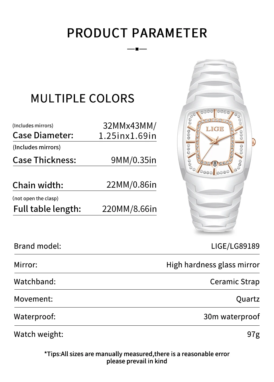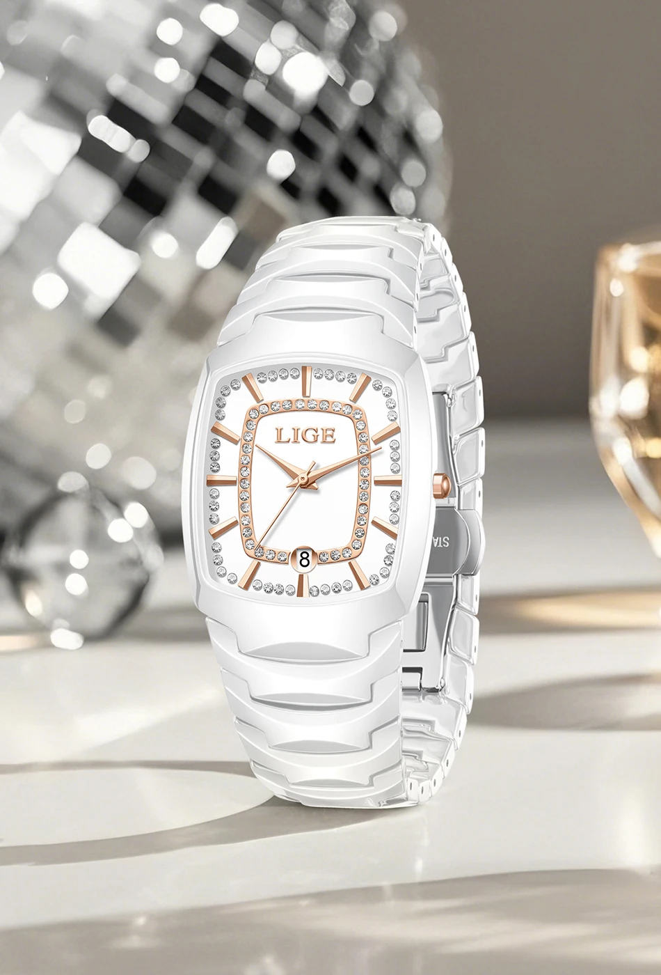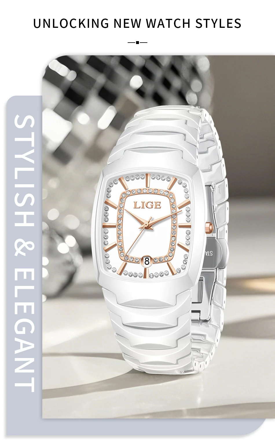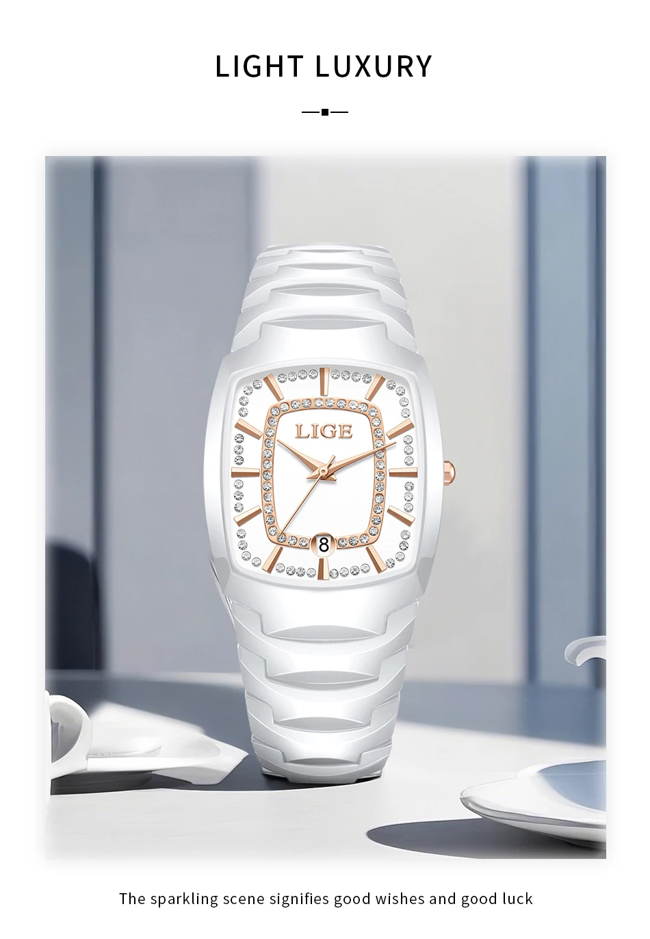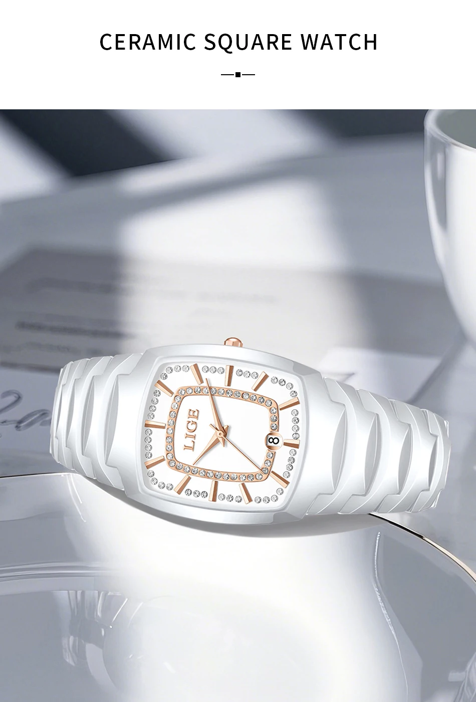 LIGE New Women Watches Creative Women Ceramic Bracelet Wrist Watches Ladies Square Waterproof Female