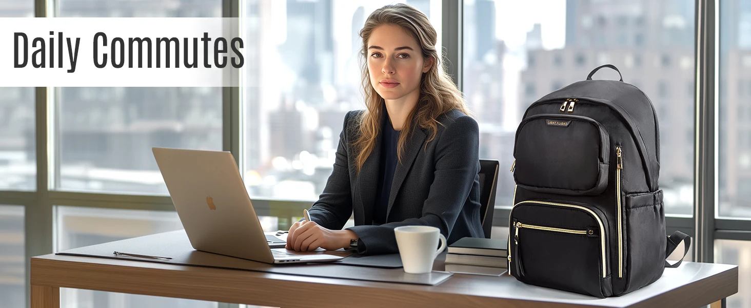 LIGHT FLIGHT Bags for Women Water-Resistant Laptop Backpack for 15.6 Inch Large Capacity Stylish Bookbag with USB Port