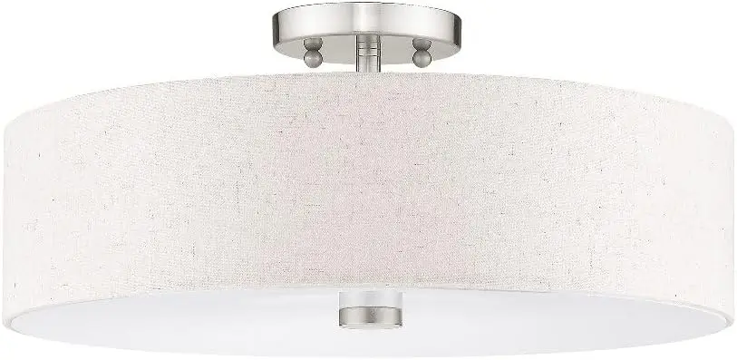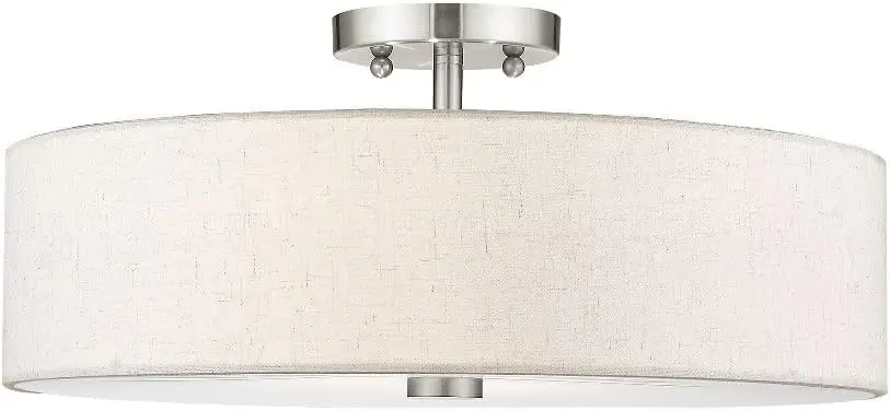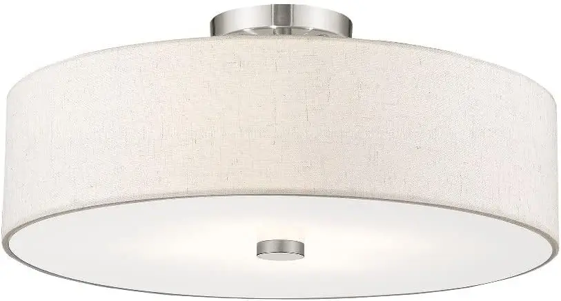 Lighting 52136-92 Meridian Collection 4-Light Transitional Ceiling Mount Fixture with Oatmeal Color Fabric Hardback Shade, Engli