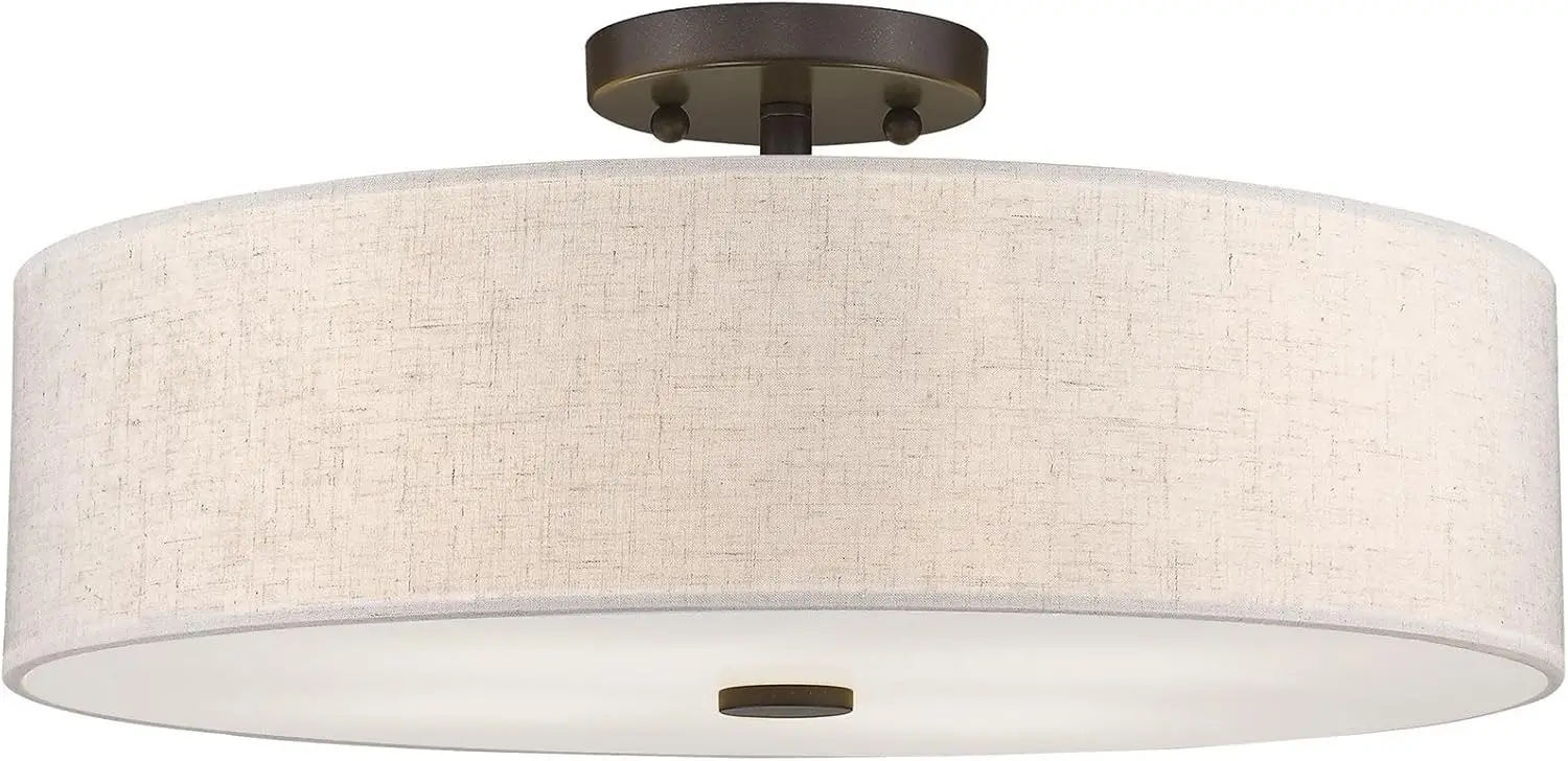Lighting 52136-92 Meridian Collection 4-Light Transitional Ceiling Mount Fixture with Oatmeal Color Fabric Hardback Shade, English Bronze