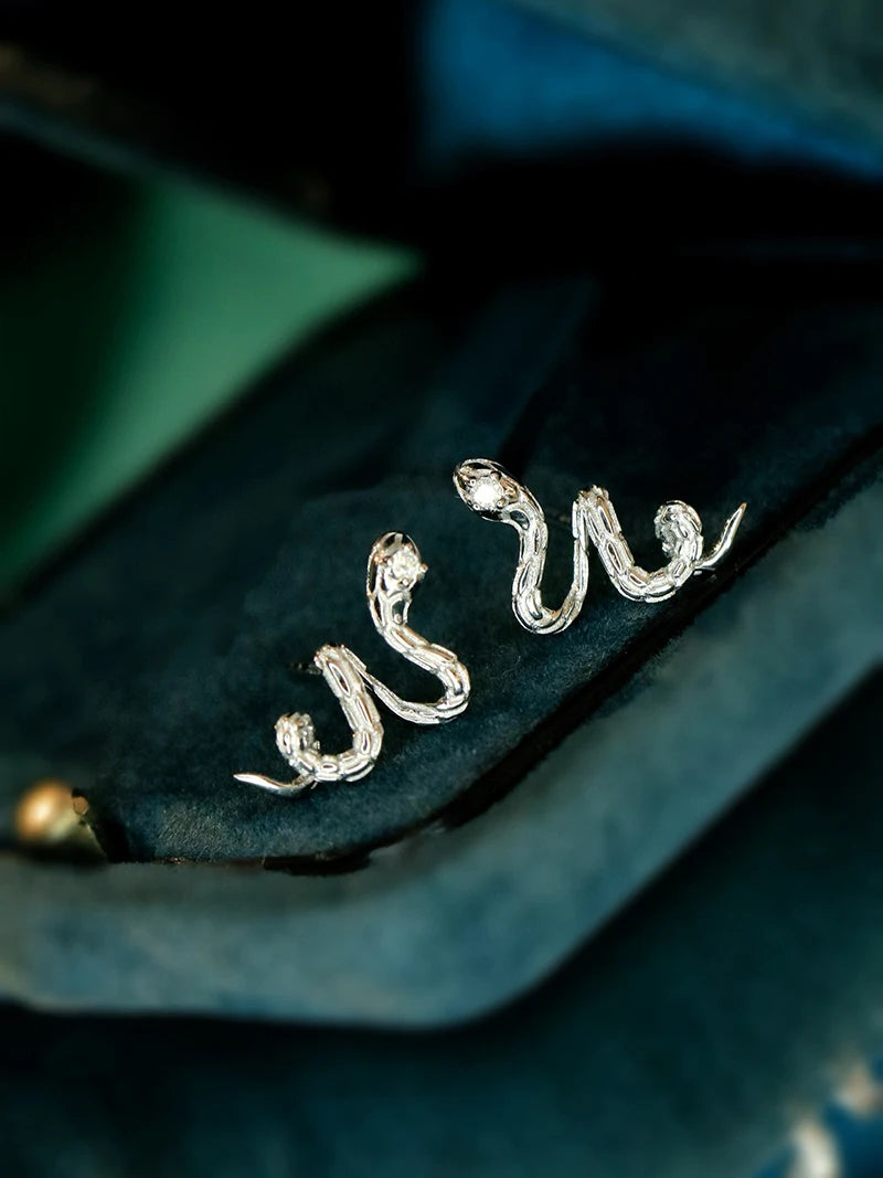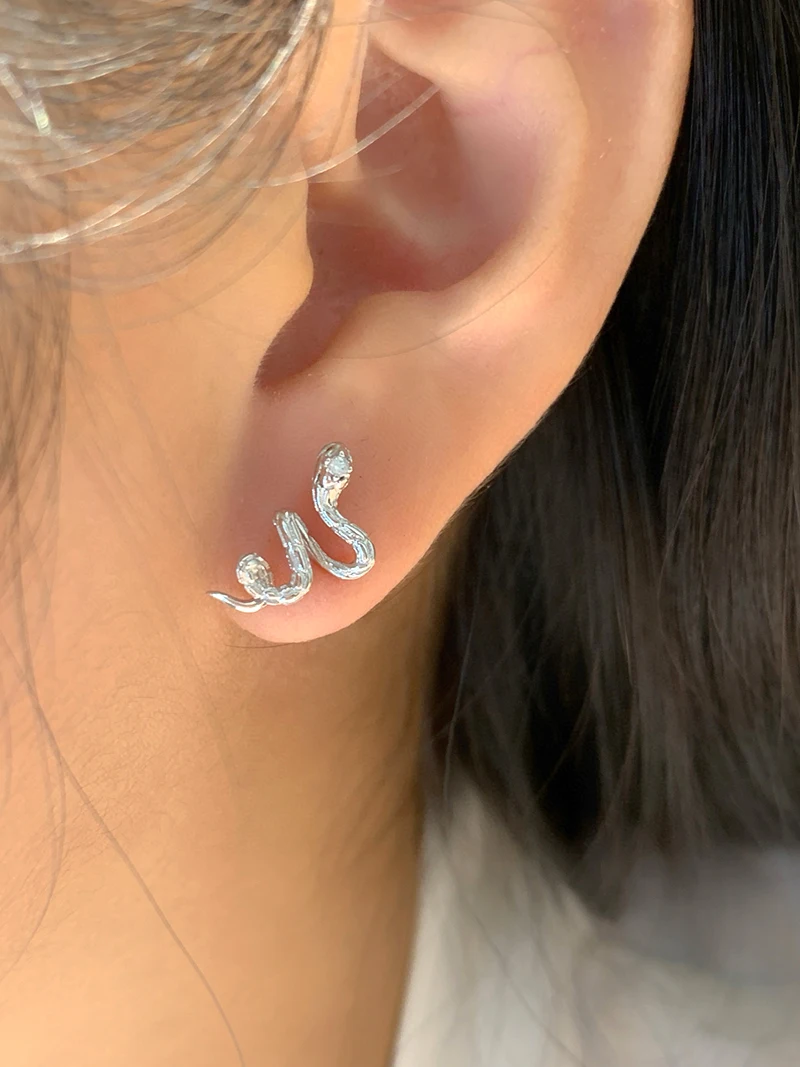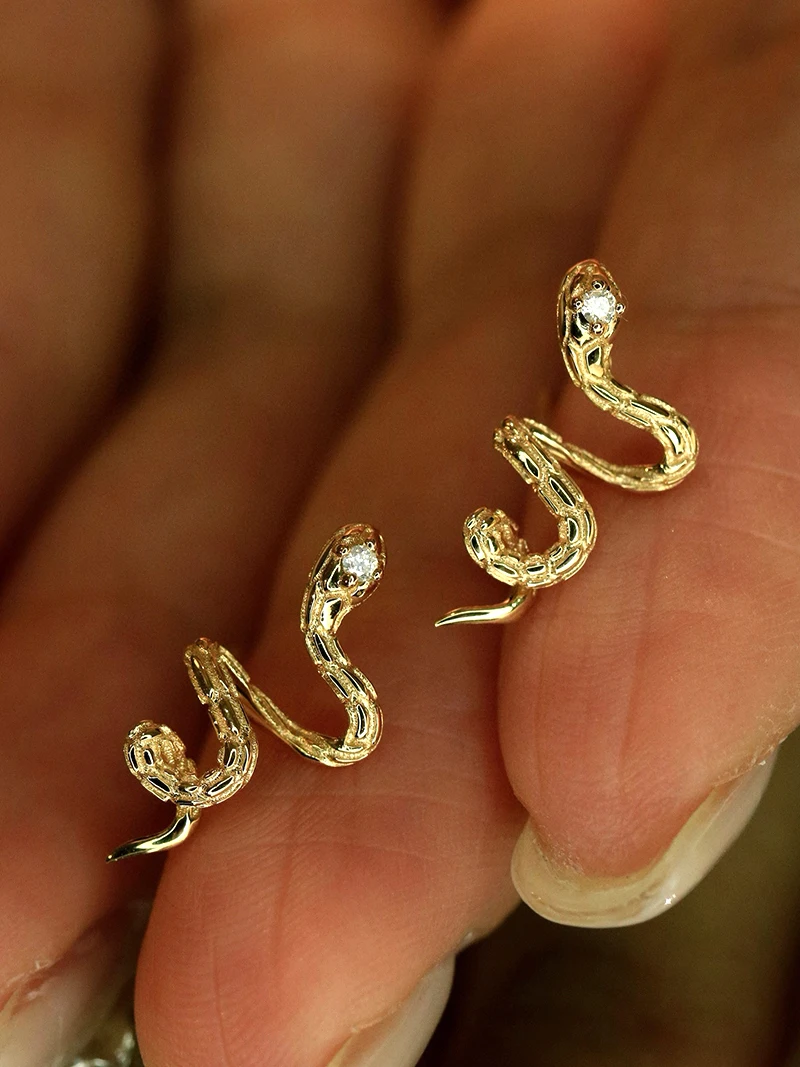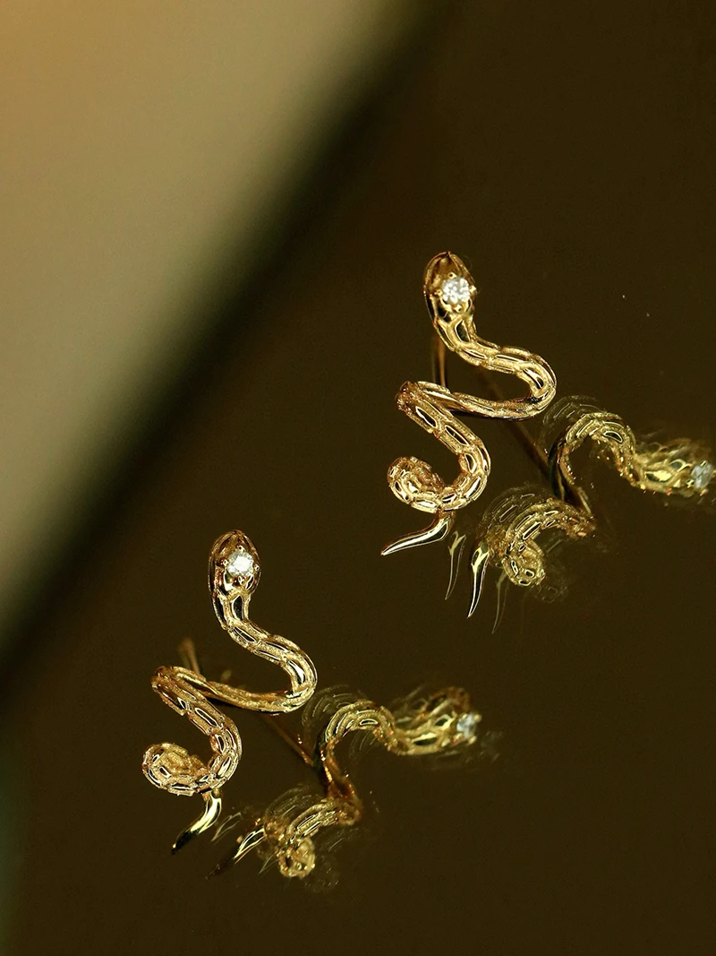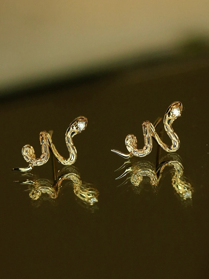 LUOWEND 100% 18K White/Yellow Gold Earrings Fashion Snake Shape Real Natural Diamond Stud Earrings for Women High Party Jewelry