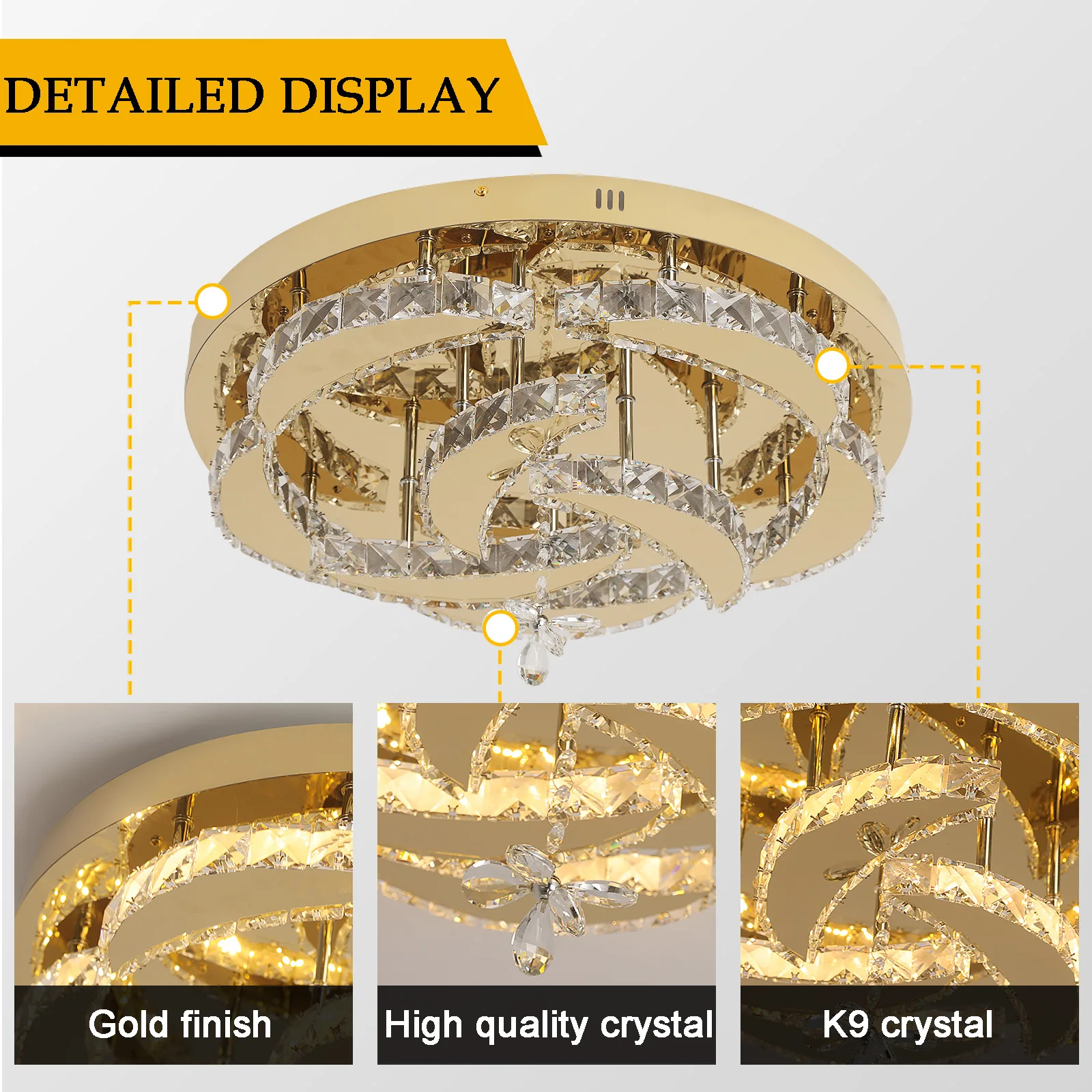 Luxury Crystal Ceiling Lamp Modern Gold Chandelier Led Living Dining Room RC Dimmable Pendant Light Home Decor Fixture Lustre