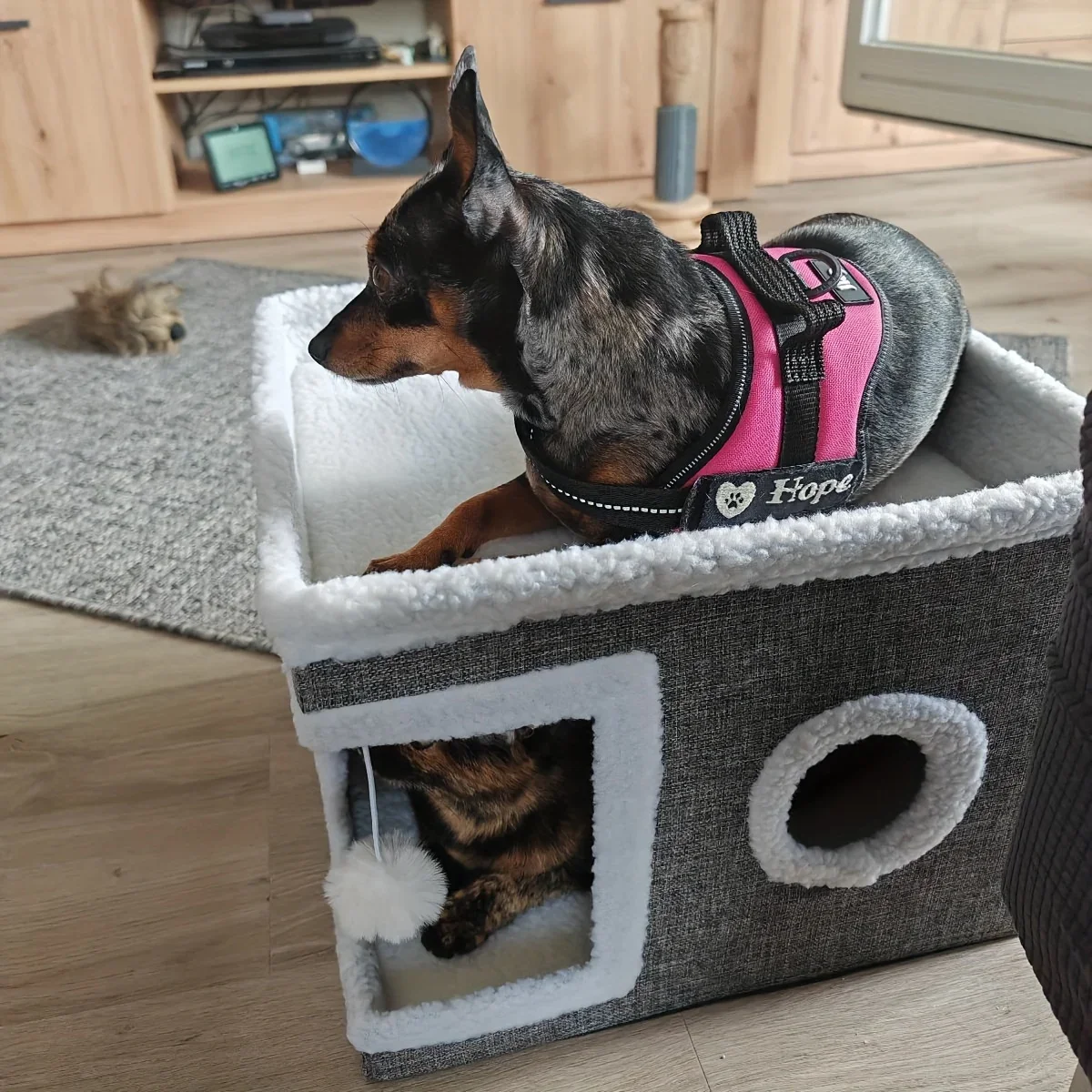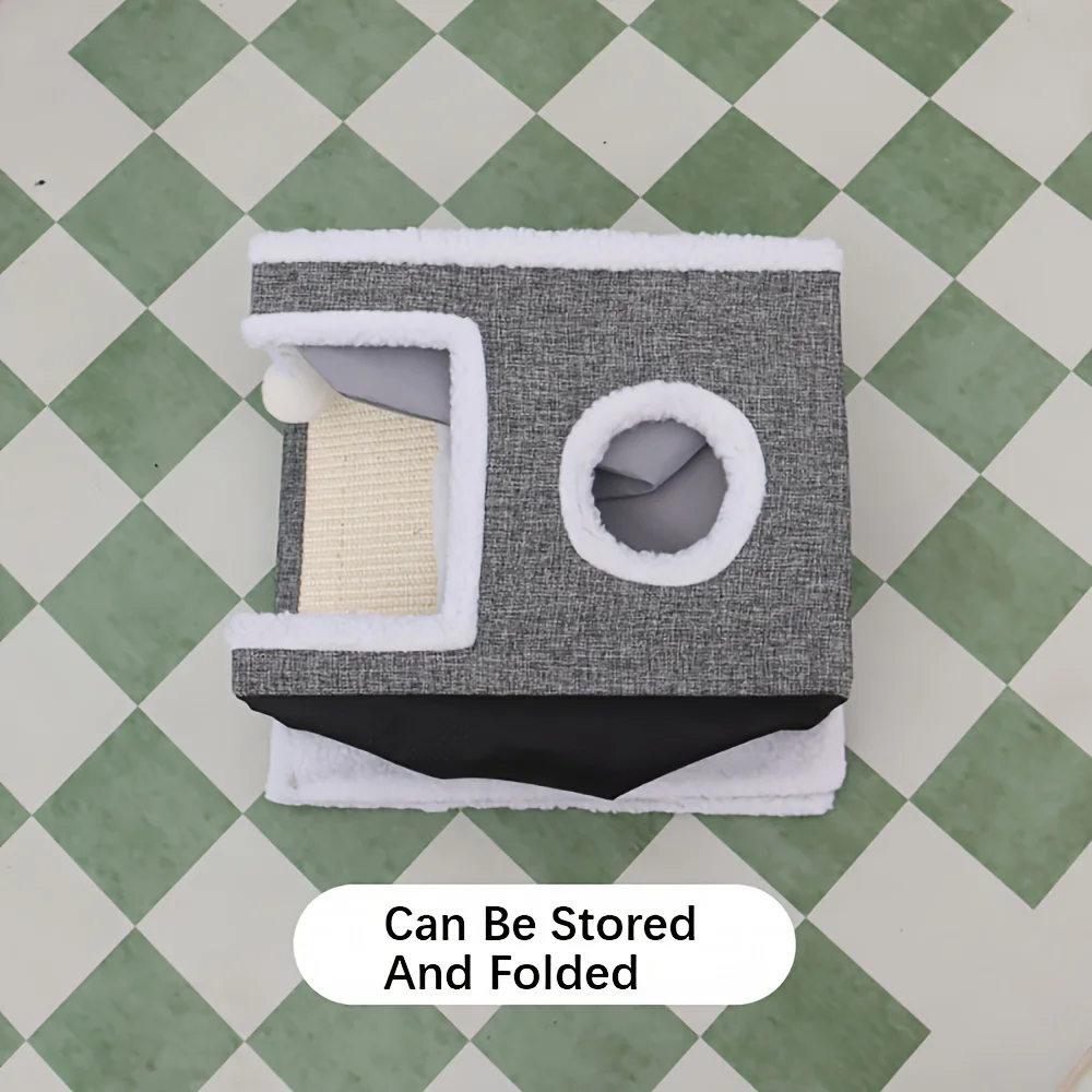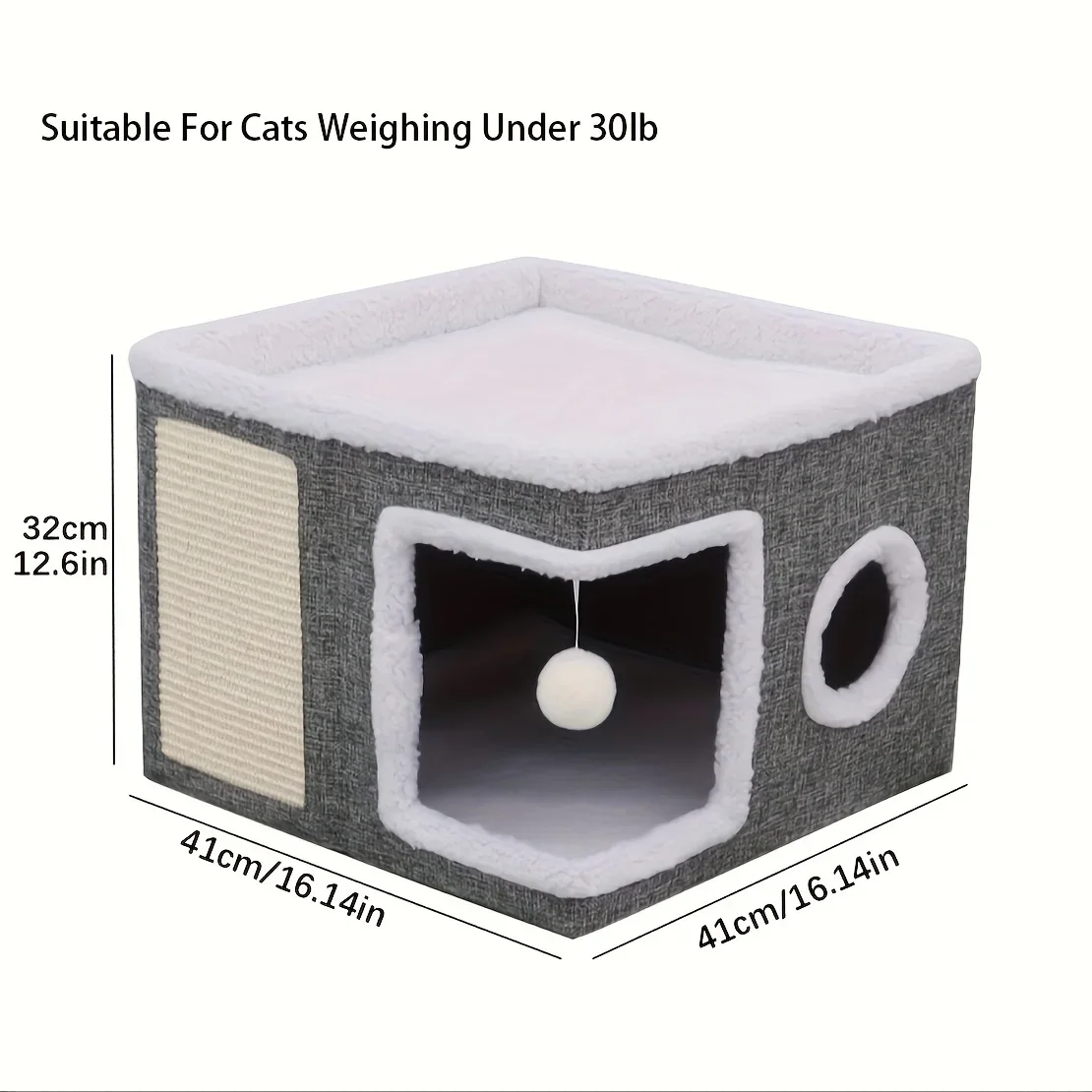 Luxury Double-Layered Cat Bed - All-Season Enclosed Nest with Sisal Scratching Board & Non-Slip Base, Includes Mat - Grey