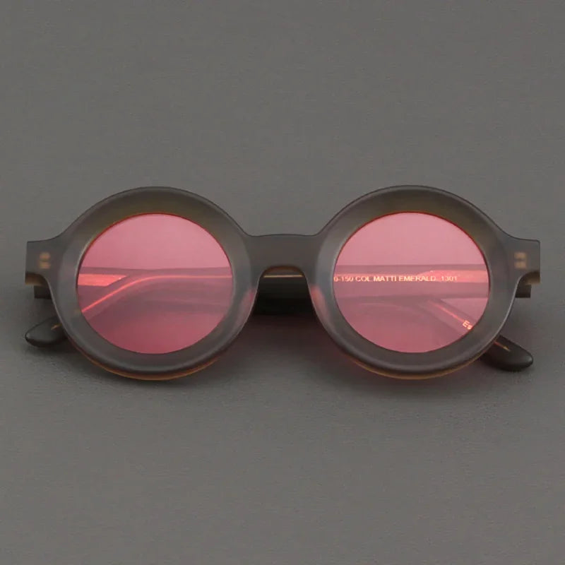 Luxury Sunglasses for Women Round Coarse Frame Frosted Matte Gray Pink Lenses Outdoor Handmade UV400 Men Polarized SUN GLASSES