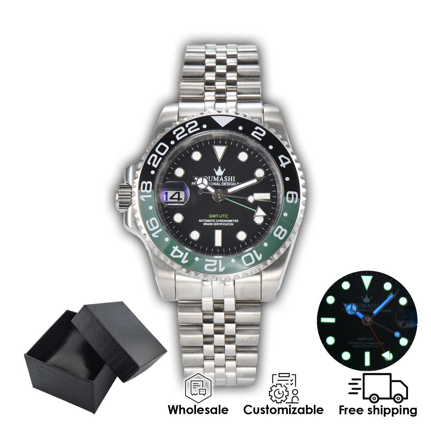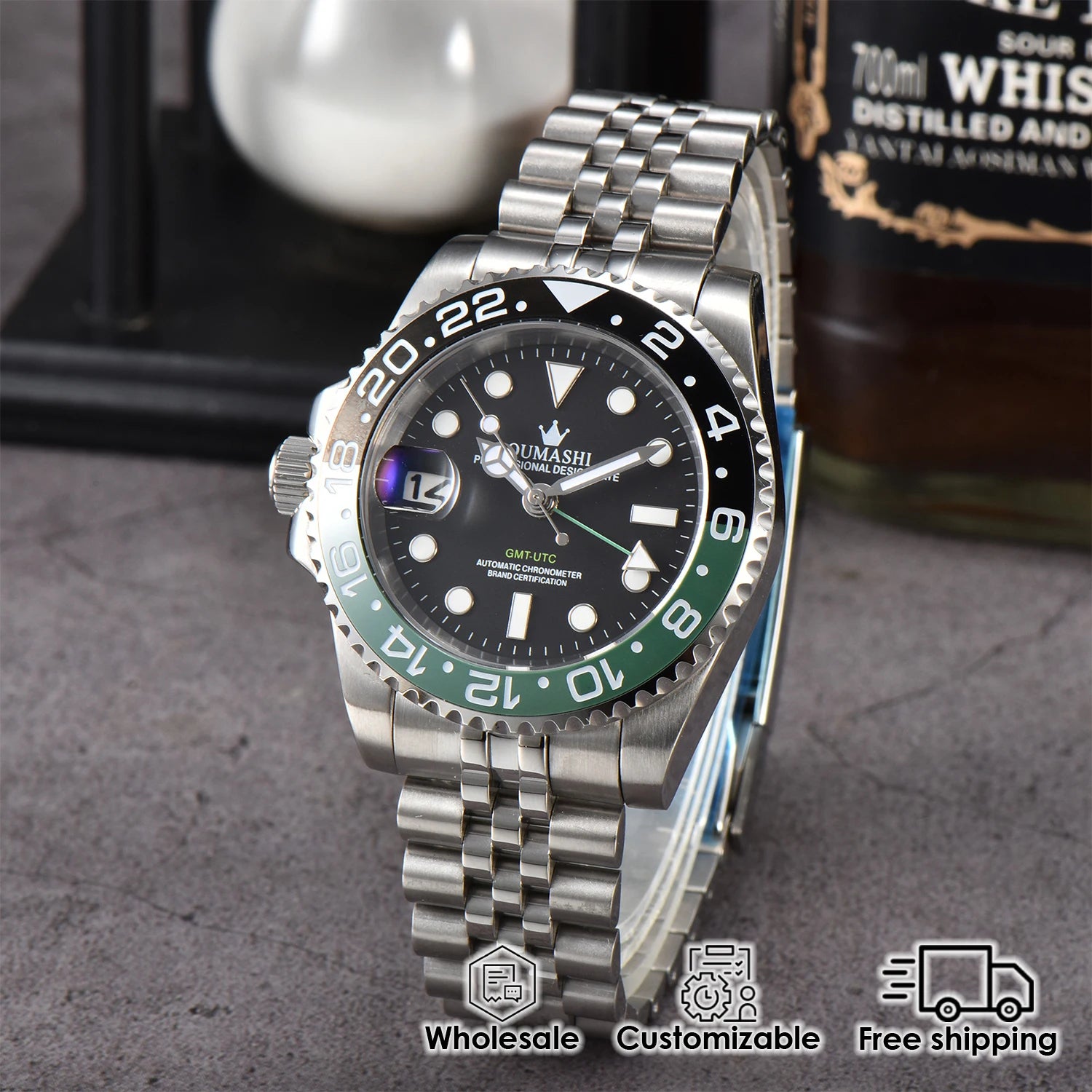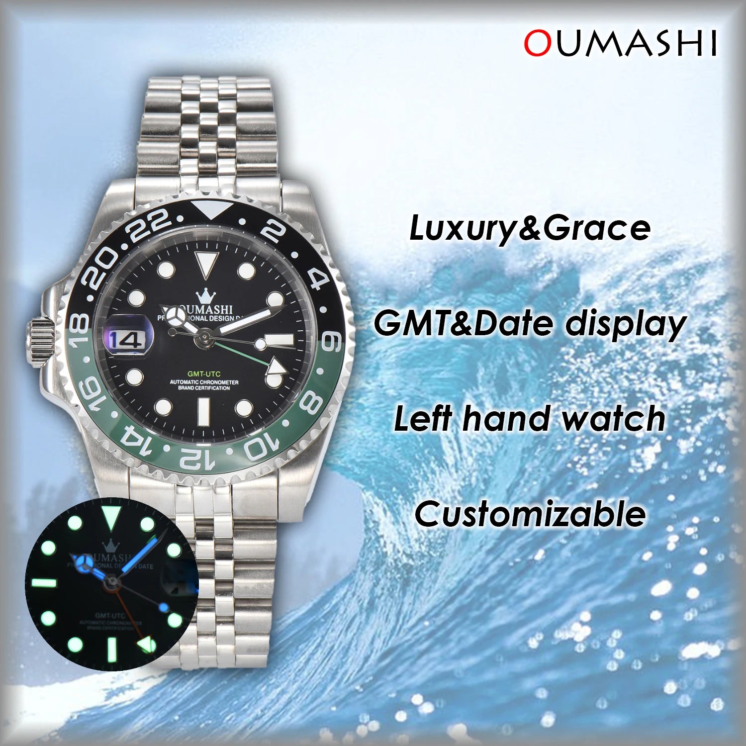 Luxury watches for Men 40MM NH35 Automatic Left hand Watch GMT Luminous waterproof Fashion Business Customizable Men's Watch