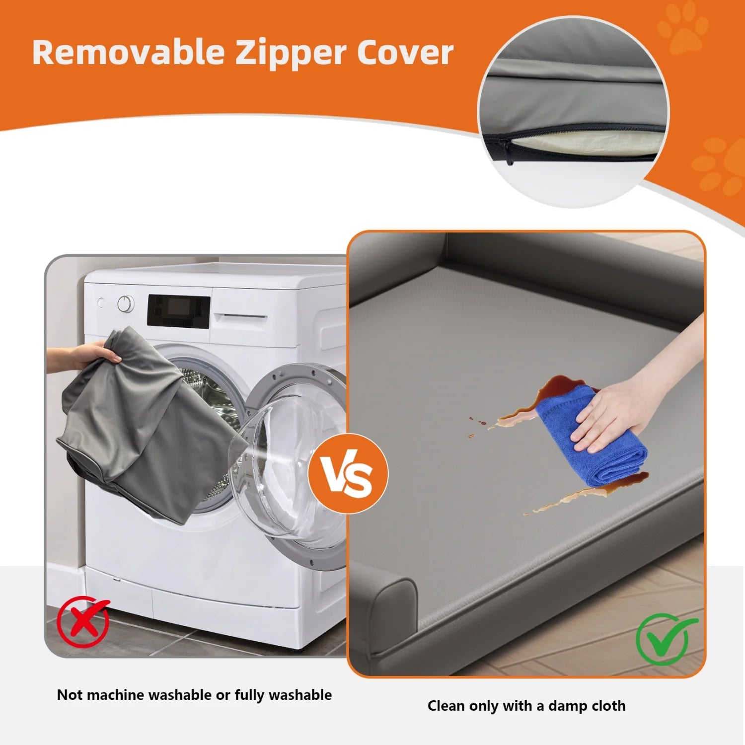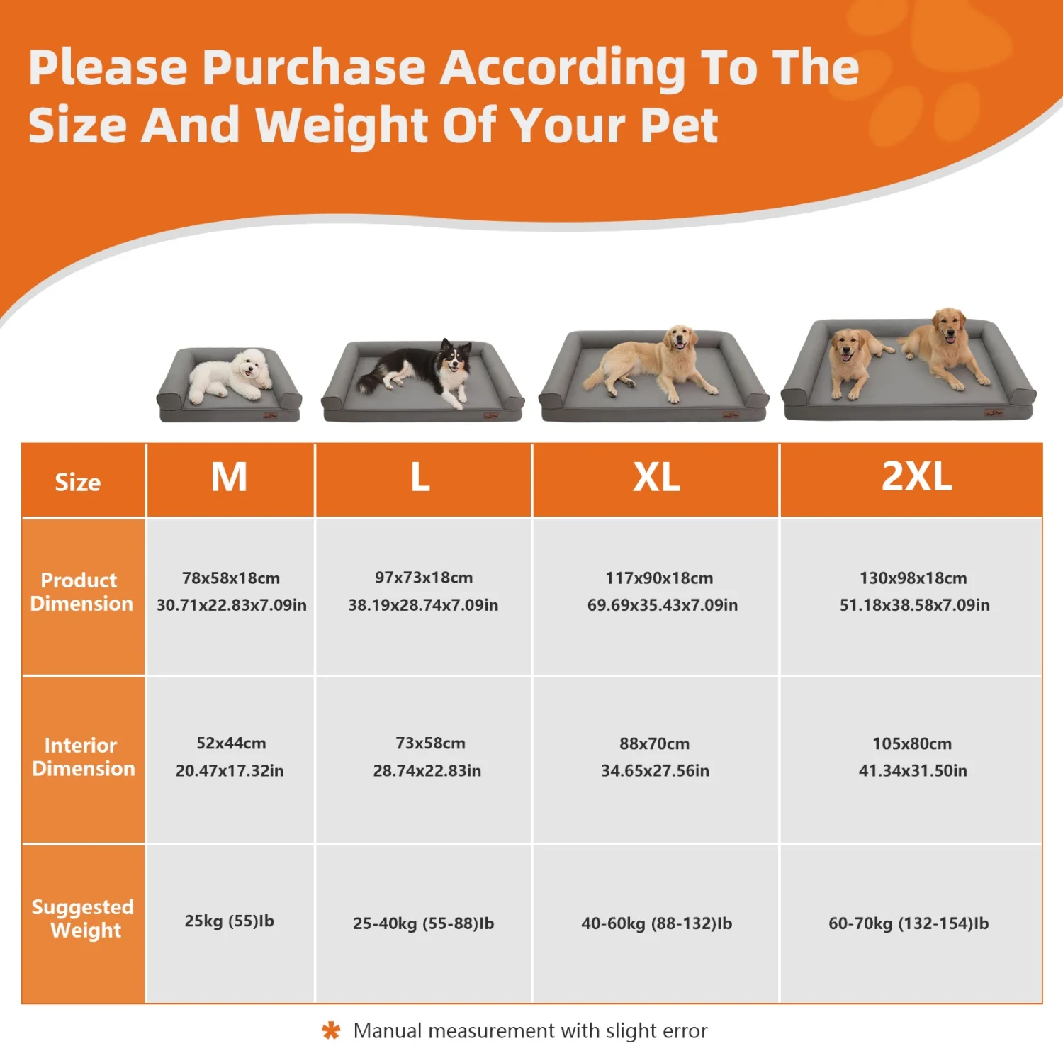M-2XL Microfiber Leather Dog Bed Sofa Couch Bed with Supportive Bolster and Foam Base Pet Sleeping Bed for All Breed
