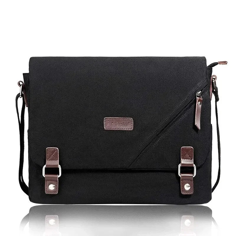 Men Briefcase Crossbody Shoulder Bags Male Messenger Bags Boy Canvas Bags for Travel Business Books School Casual Black