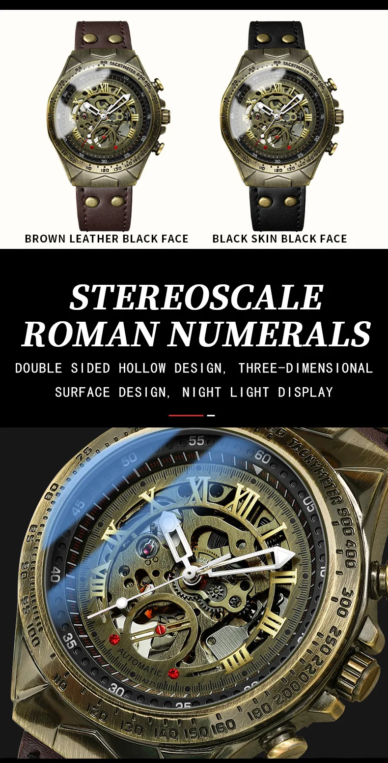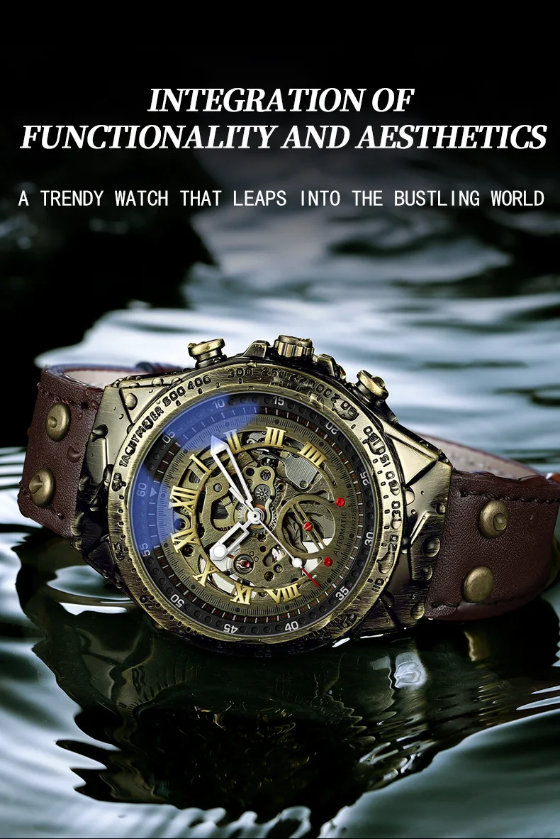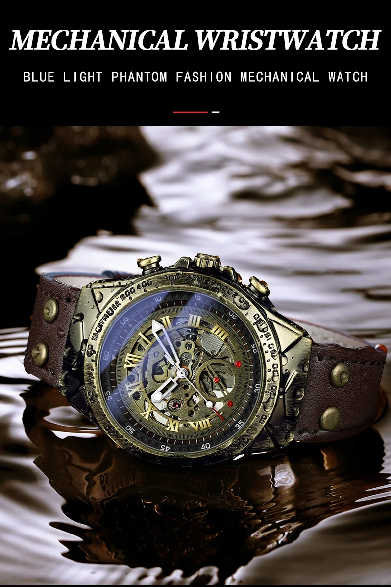 Men Mechanical Watch Business Retro Trend Bronze Leather Strap Automatic Mechanical Watch Waterproof Male Fashion Clock Watches