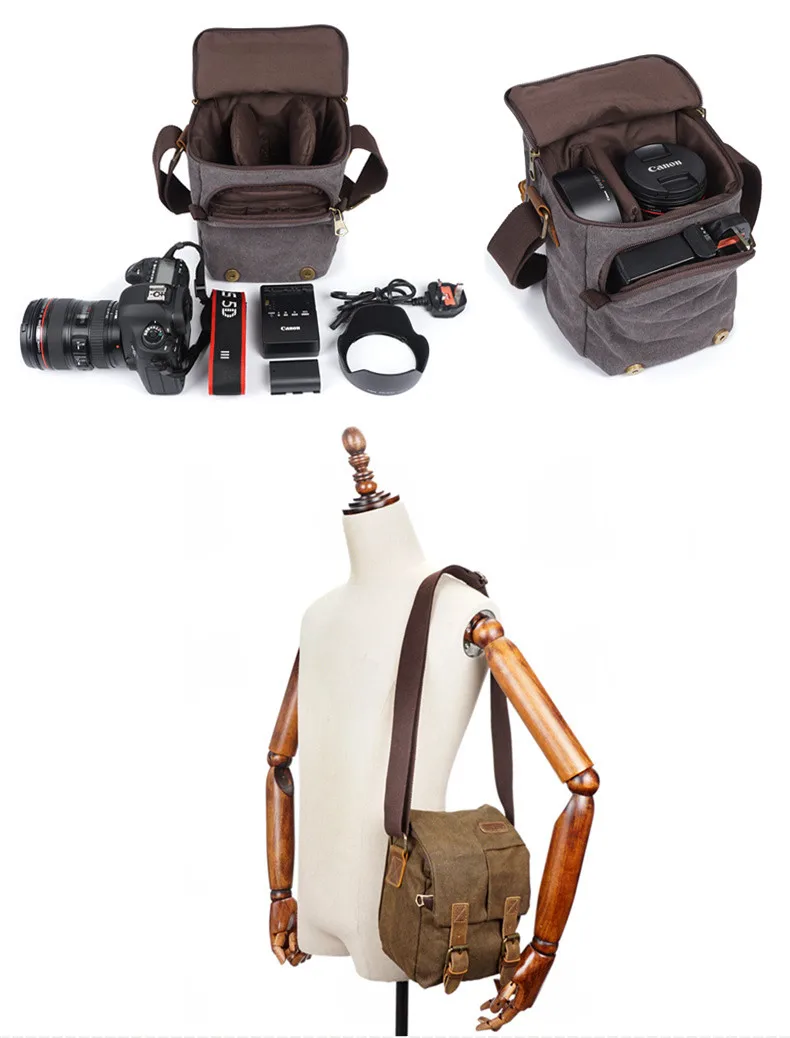 Men Vintage Oil Waxed Canvas Shoulder Bags Shockproof DSLR Camera Bag Waterproof Canvas messenger Crossbody Bags for men 2020