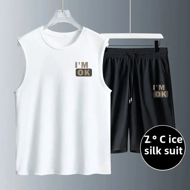 Men's Clothing Fashion Breathable Fitness Sports Quick Drying Tank Top + Sweatpants Two-piece Sets Tracksuit Men