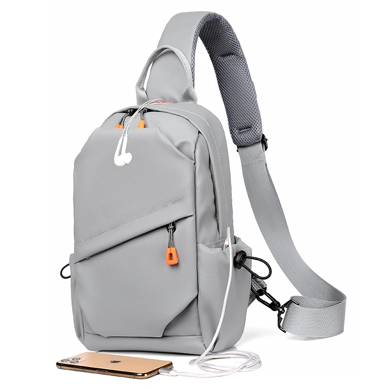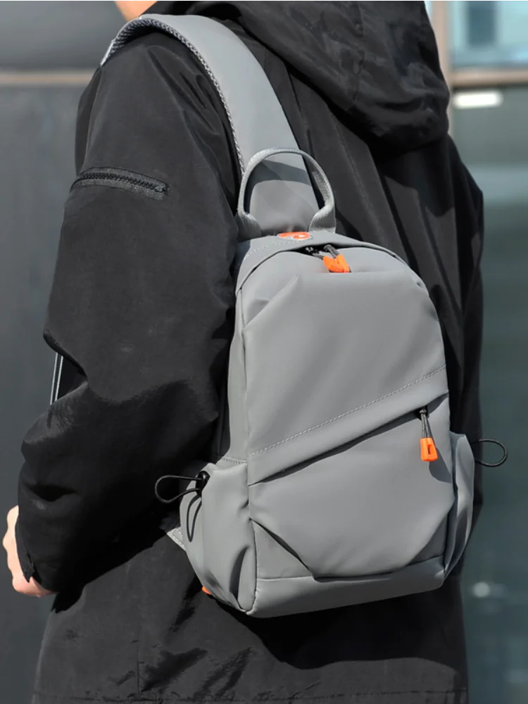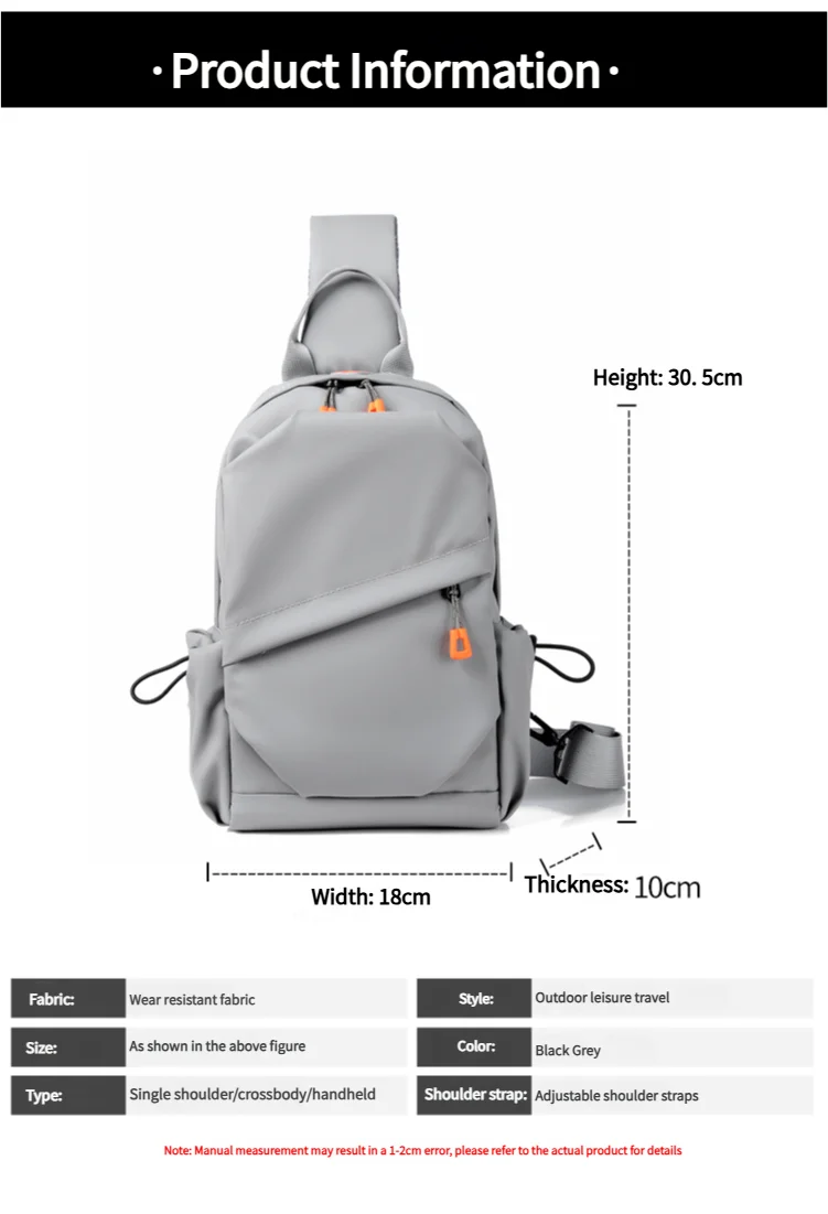 Men's hiking daily bag with shoulder straps, lightweight diagonal strap bag, single shoulder chest bag, black