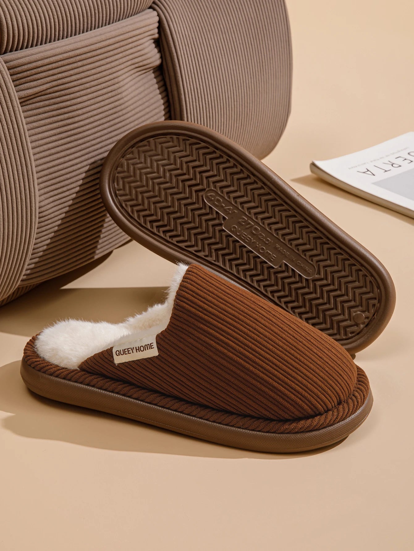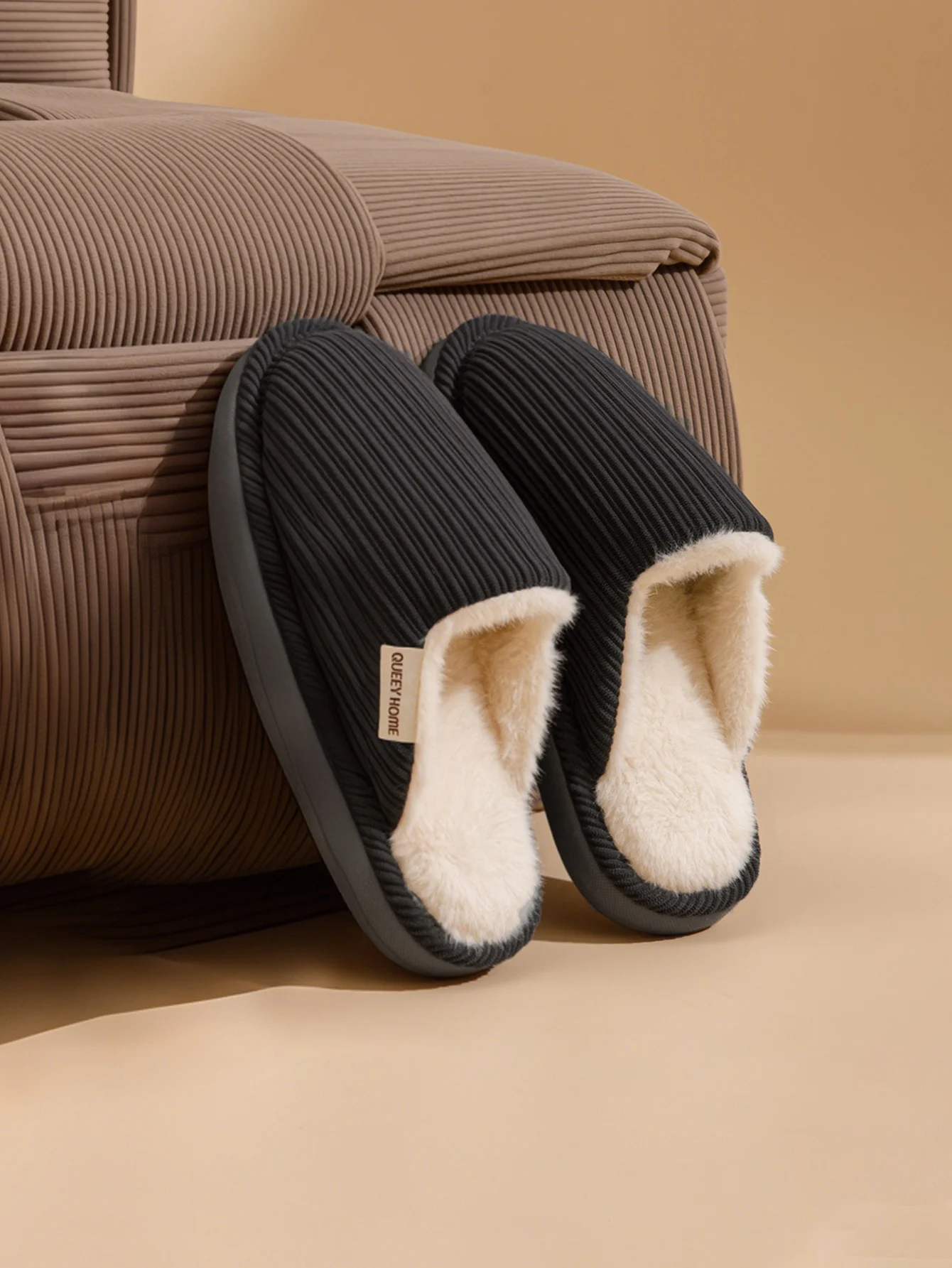 Men's home slippers winter new couple cotton slippers men's winter indoor home stomping sensation thick bottom anti slip toe cov