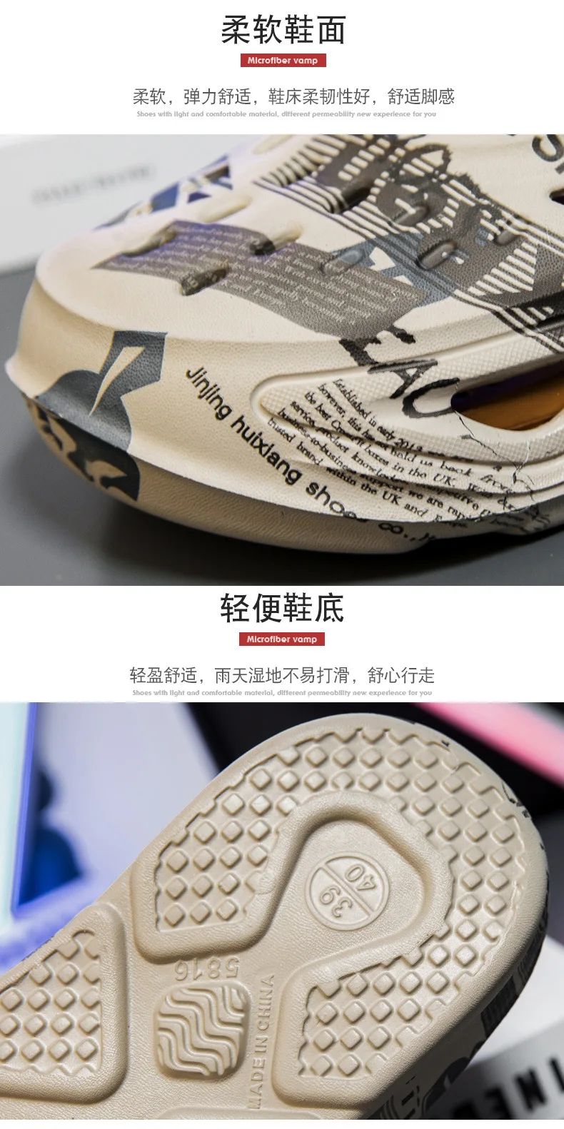 Men's Sports Sandals Eva Light Soft Comfortable Men's Beach Sandals Fashion Platform Buckle Slip-on Graffiti Slippers for Men