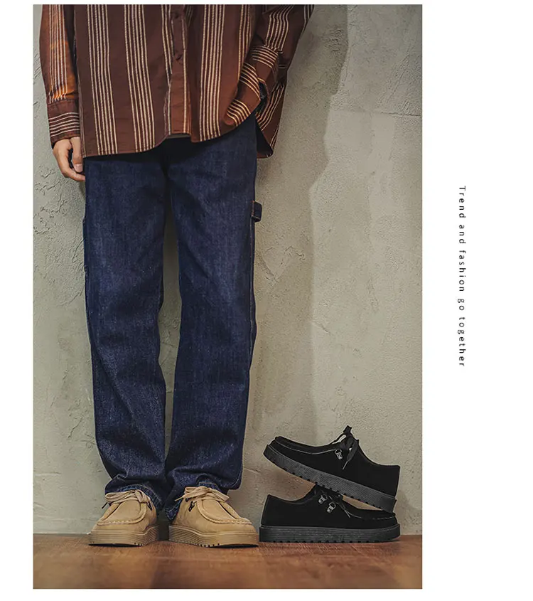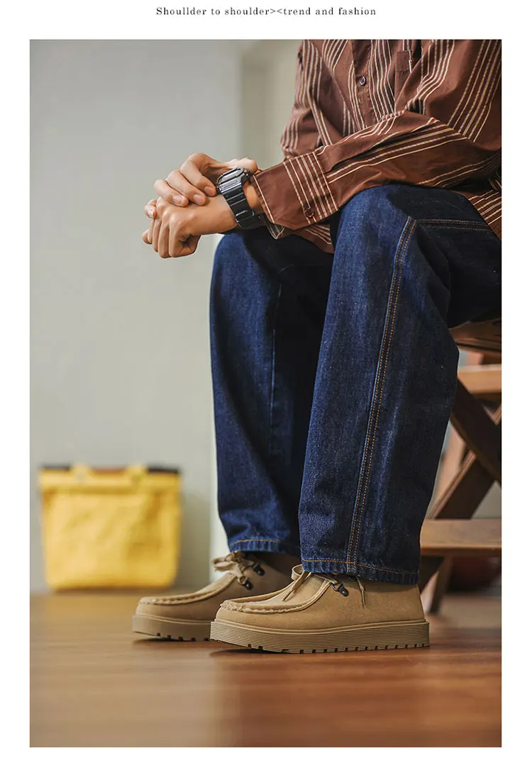 Men's wide toe barefoot shoes classic retro casual shoes lightweight outdoor sports walking shoes khaki thick soled work shoes
