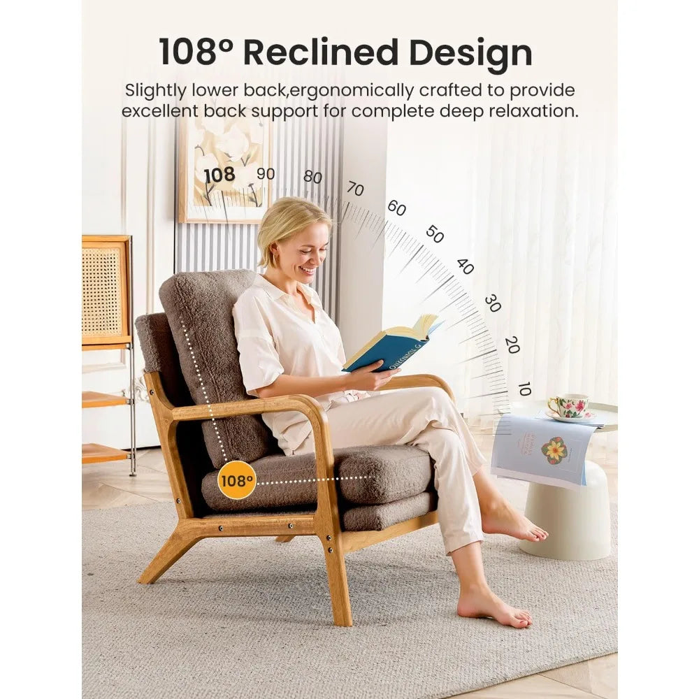- Ergonomic Design & Deep Relaxation: Design with 108° slightly inclined (front seat height: 16",rear seat height:12.6"), this chair effectively alleviating back pressure and relaxing the knees. With a generous 23.6"D x 23.6"W seating area, this chair offers exceptional comfort for relaxation, standing out as an ideal comfy chairs for living room.
