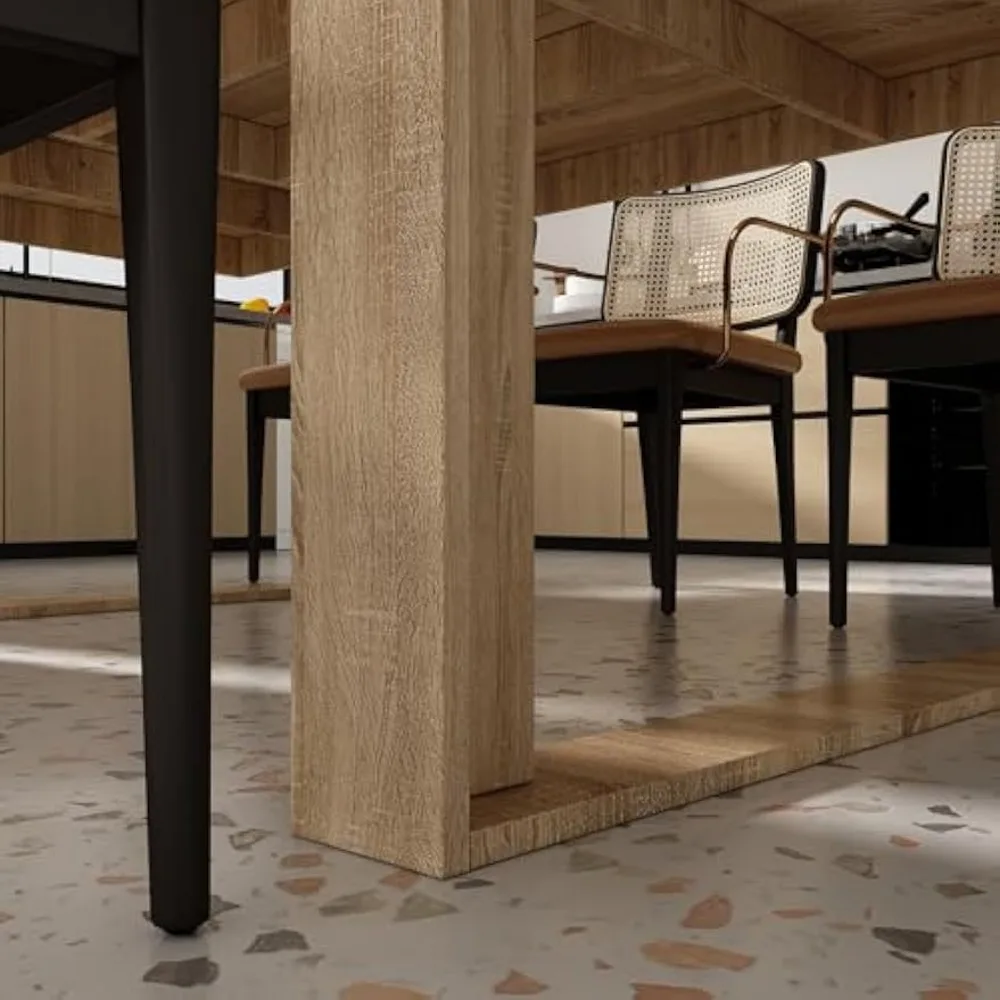 This dining table is designed to accommodate 8 to 10 people comfortably, making it perfect for family gatherings, work meetings, and social events. With its spacious dimensions of 86.6"W x 47.2"D x 29.4"H, it offers ample room for everyone. The table features a stylish design with a beautiful color and simple pattern, complemented by elegant legs. The tabletop showcases wood grains, adding a touch of natural elegance. Please note that there may be slight color variations depending on the lighting conditions. The rectangular shape of this table makes it versatile for various uses, including brainstorming sessions, leadership meetings, and team collaborations. It can function as a meeting table, executive desk, computer desk, dining room table, gaming desk, craft desk, and more. Constructed from MDF and particle board, this table is built to last, offering durability and sturdiness. The scratch- and stain-resistant laminate finish ensures it can withstand daily wear and tear while maintaining its clean appearance. Cleaning is a breeze with just a damp cloth. Assembly is straightforward, with all parts and hardware included in one large box. The parts are labeled, and a detailed manual is provided to guide you through the process step by step.