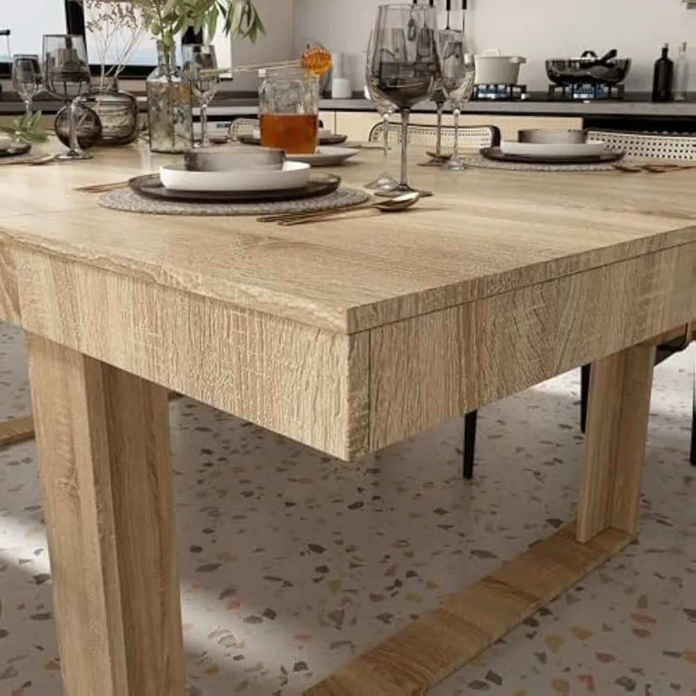 "Modern Wooden Dining Table Seats 8-10, Versatile for Home and Office, Light-Weight Kitchen Table"