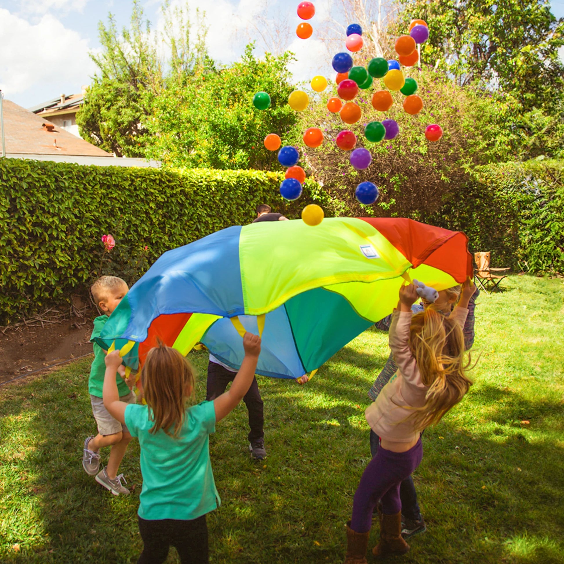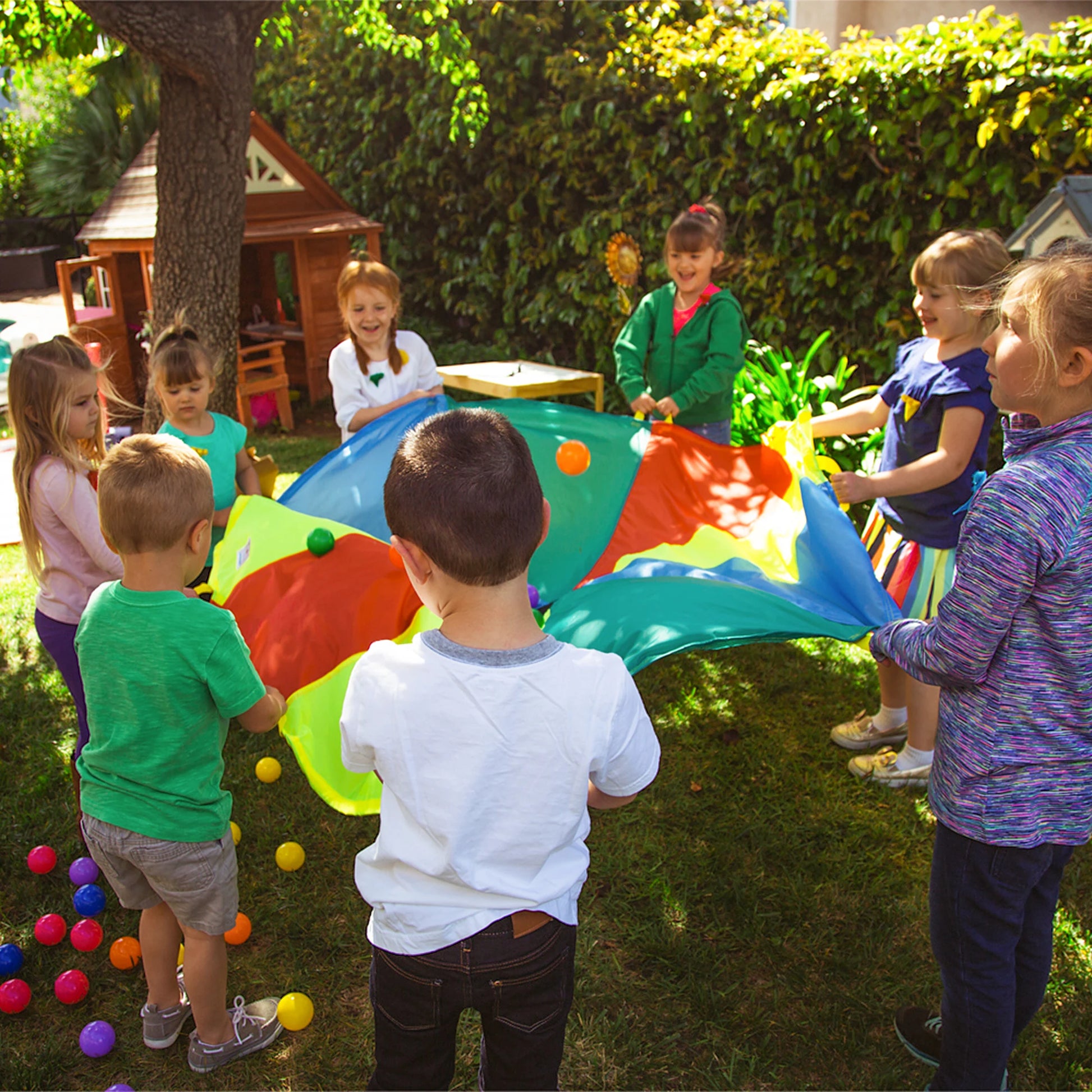 Multicolored Kids Play Parachute with 8 Handles for Indoor And Outdoor Gymnastics Toy Children's Game Activity
