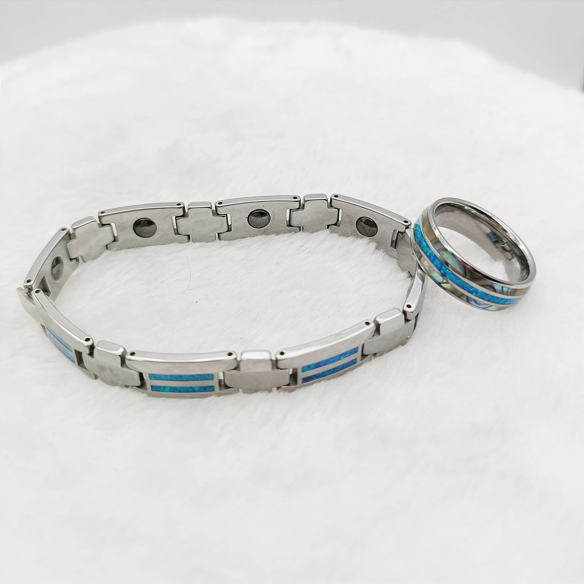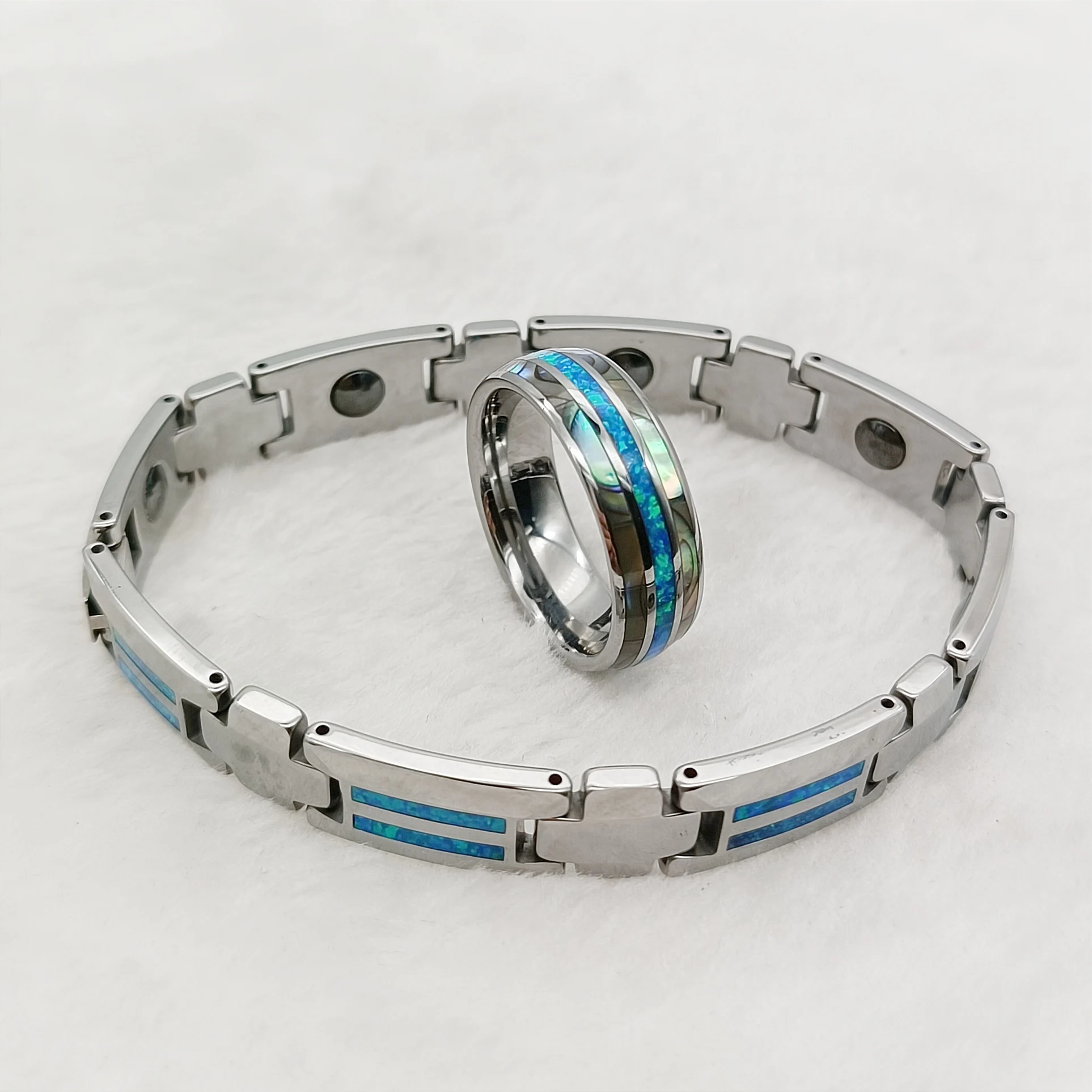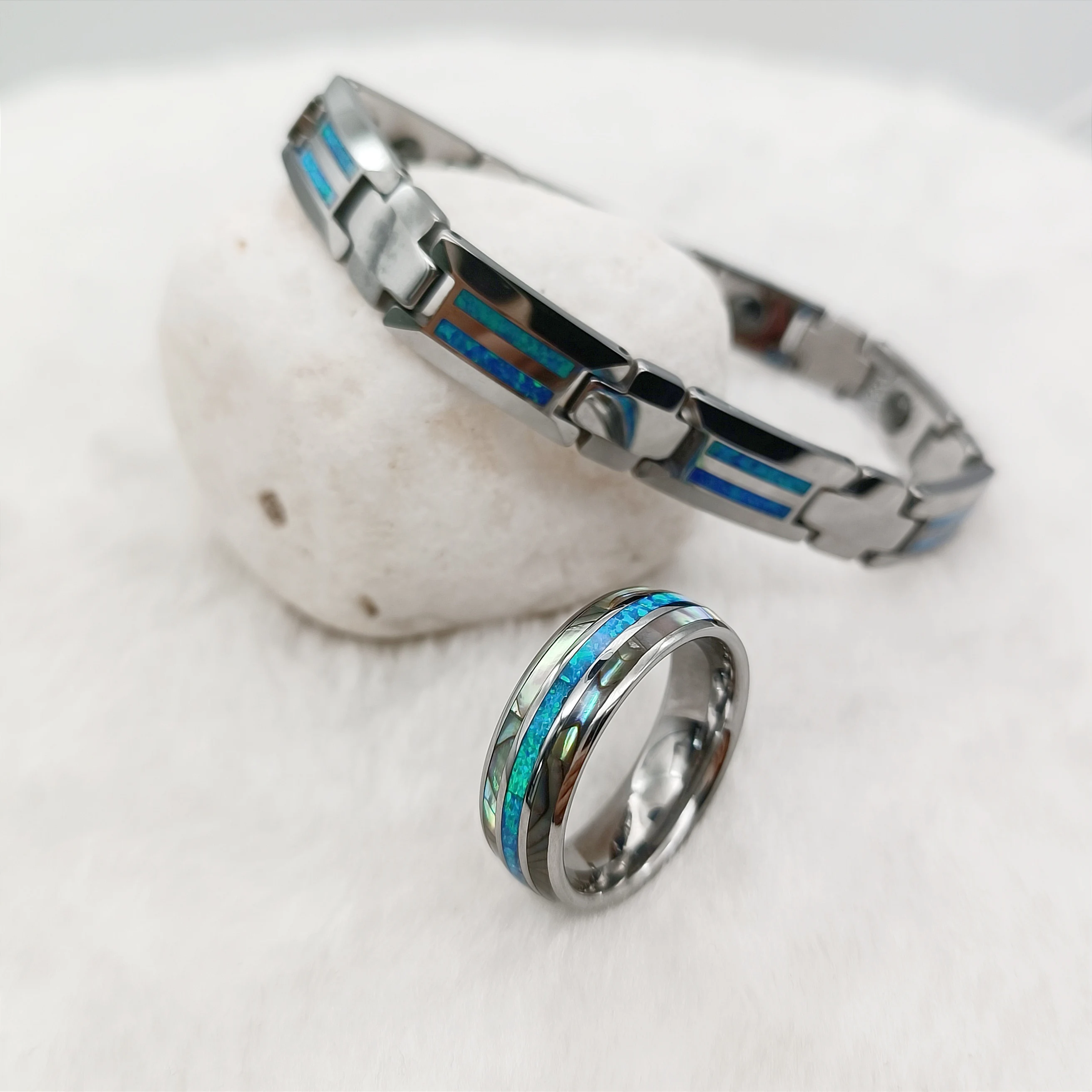 Natural Blue Opal Fashion Jewelry Beautiful Wedding Bands Finger Rings For Men And Women Tungsten Carbide Bracelets Jewelry Sets