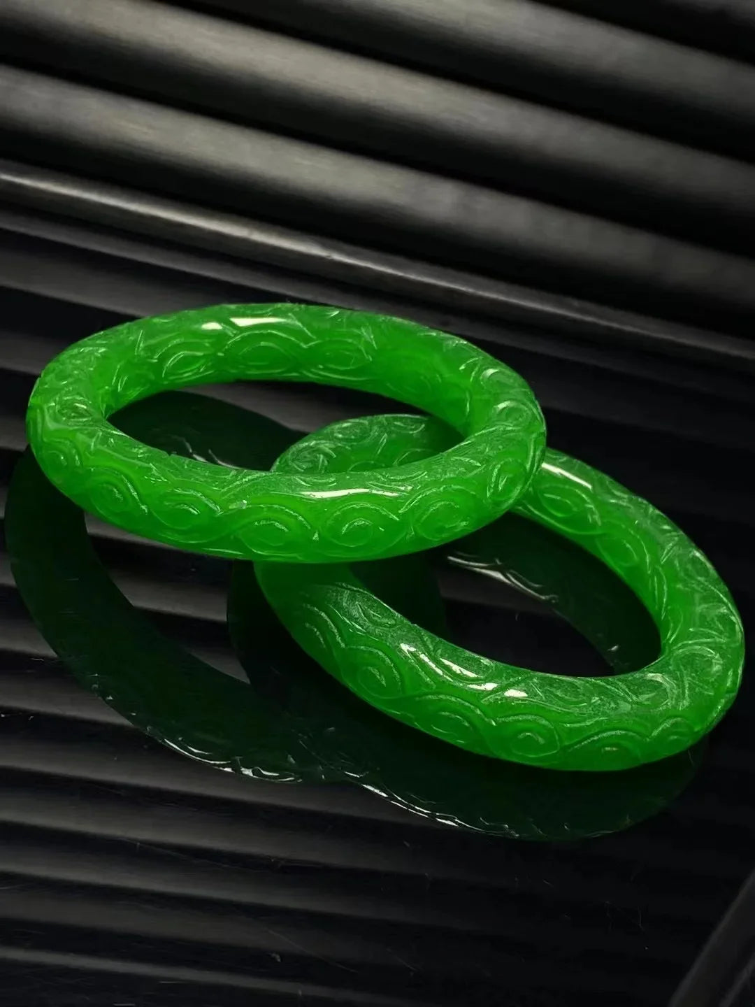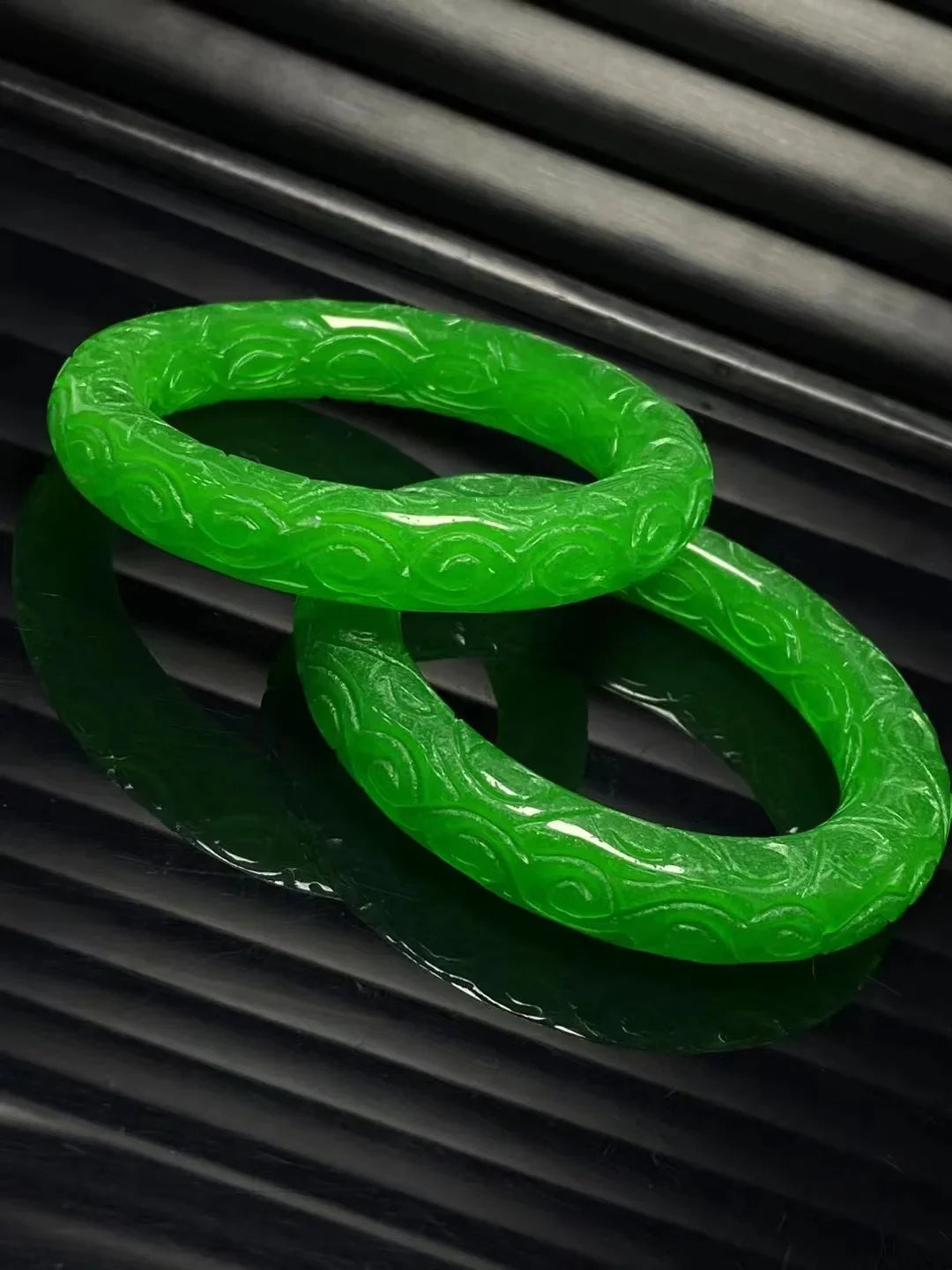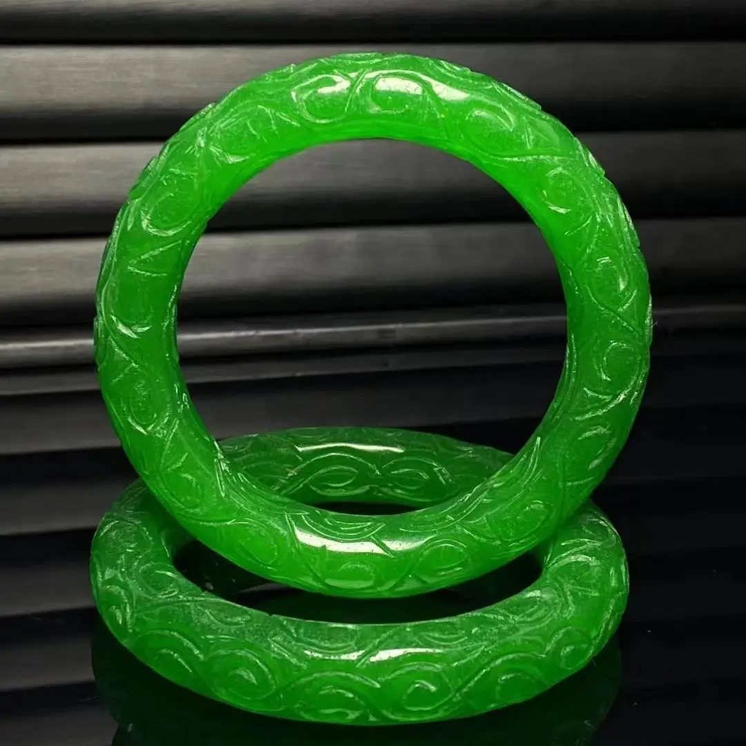 Natural Quartzite Hand Carved Bangle Lucky Bracelet for Women Boutique Emerald Fine Jewelry Accessory