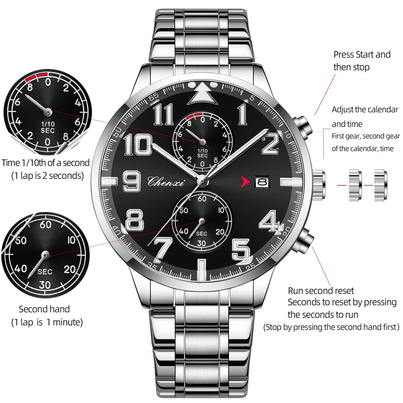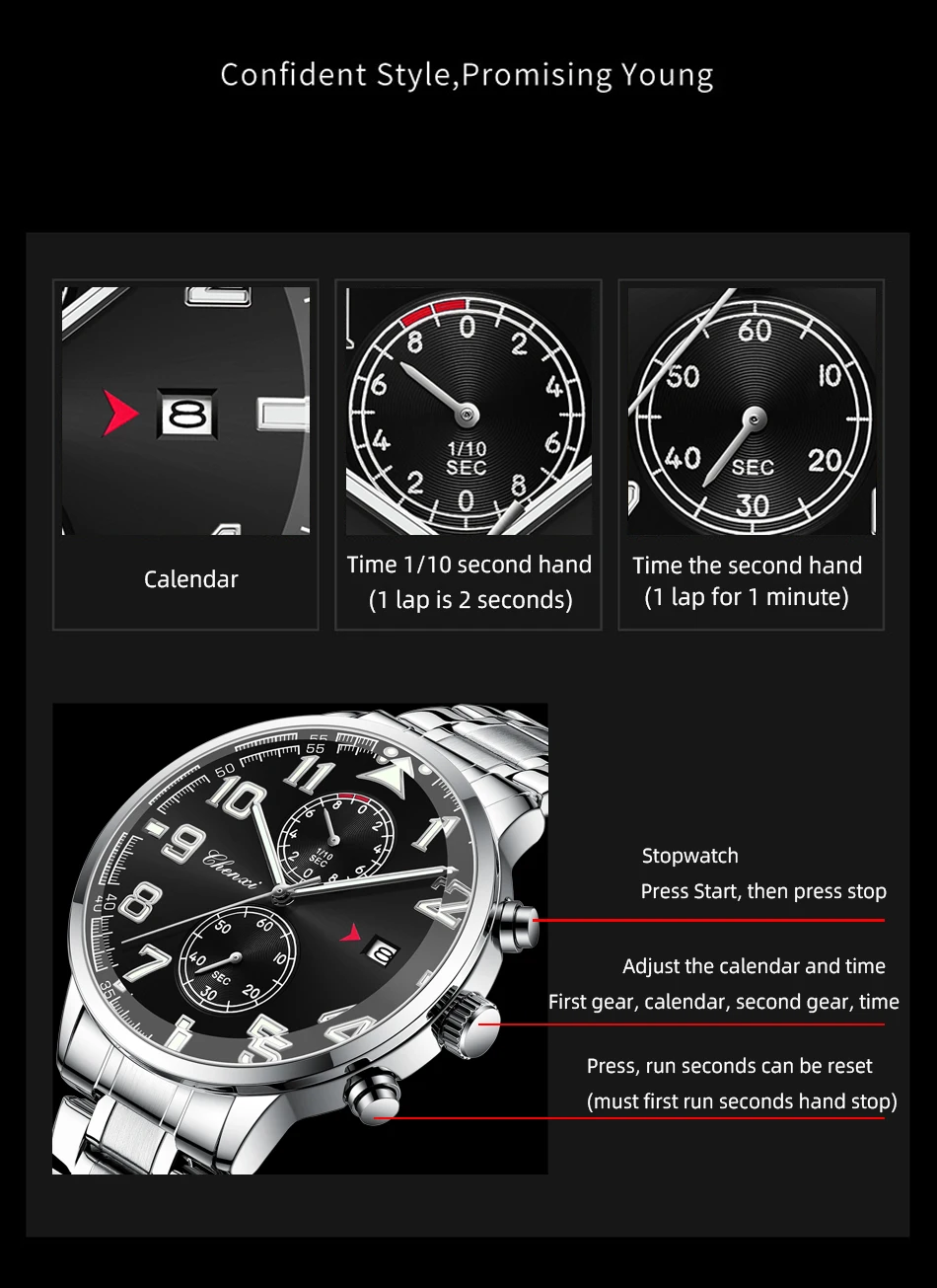 Feature: Luminous,Chronograph,Complete Calendar