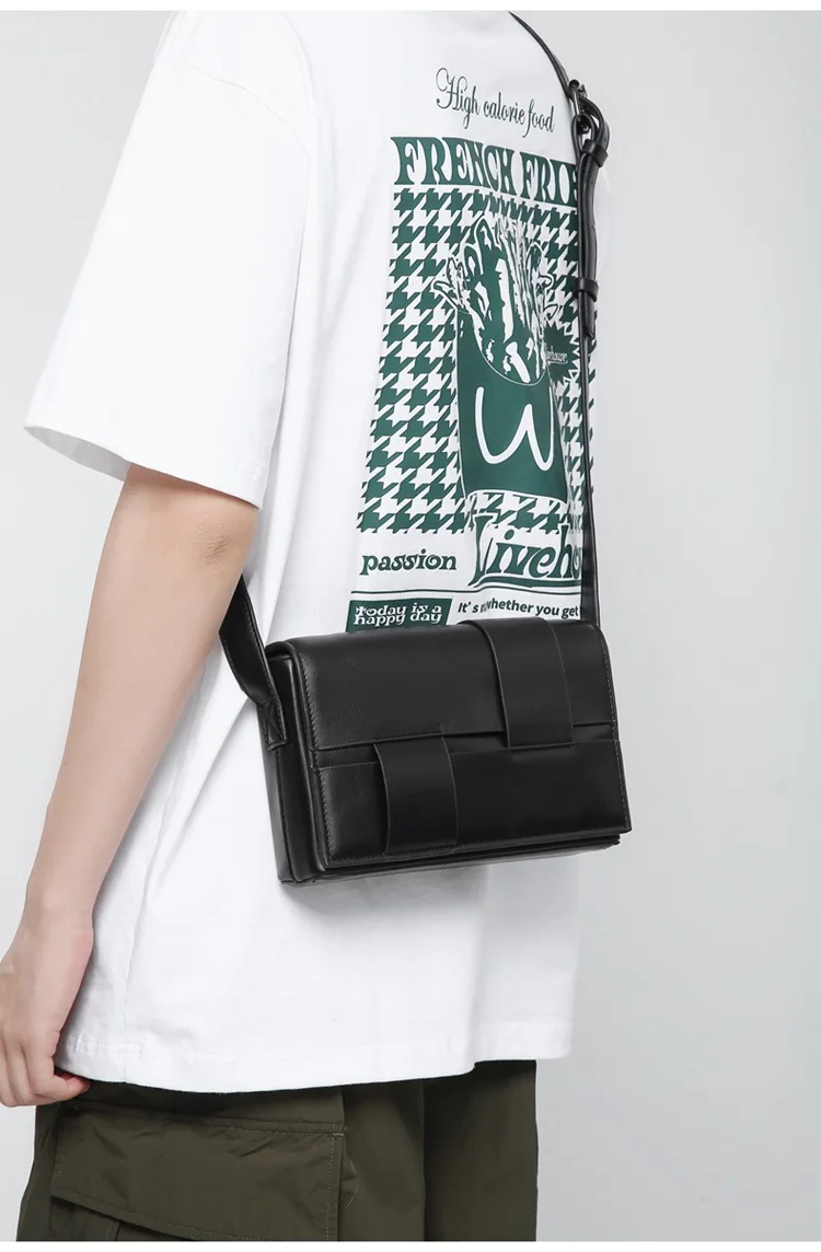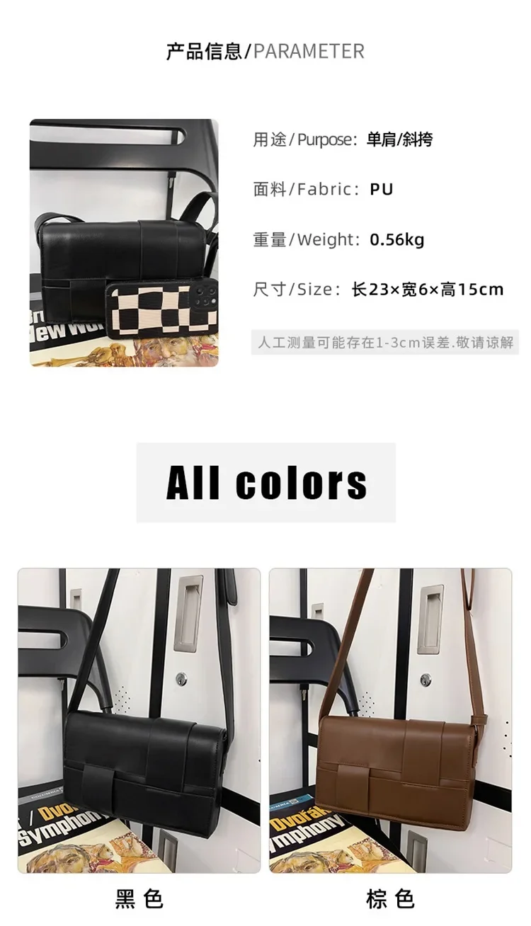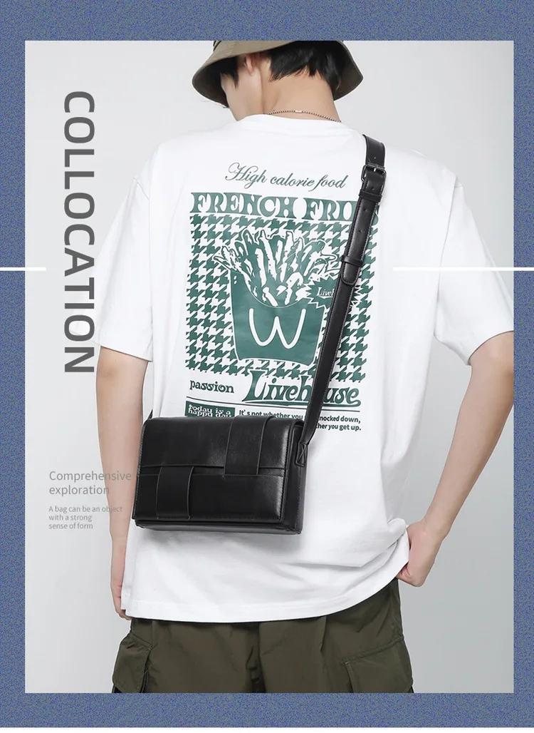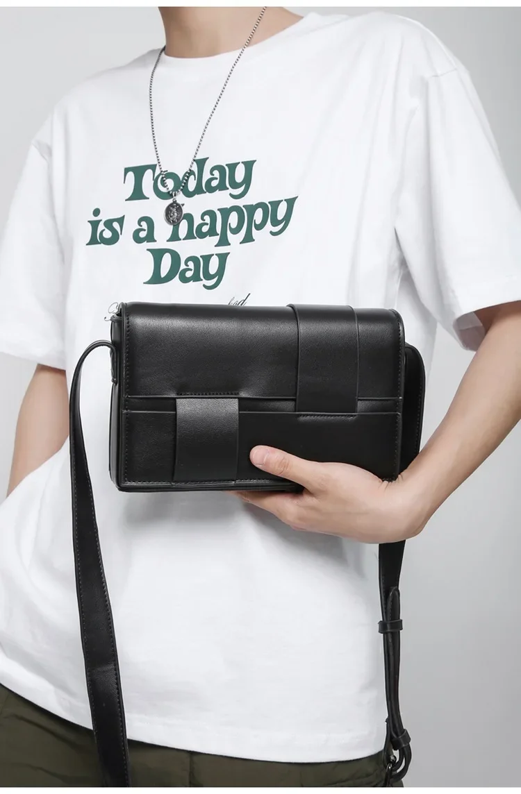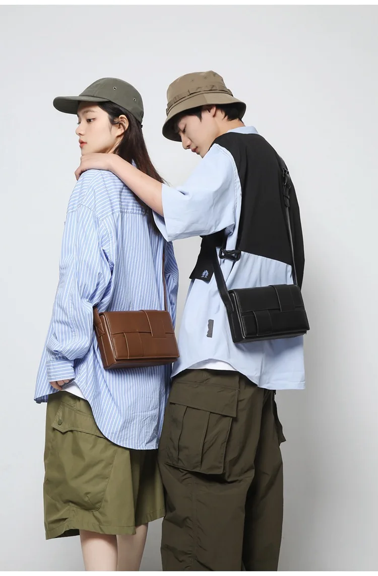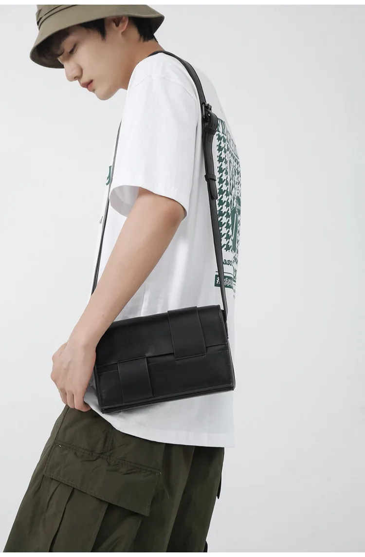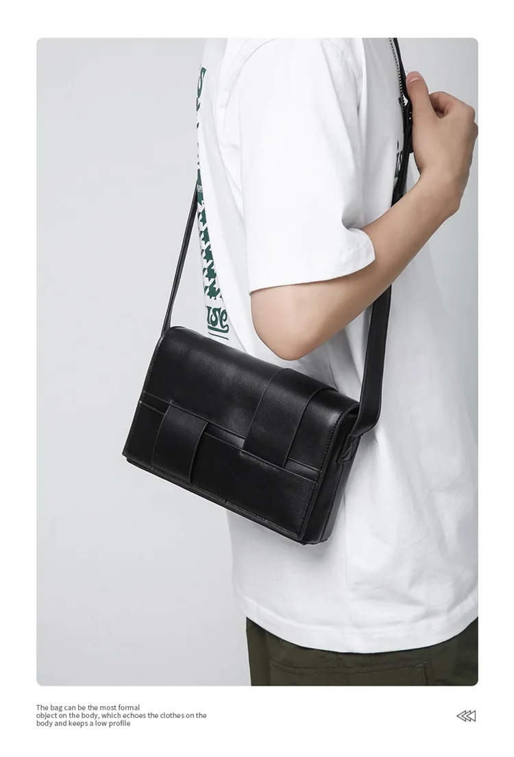 New Fashion Weave Men Crossbody Bag Casual Business Pu Leather Men's Messenger Woven Vintage Shoulder Handbags Bags