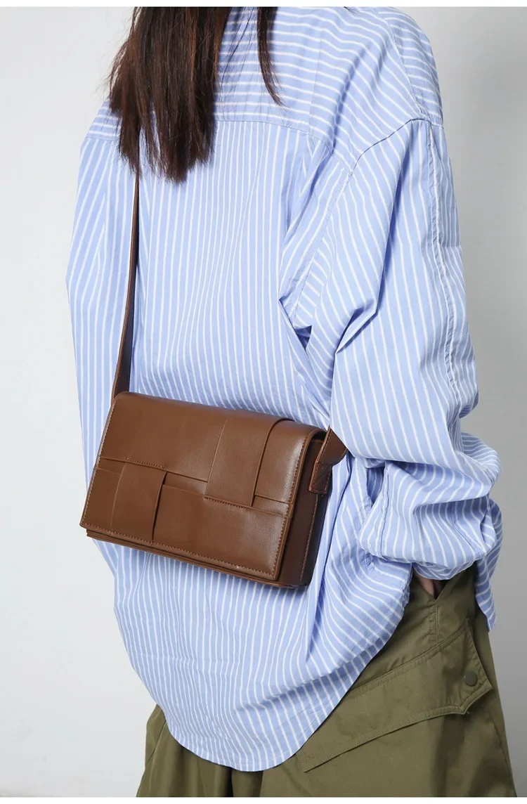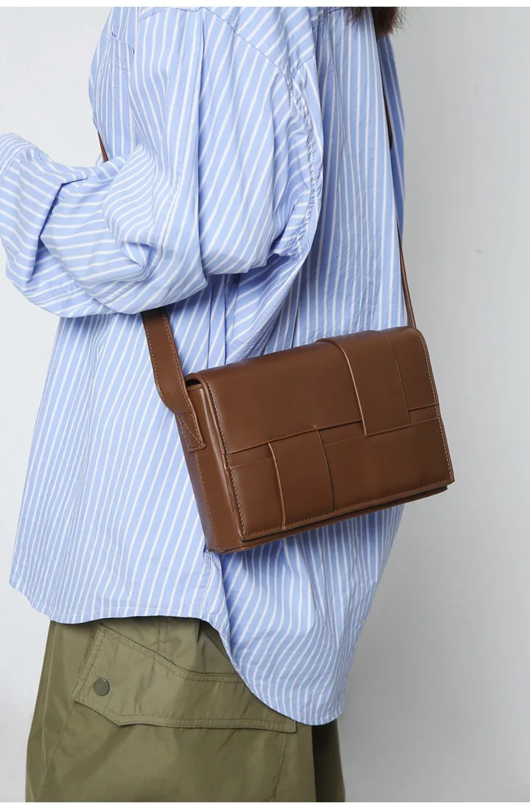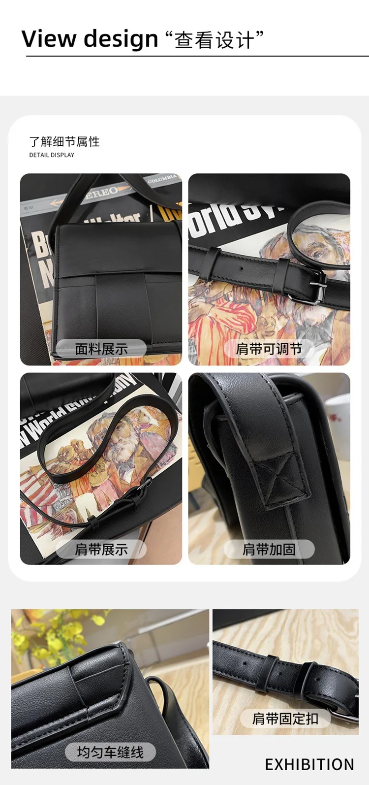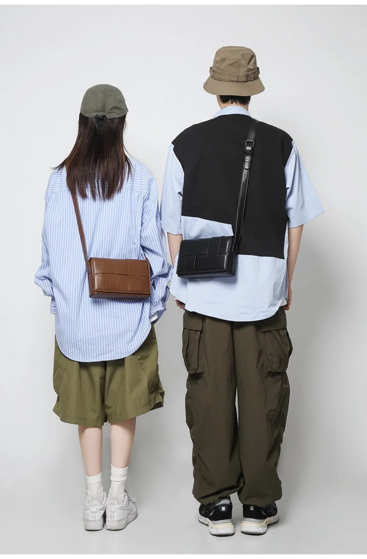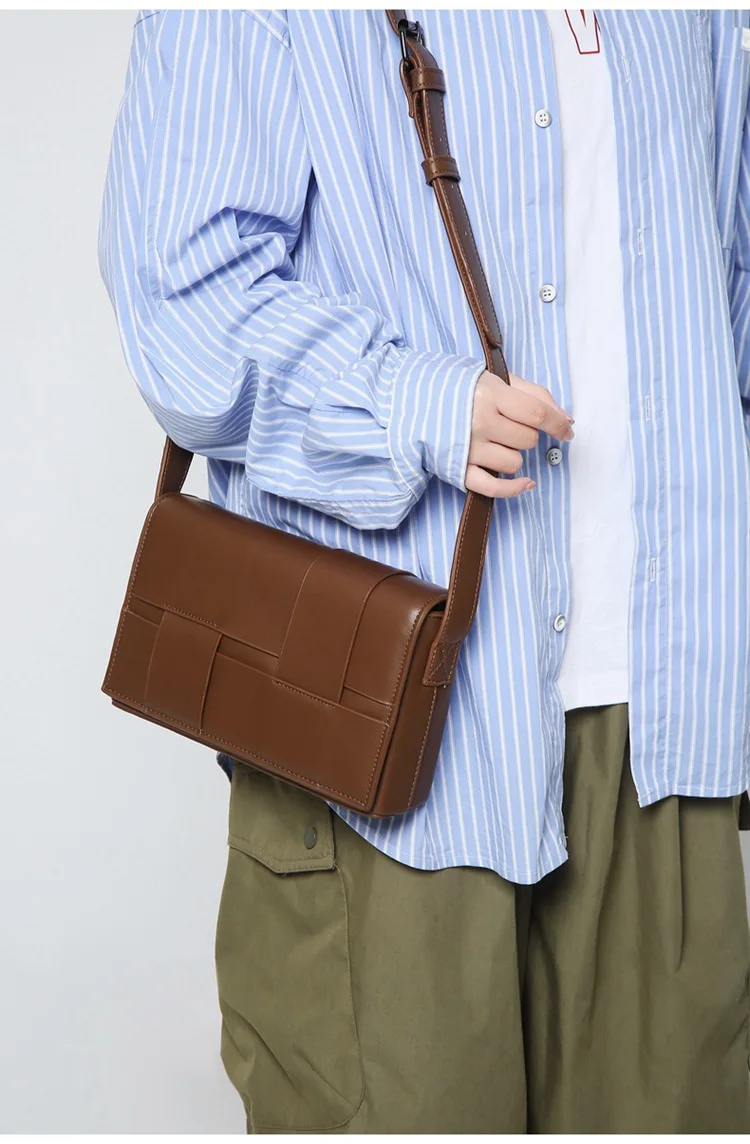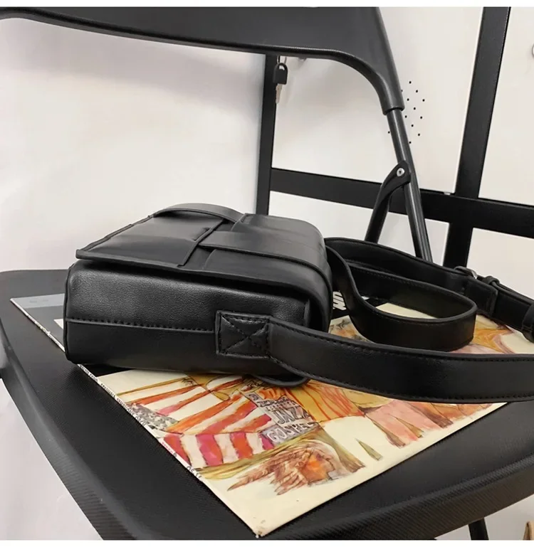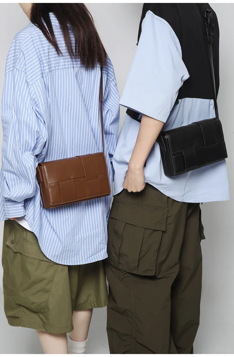 New Fashion Weave Men Crossbody Bag Casual Business Pu Leather Men's Messenger Woven Vintage Shoulder Handbags Bags