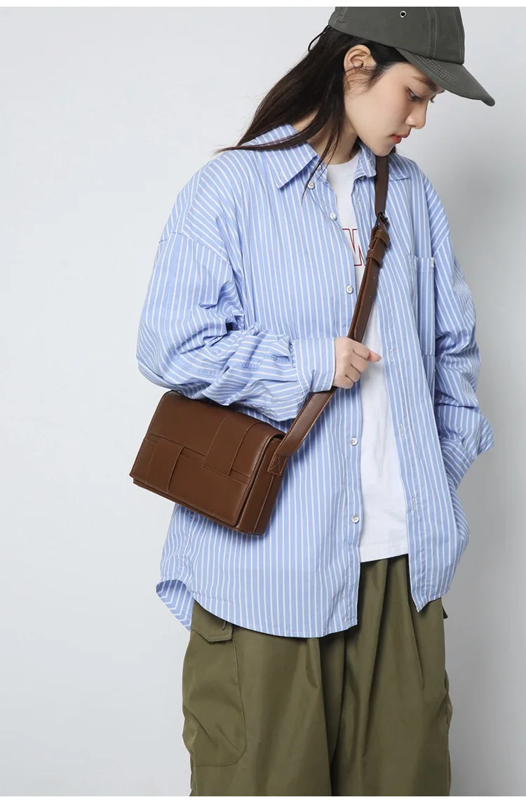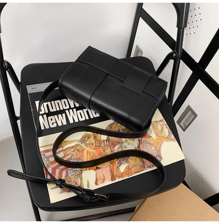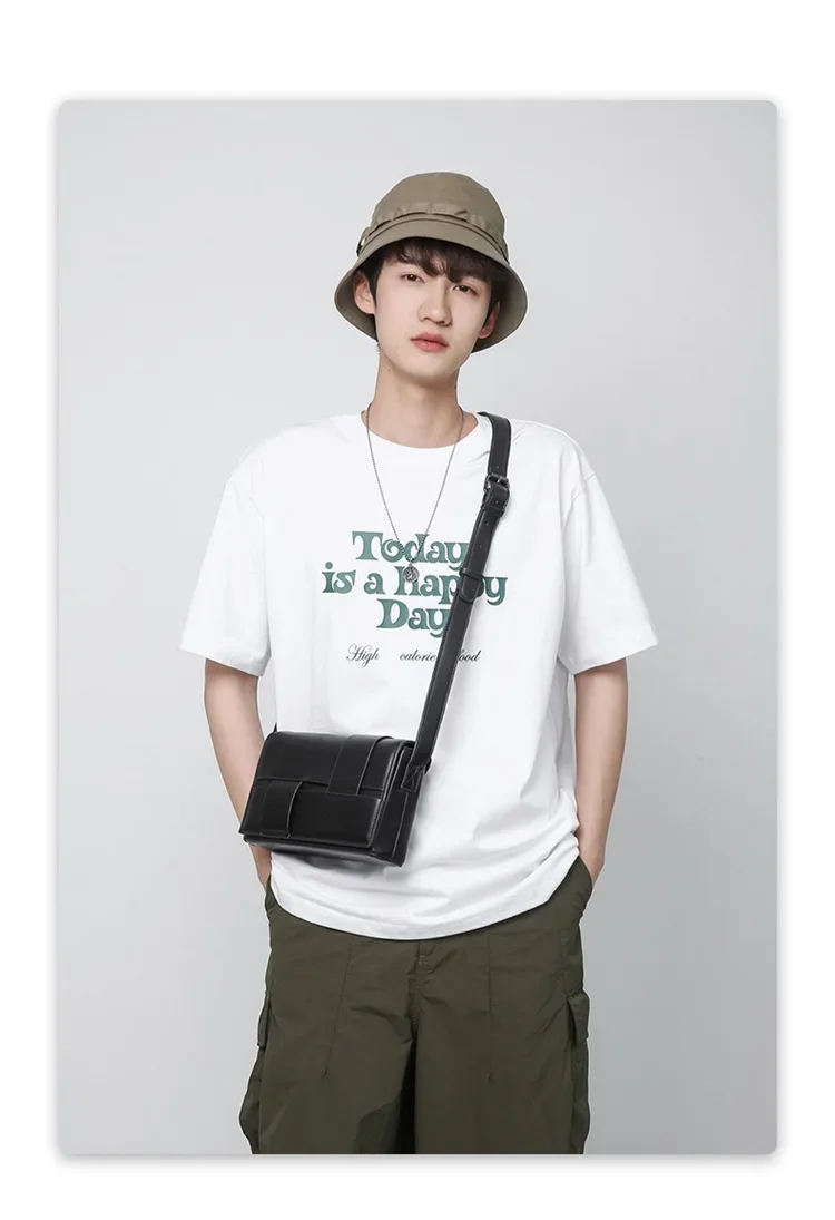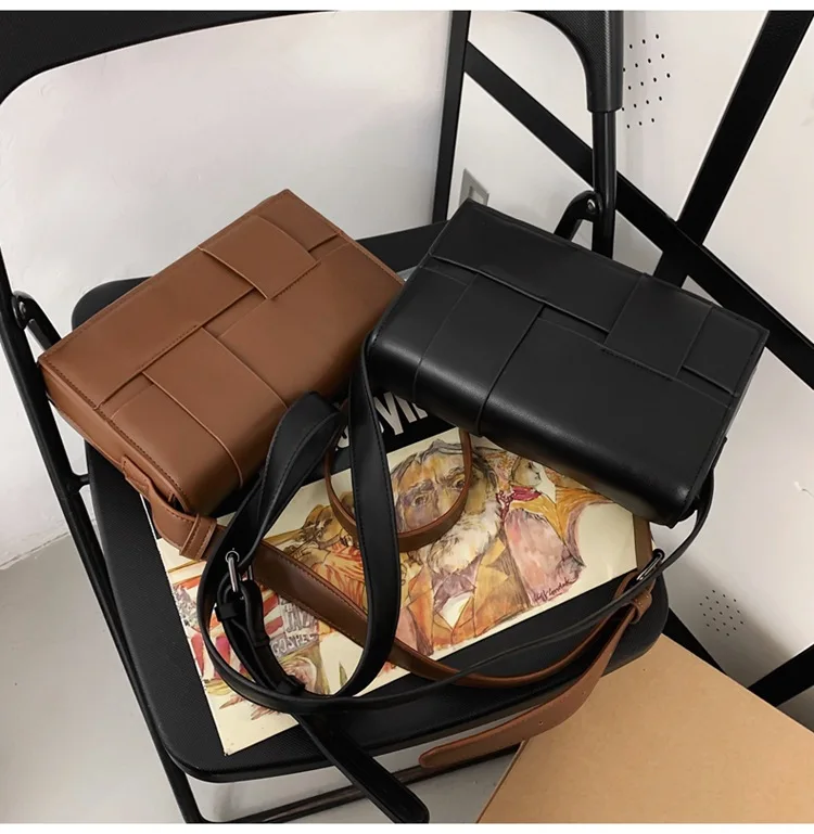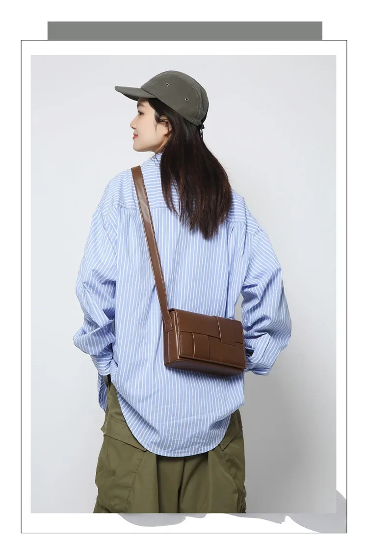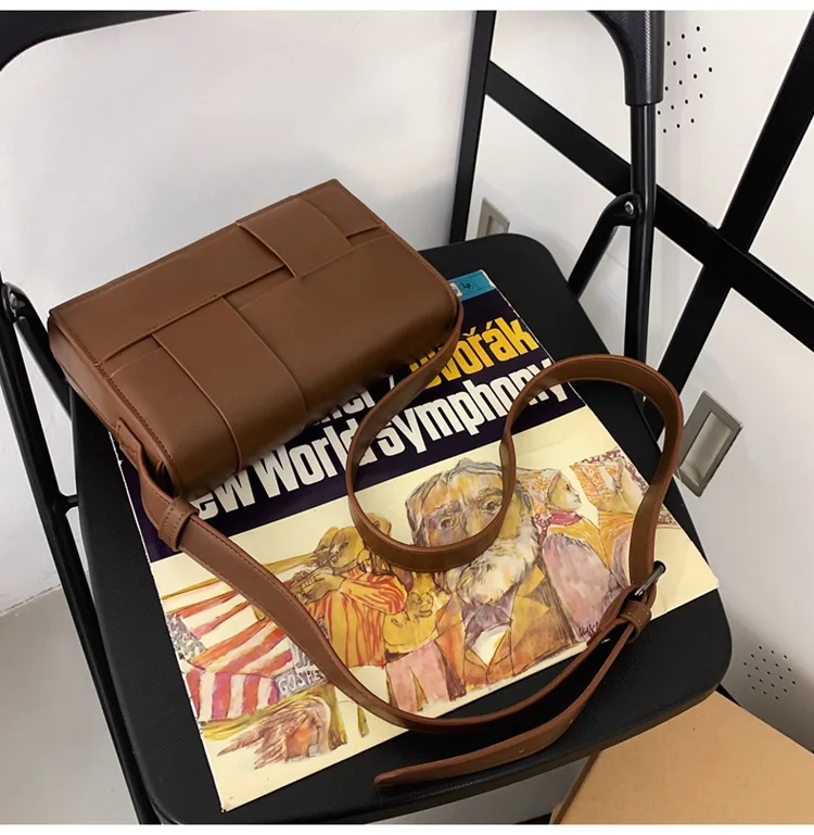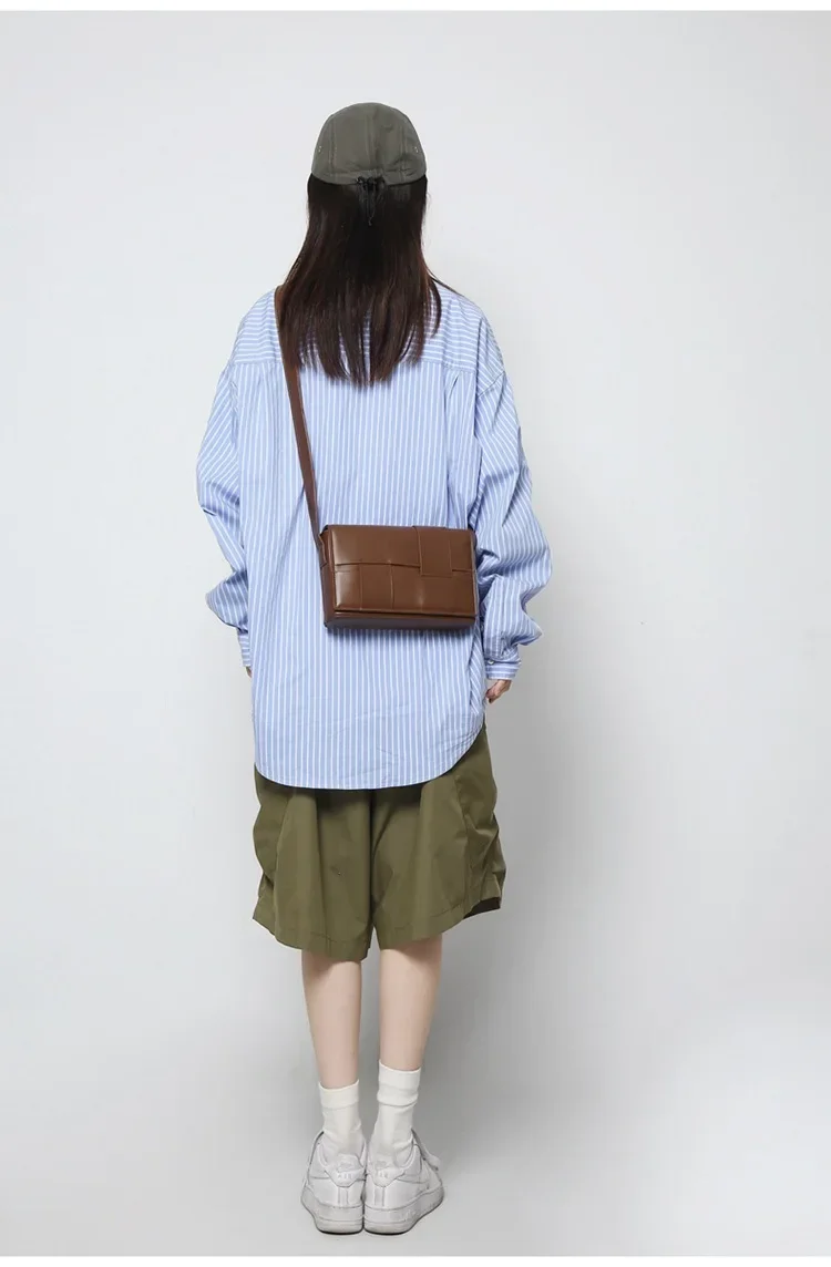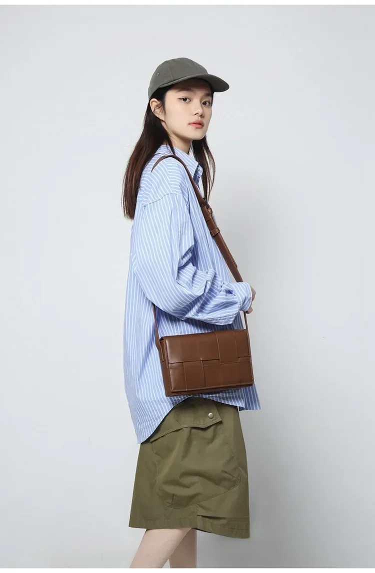 New Fashion Weave Men Crossbody Bag Casual Business Pu Leather Men's Messenger Woven Vintage Shoulder Handbags Bags