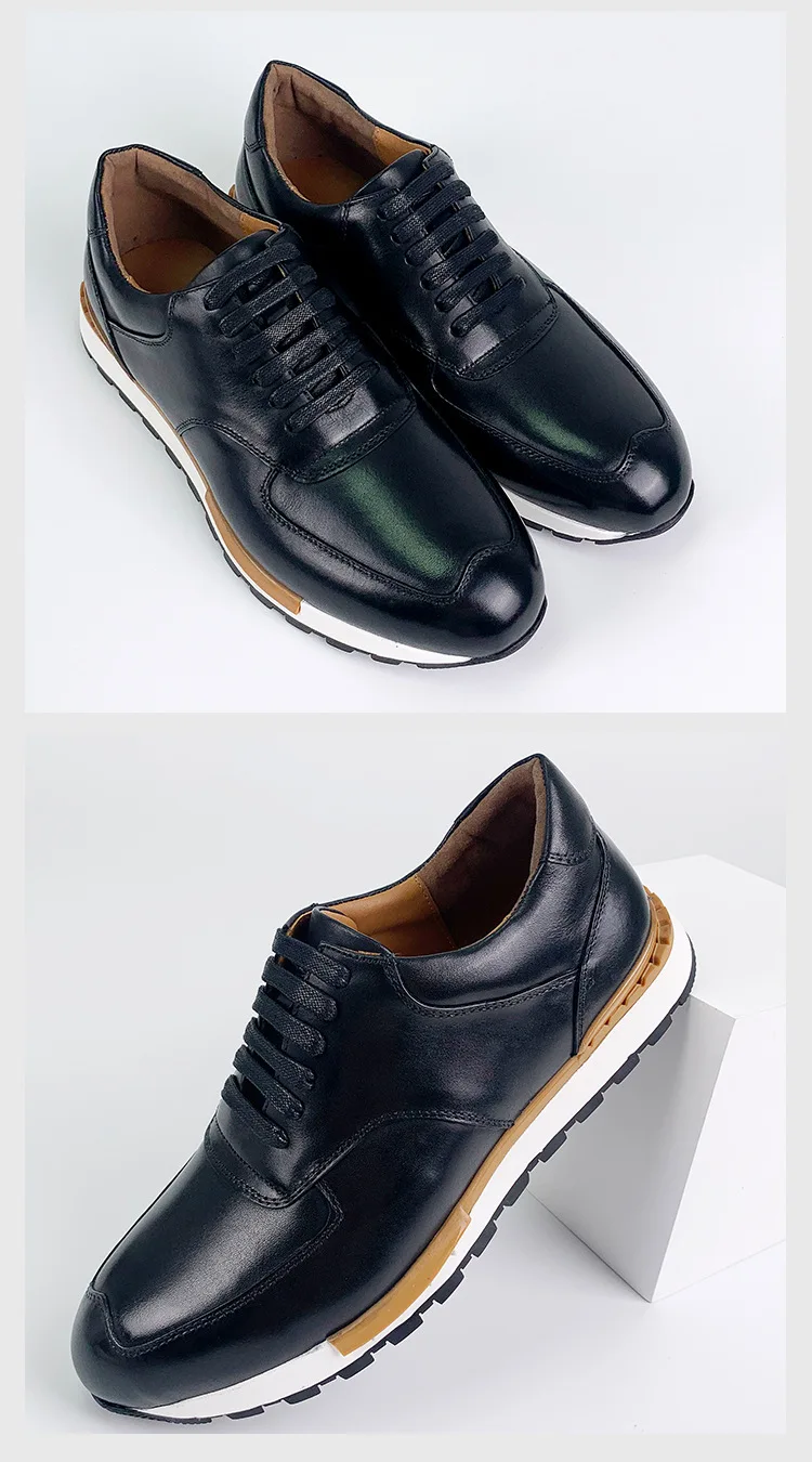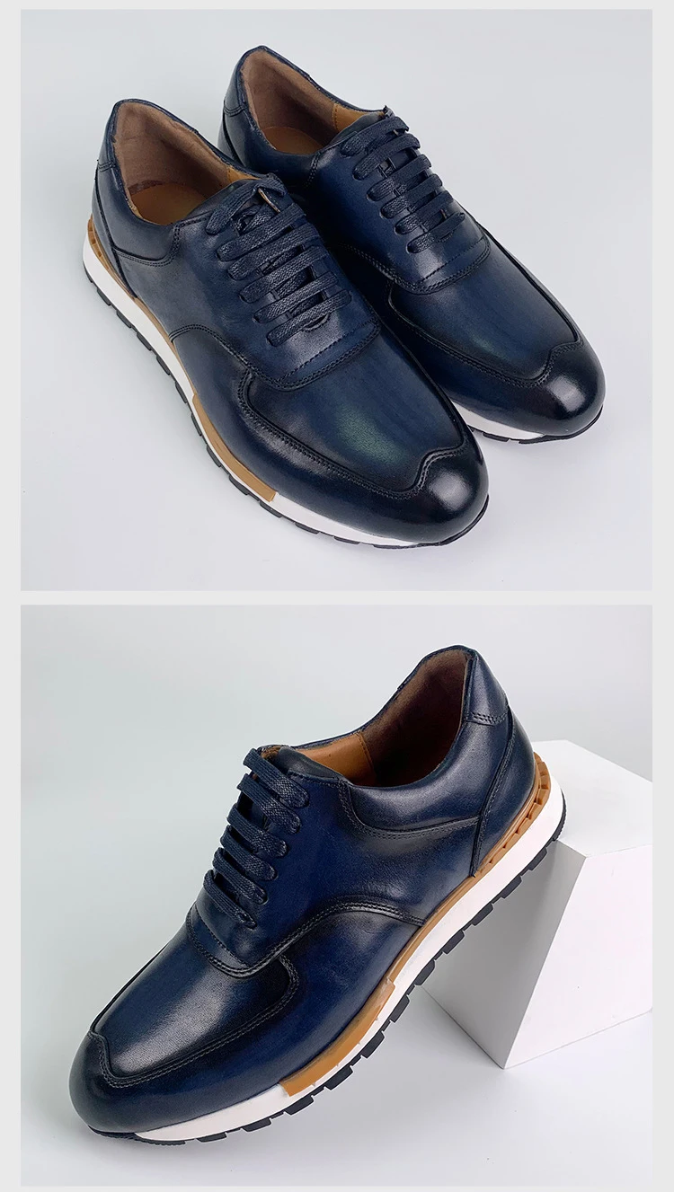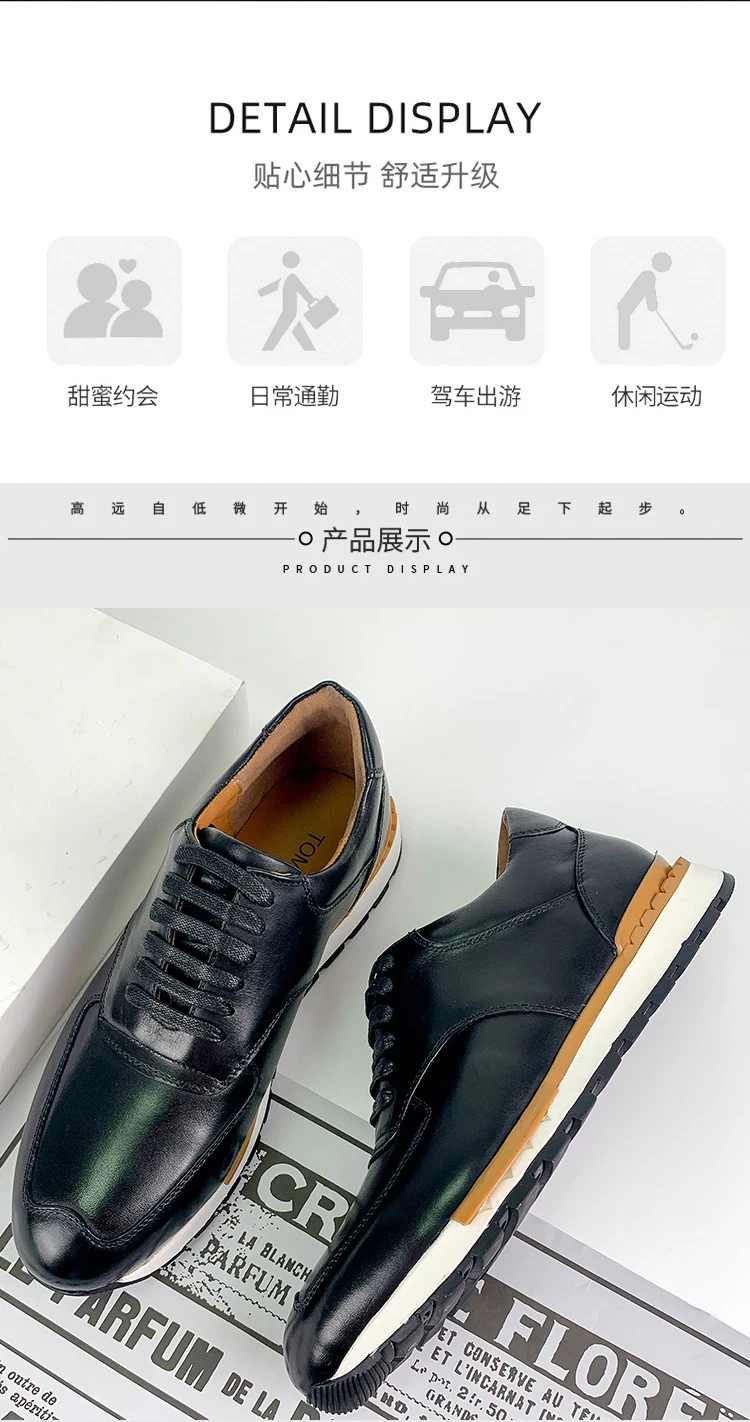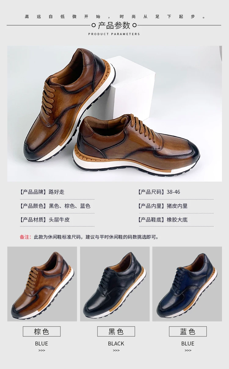 New men's leather shoes head layer cowhide daily outdoor casual lace-up large size shoes senior Brock shoes A21