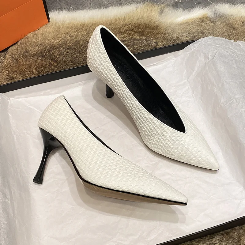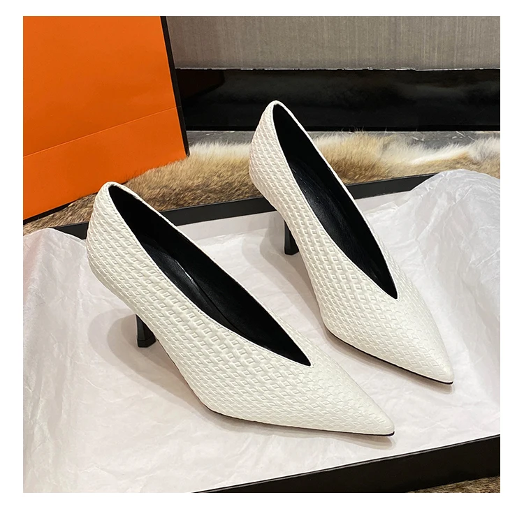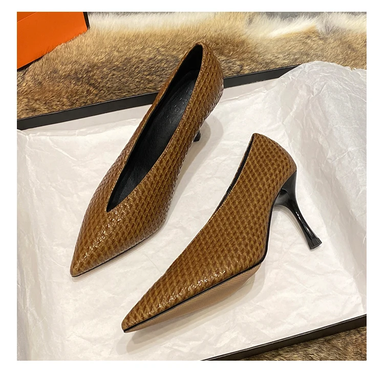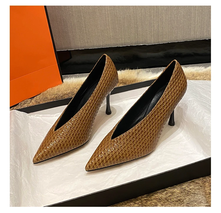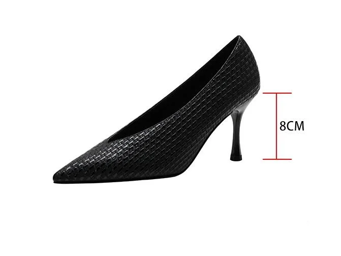 New Spring Autumn Fashion Women High Heels Elegant V Cut Women Printed Ladies Footwear Point Toe Dress Shoes Evening Shoes Lady