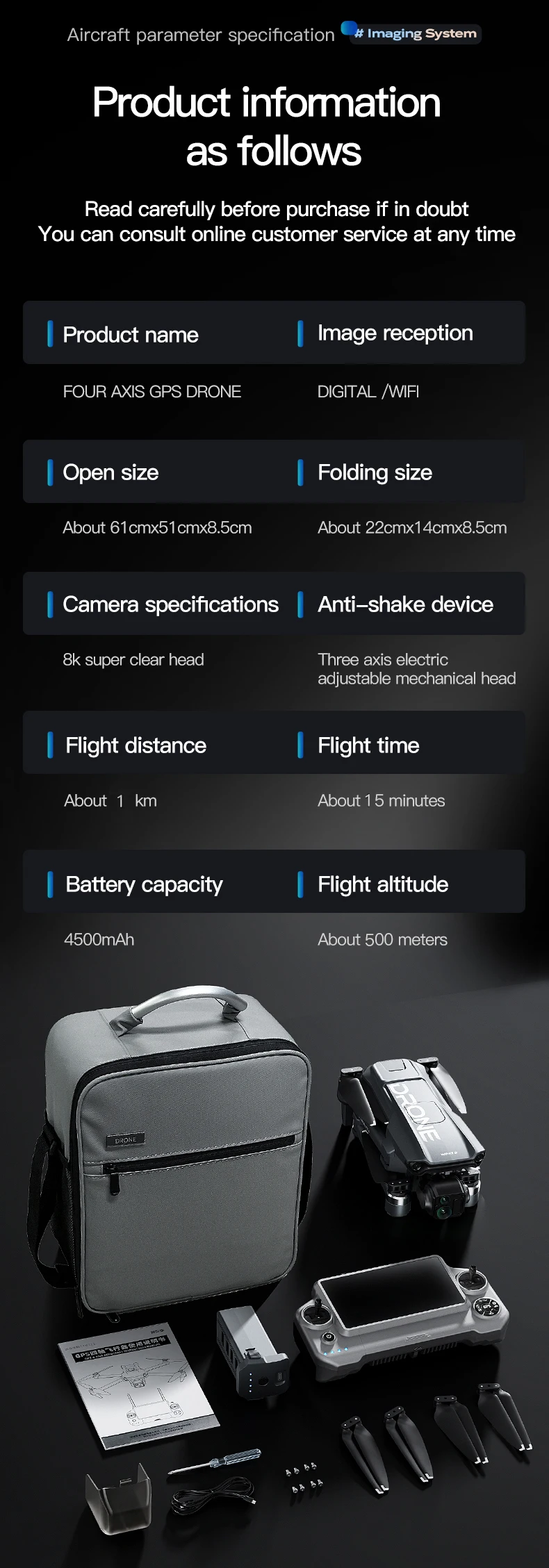 Brushless motor, long service life, durable, can withstand wind speeds of around 5 levels, three-axis self stabilizing gimbal, original storage bag