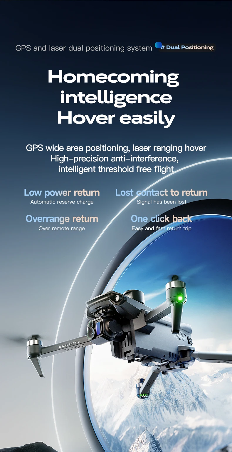 4K high-definition lens, video recording capability (4K 30 frames) with 3x zoom, aircraft retrieval