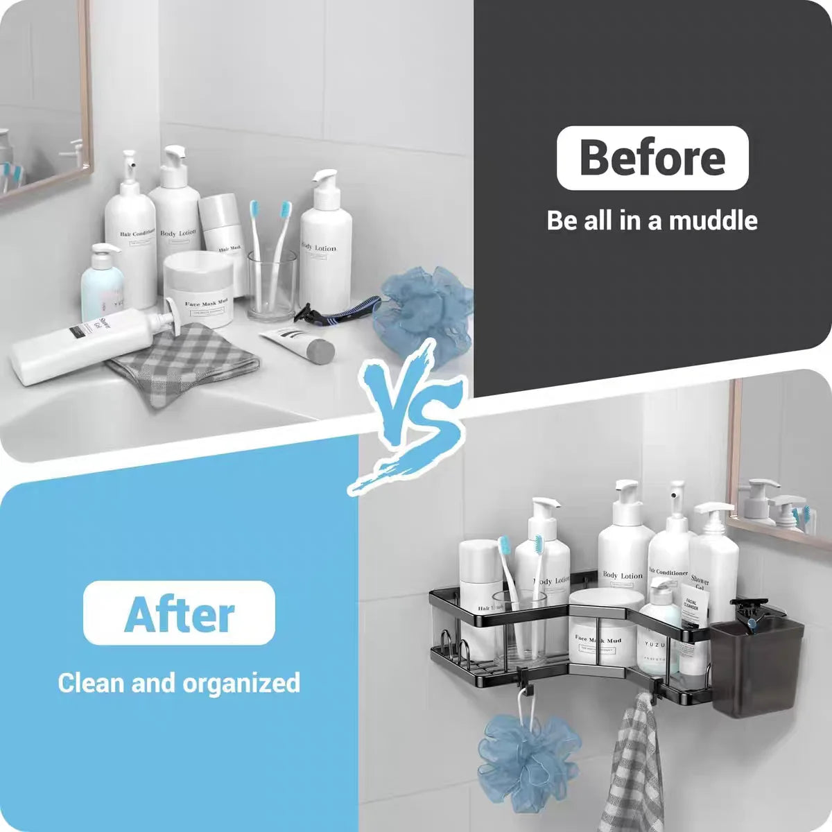 No Drilling Stainless Steel Triangle Double Layer Shelf for Bathroom Balcony Kitchen Corner Storage Space Saving Durable Design